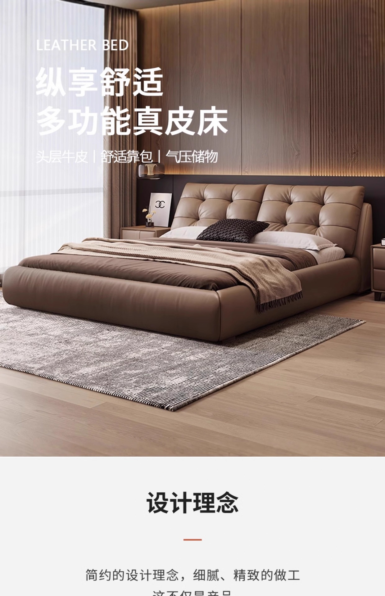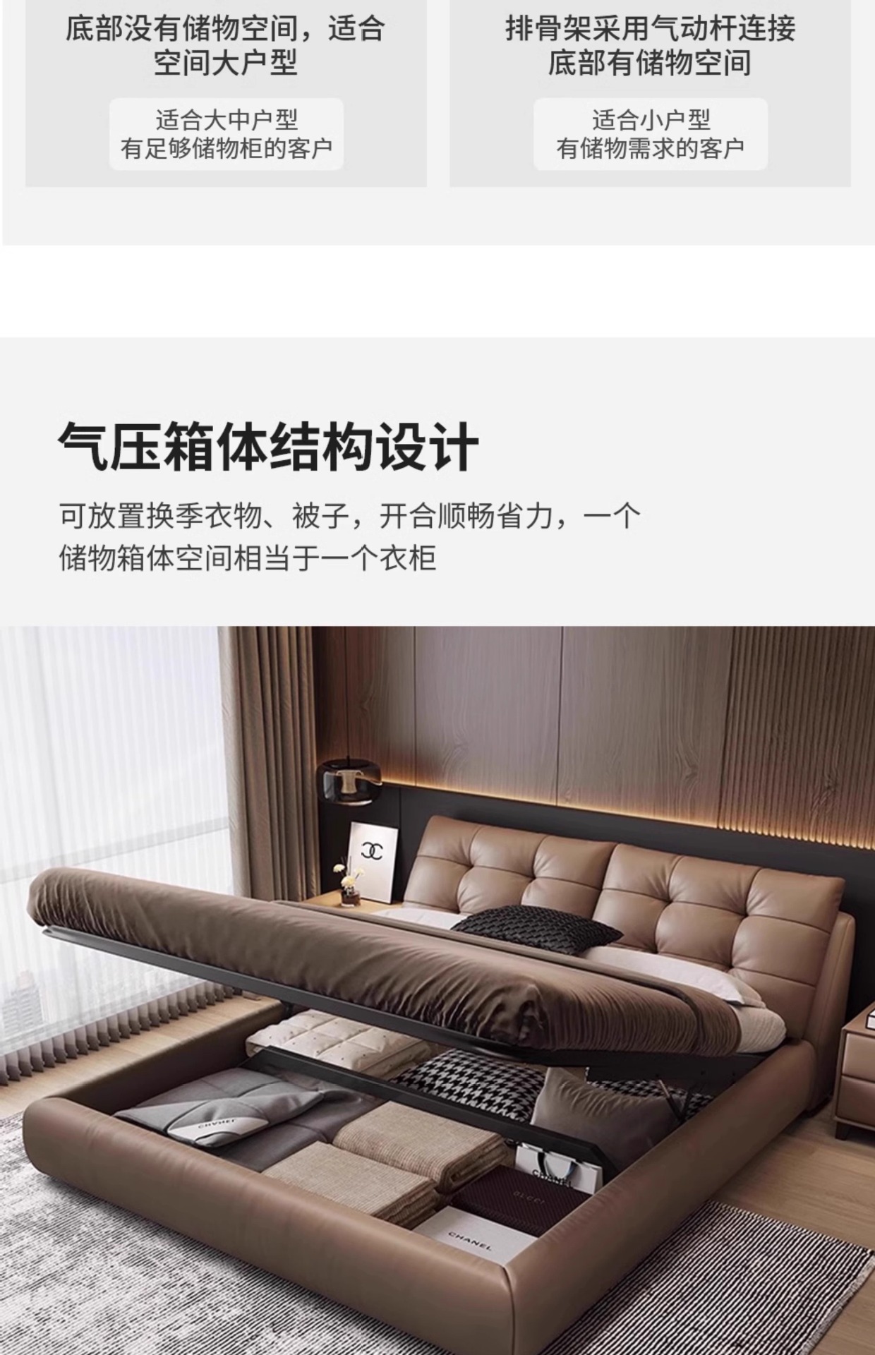 이탈리아 미니멀리스트 가죽 침대 1.8 m 공기 압력 높은 상자 보관 더블 침대 현대 간단한 빛 럭셔리 마스터 침실 부드러운 침대스토어 가기