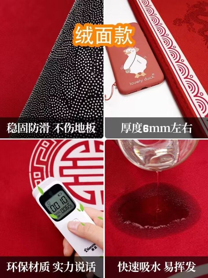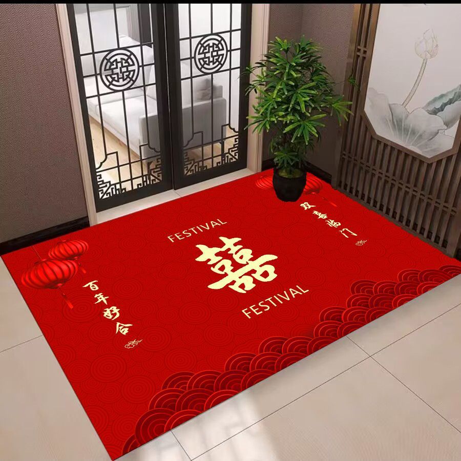 중국 스타일 축제 입구 바닥 매트, 가정용 출입구 웨딩 바닥 매트, 흡수성 미끄럼 방지 크리스탈 벨벳 바닥 매트, 대리 가능
