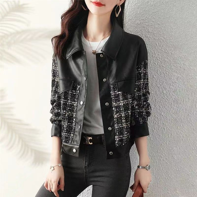 Xiaoxiangfeng 짧은 코트 여성 오토바이 가죽 자켓 2025 봄, 가을 새로운 느슨한 한국 스타일 다목적 캐주얼 스타일 탑스토어 가기