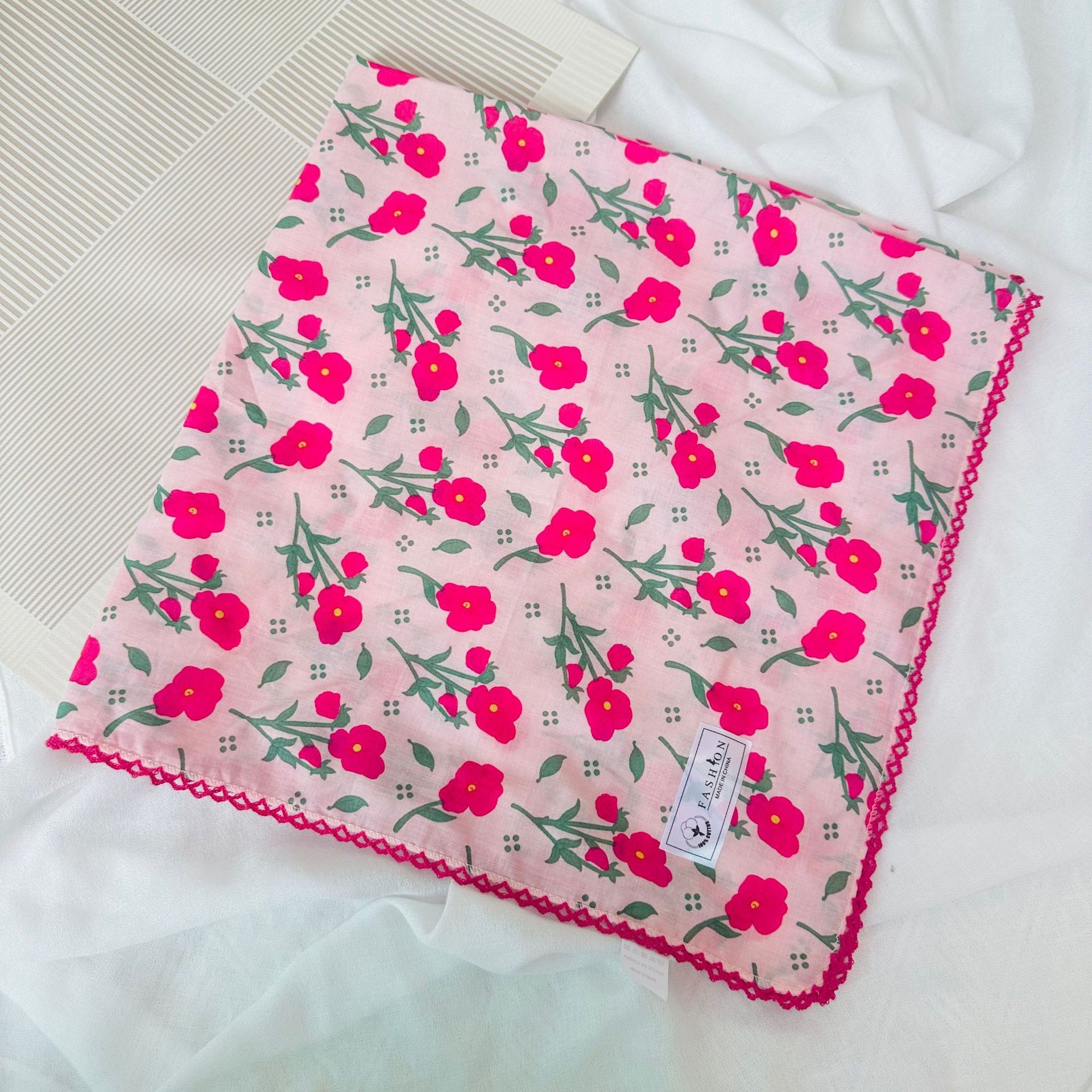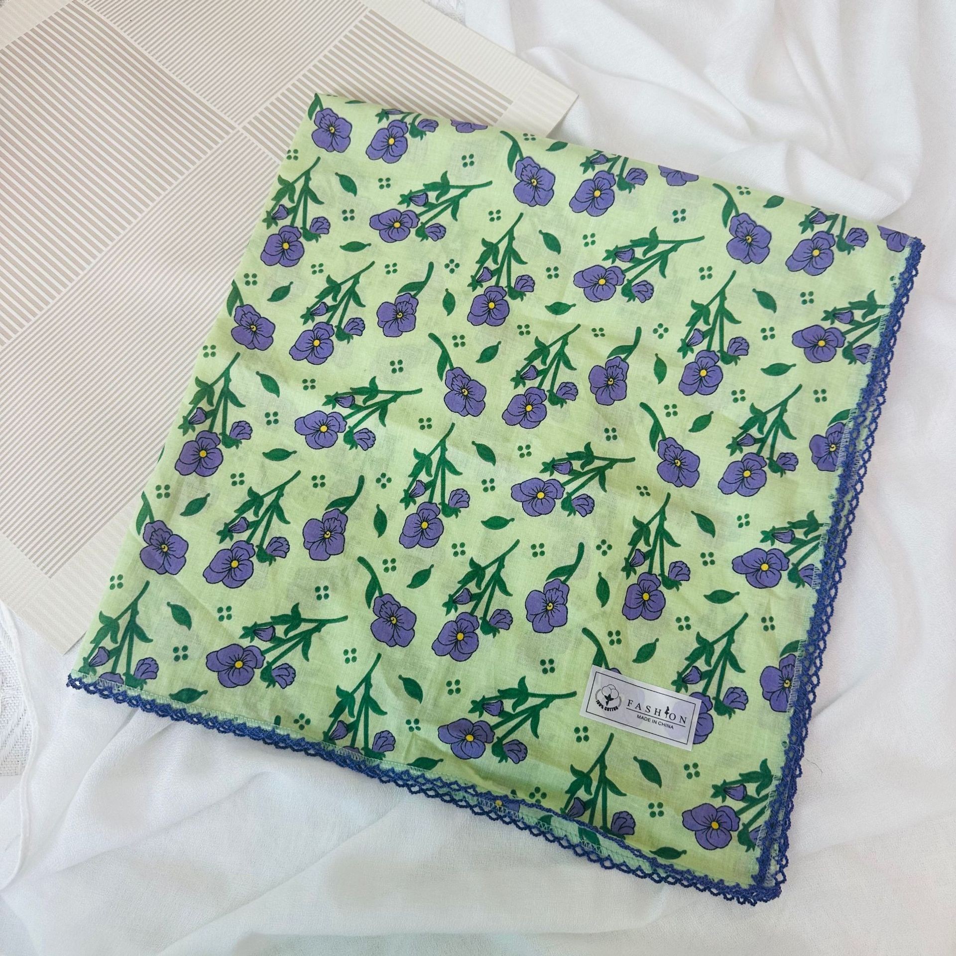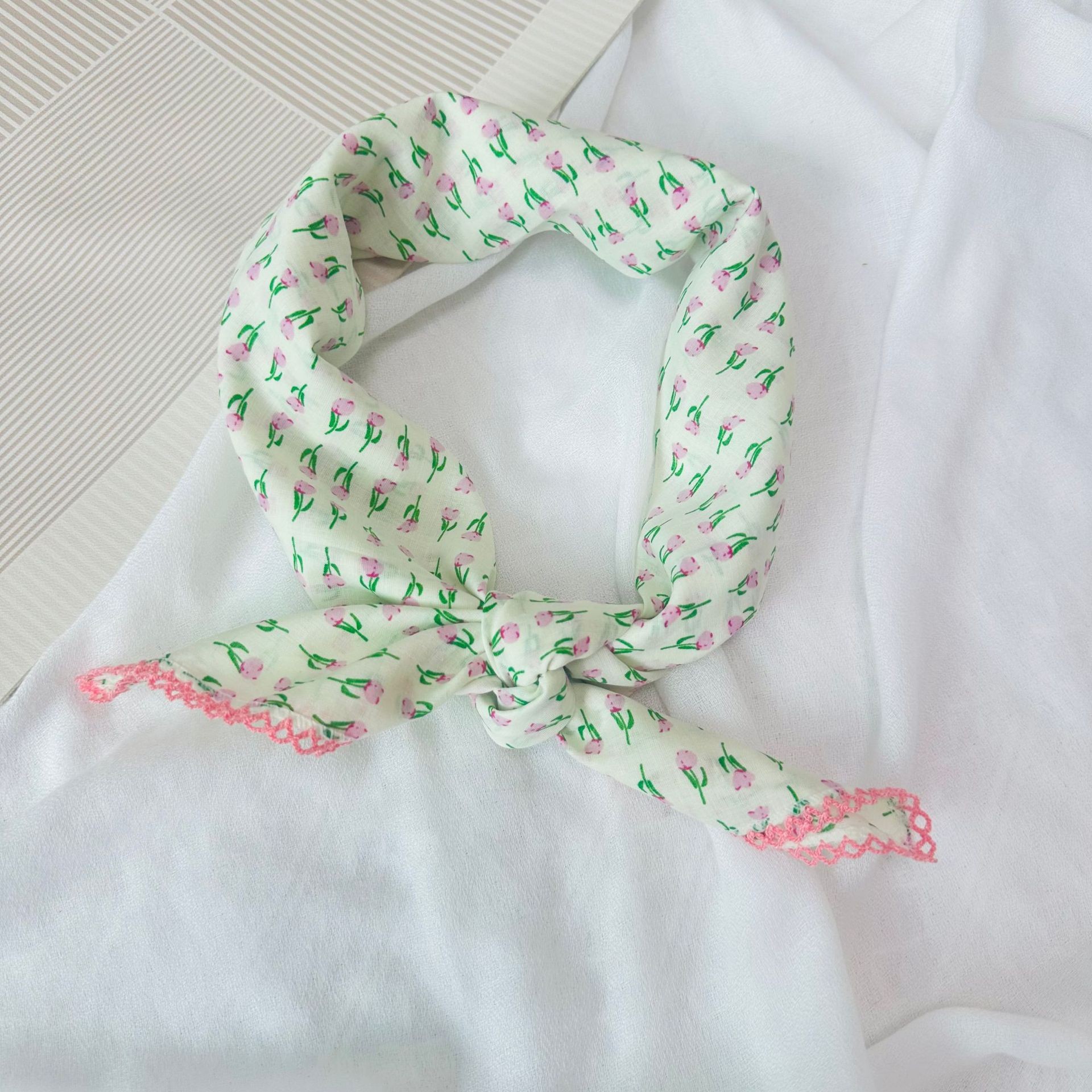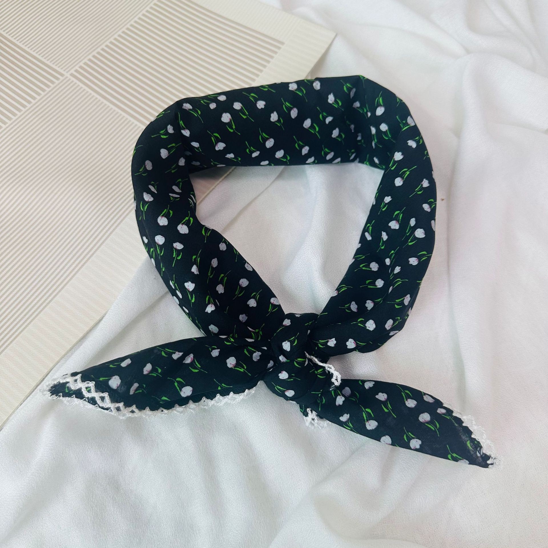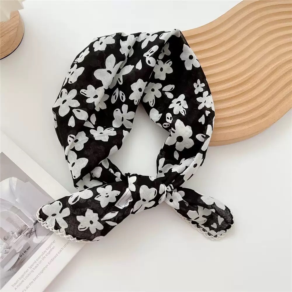 한국어 버전 70 프린트 작은 사각형 스카프 여성 봄, 여름 순수 코튼 복고풍 헤어 액세서리 문학적이고 신선한 장식 따뜻한 스카프