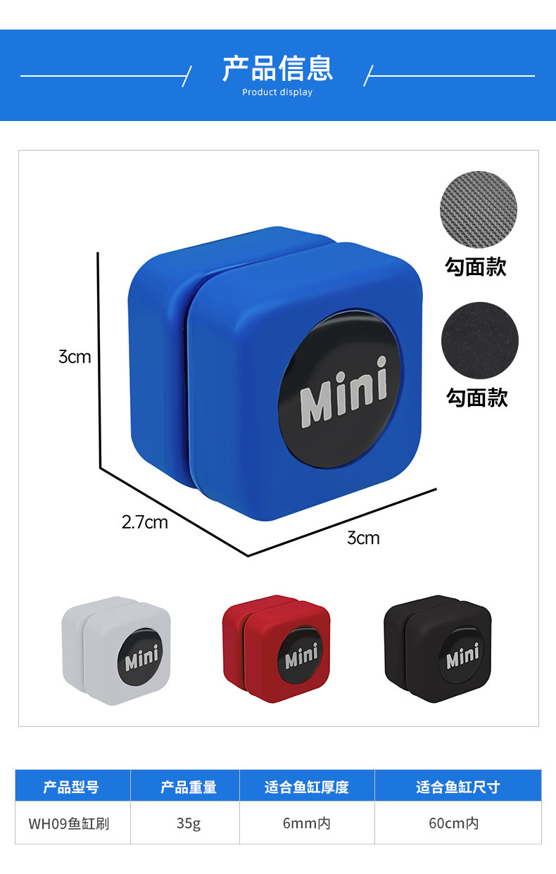 미니 수조 자석 브러시 강력한 흡입 조류 제거 수조 유리 청소 도구 수조 브러시 청소 유리 브러시