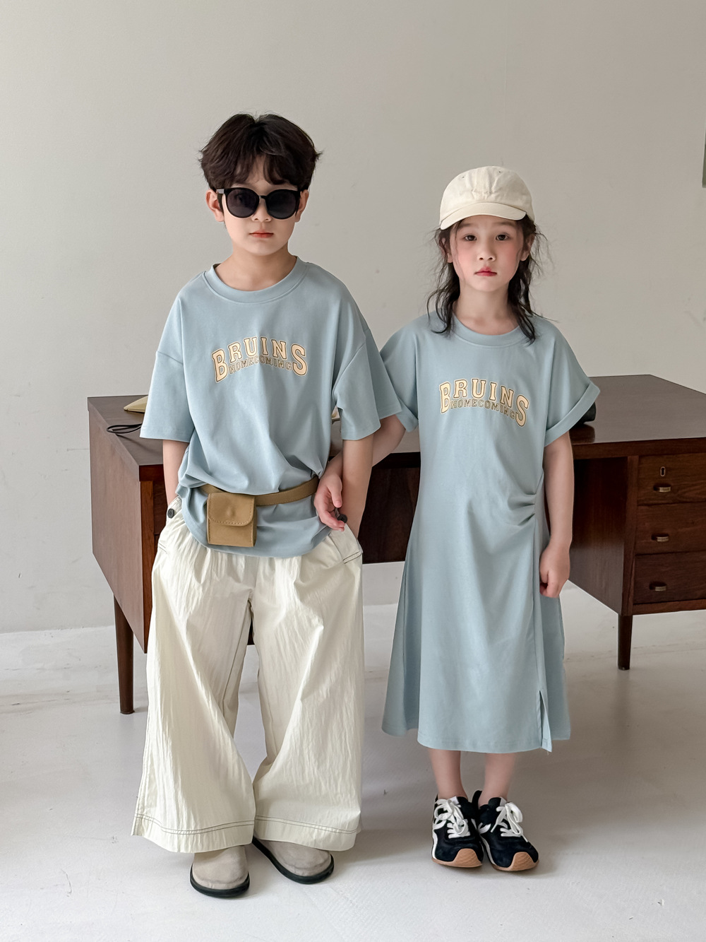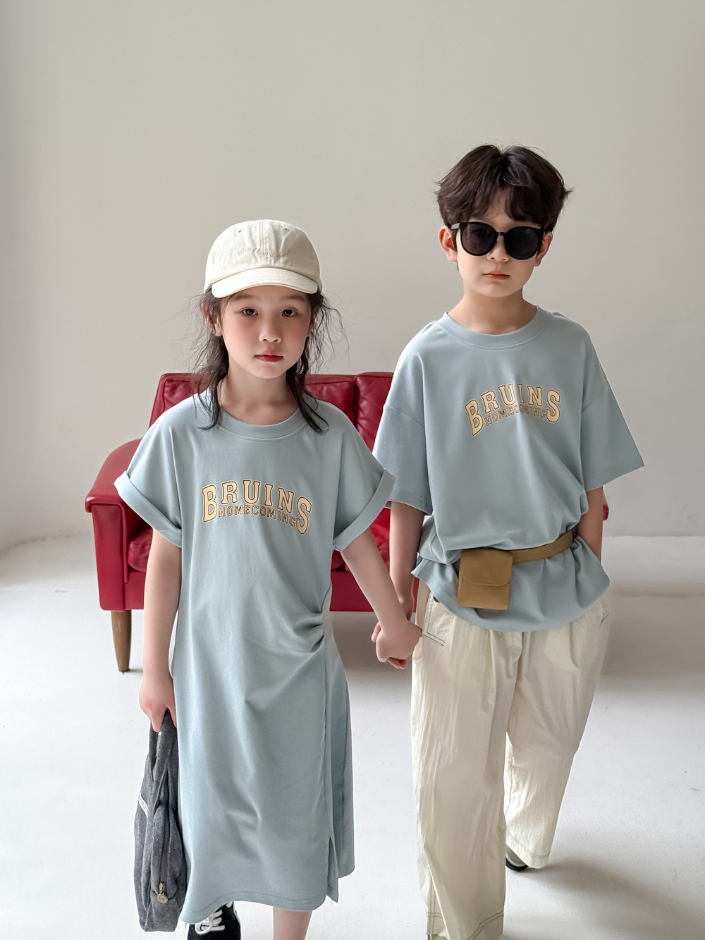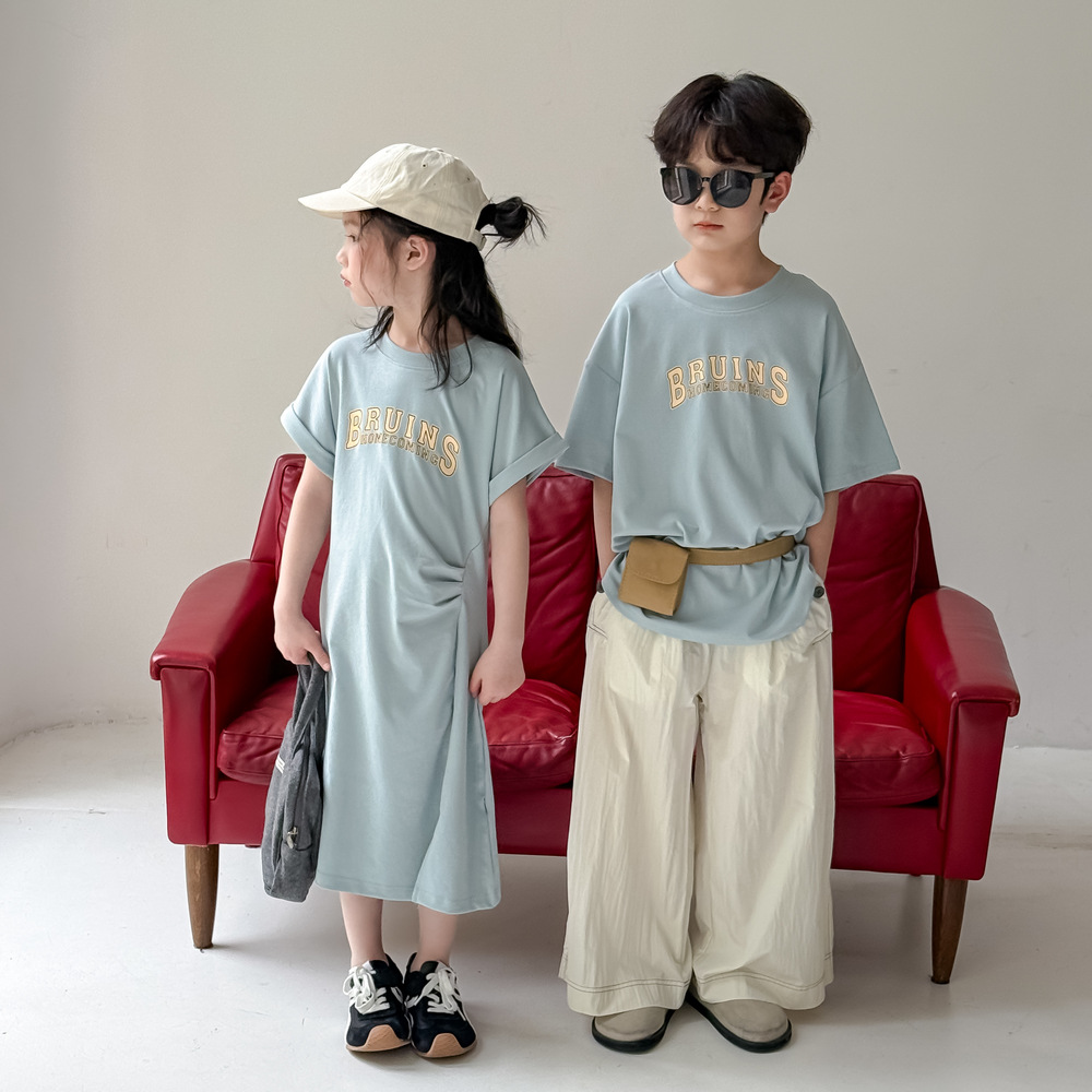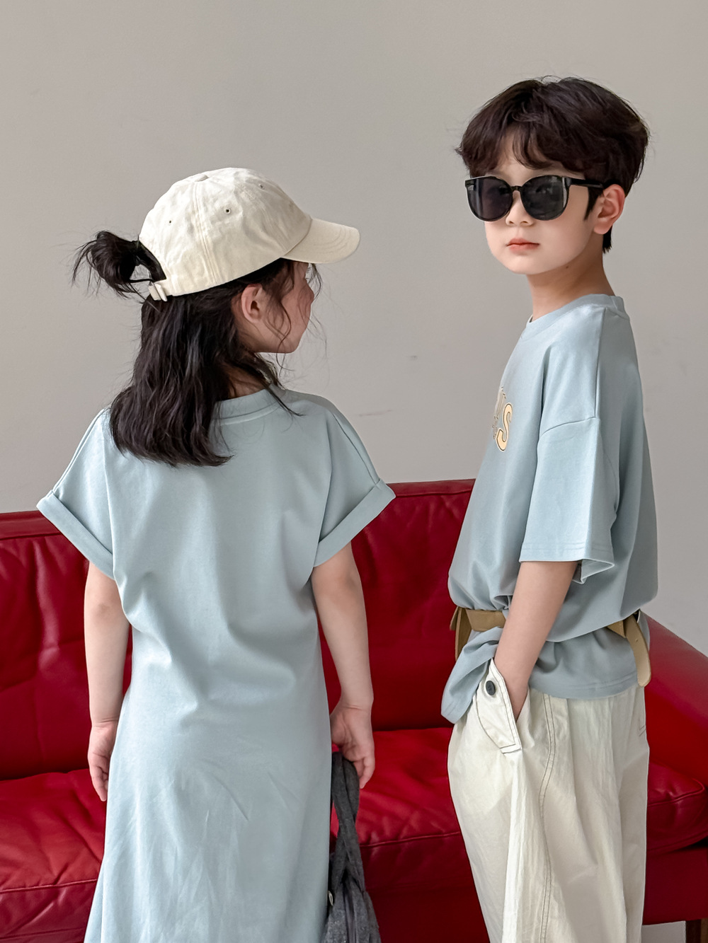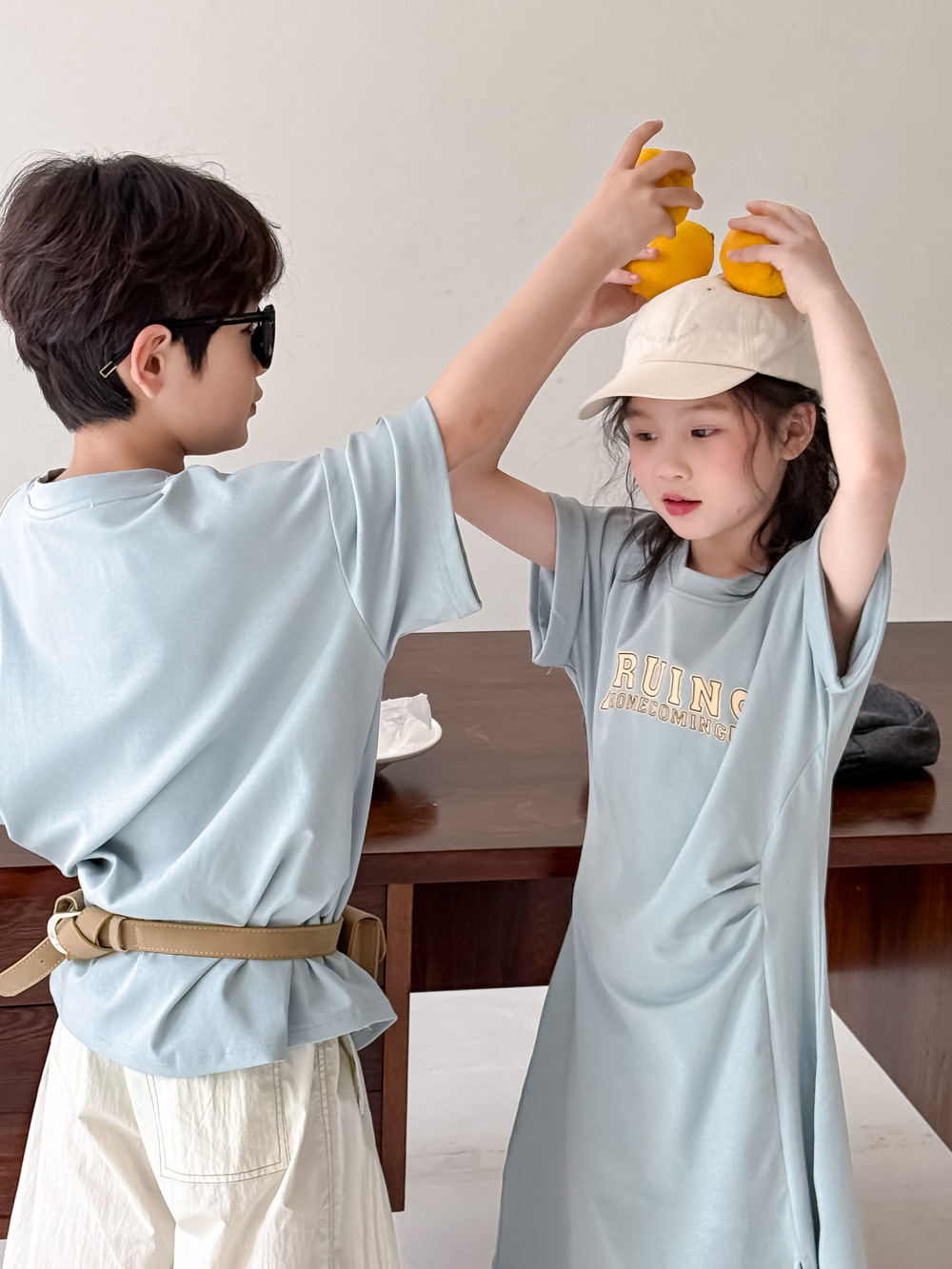 아동 티셔츠 2026 여름 남아 여아 한국 스타일 단색 레터링 반팔 아동용 라운드넥 캐주얼 루즈핏 티셔츠 스커트스토어 가기