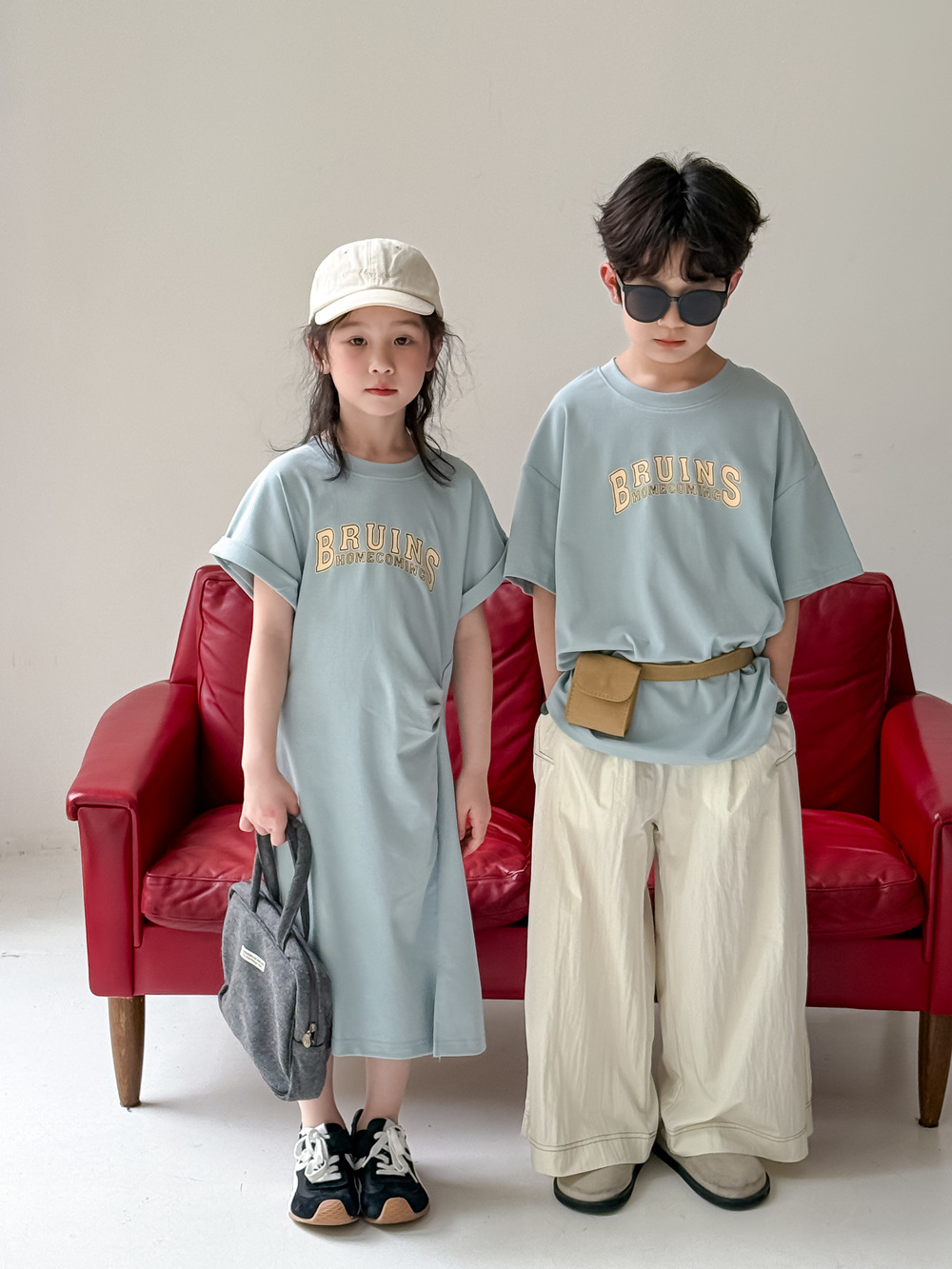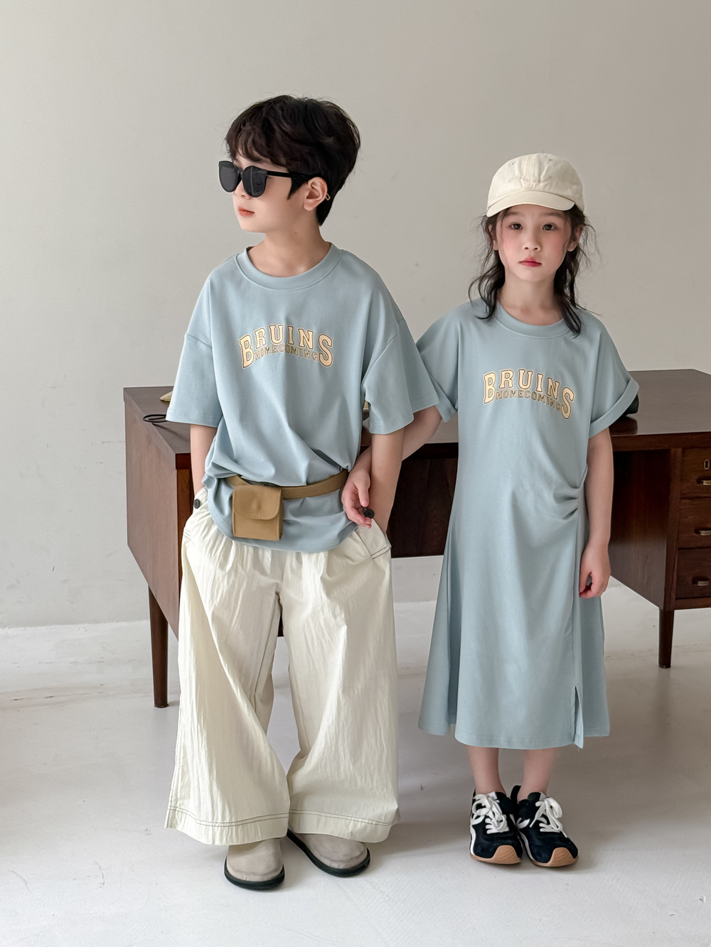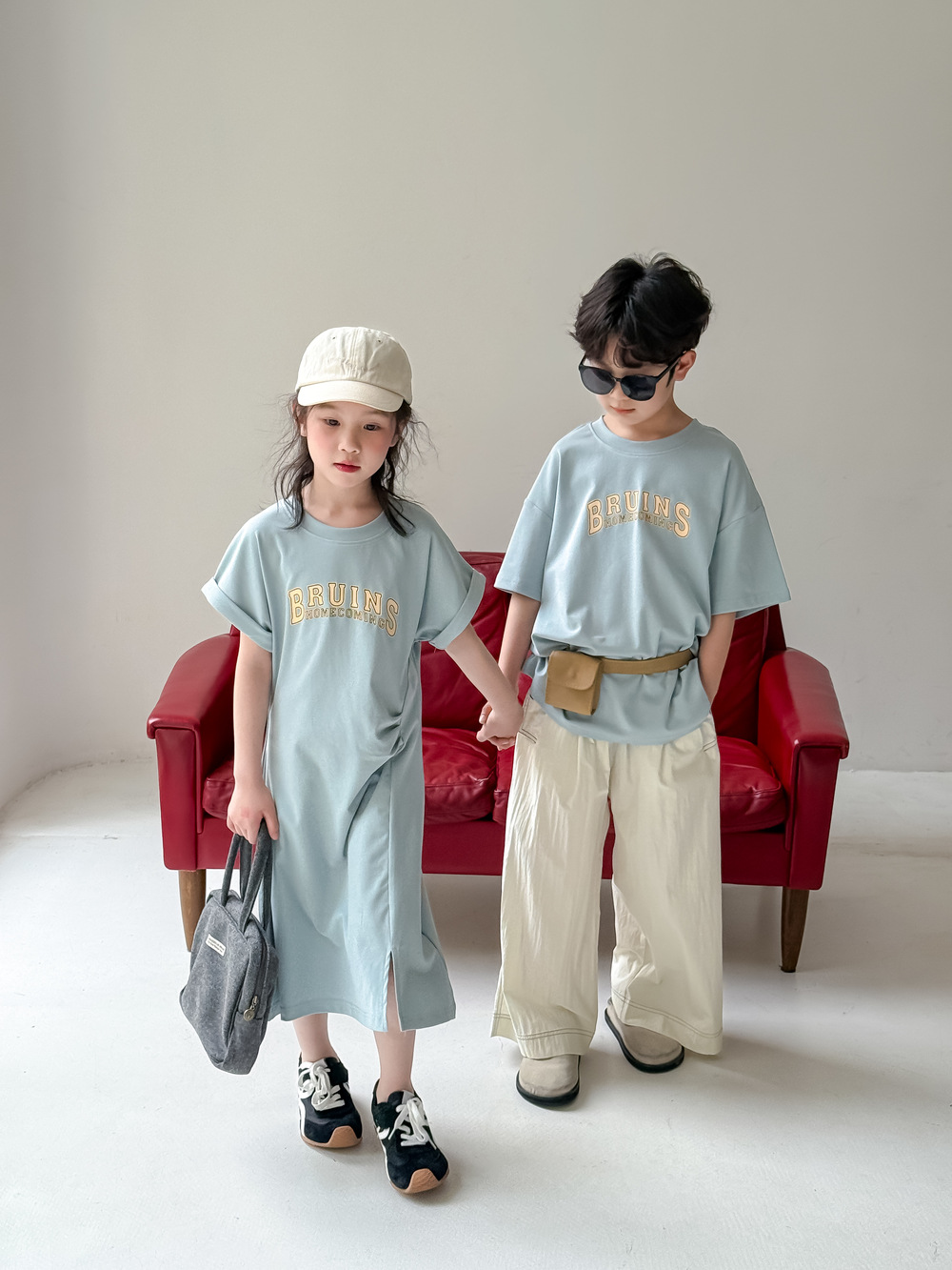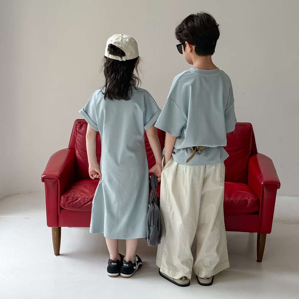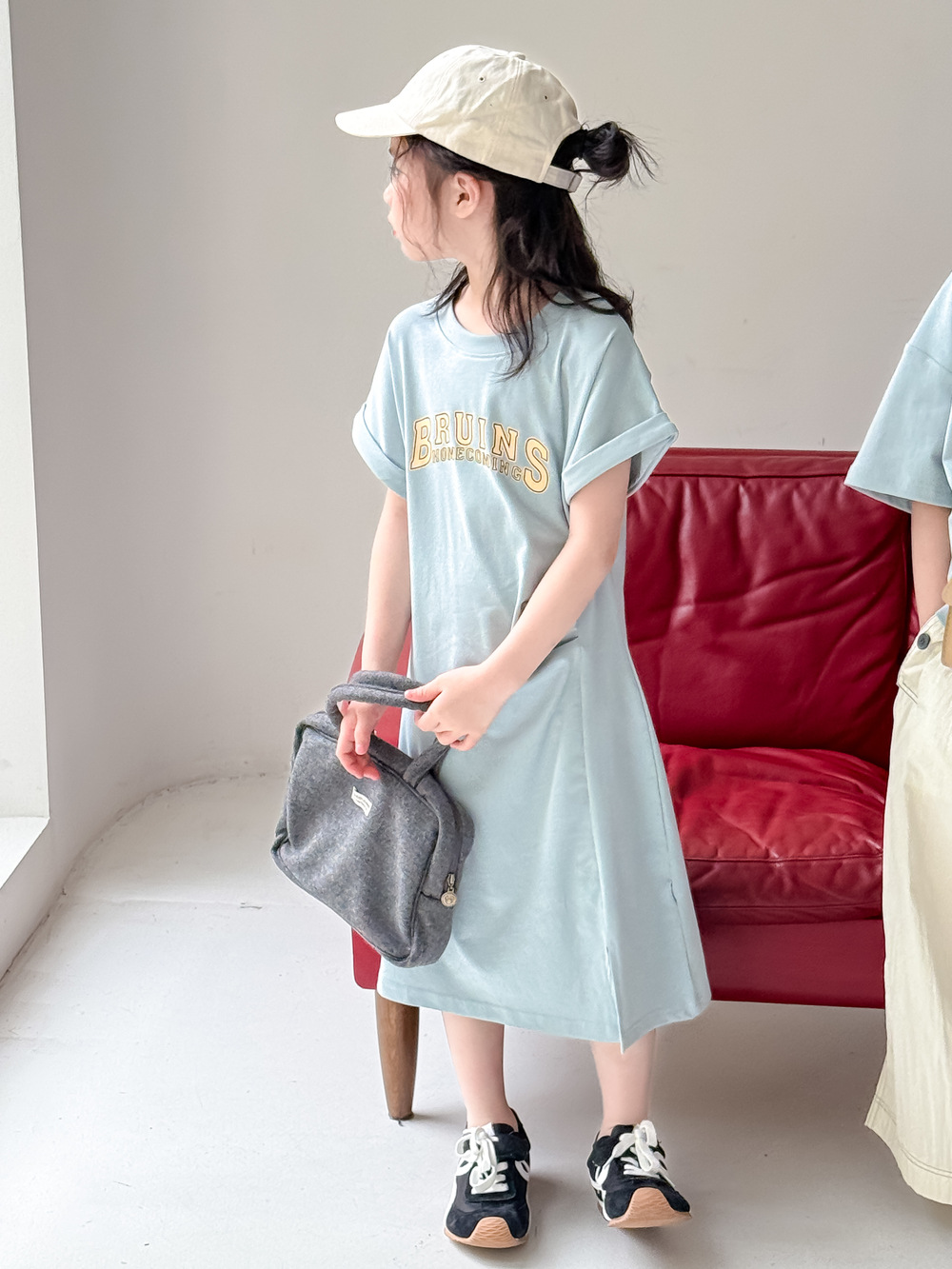 아동 티셔츠 2026 여름 남아 여아 한국 스타일 단색 레터링 반팔 아동용 라운드넥 캐주얼 루즈핏 티셔츠 스커트스토어 가기