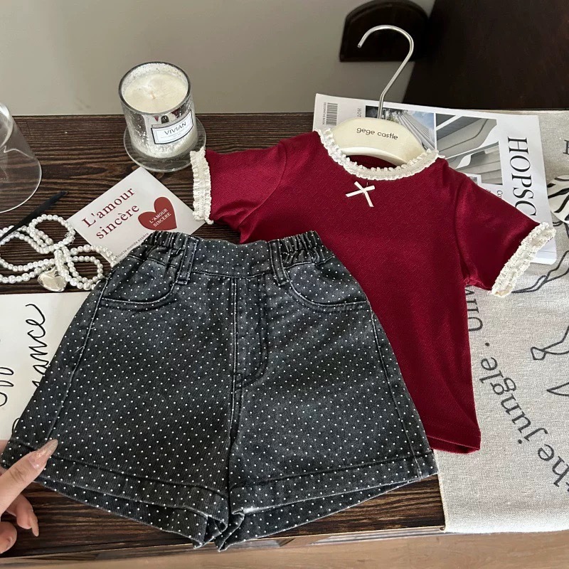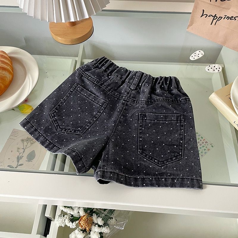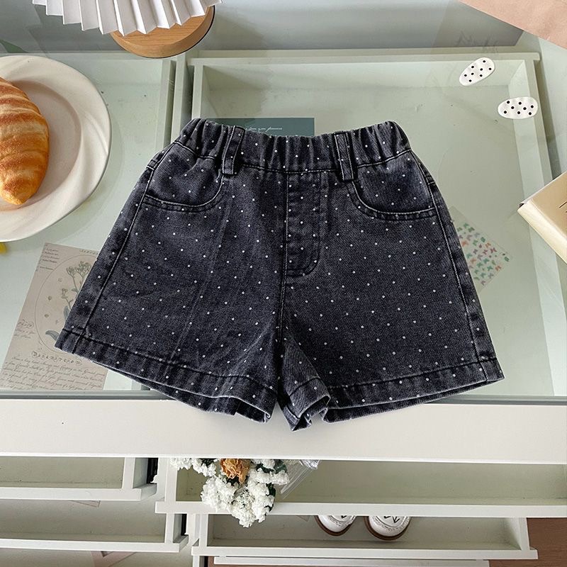 소녀 새로운 2025 여름 폴로 도트 데님 반바지 여름 서양식 어린이 유행 여성 보물 여름 뜨거운 유행 바지스토어 가기