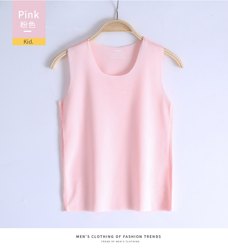 2025 새로운 여름 어린이 얼음 실크 얇은 조끼 중소 소년과 소녀 캔디 컬러 탄성 라운드 넥 싱글 탑