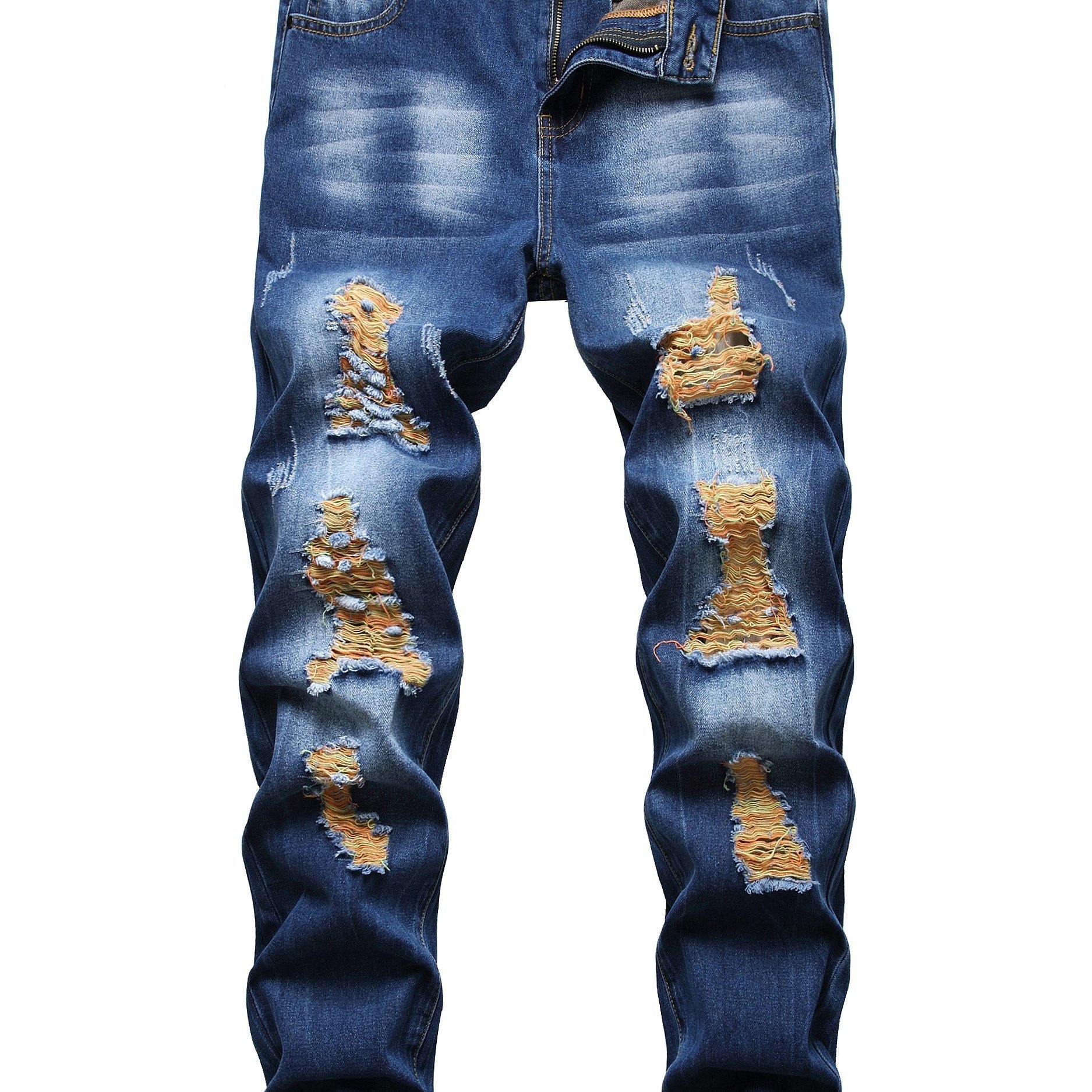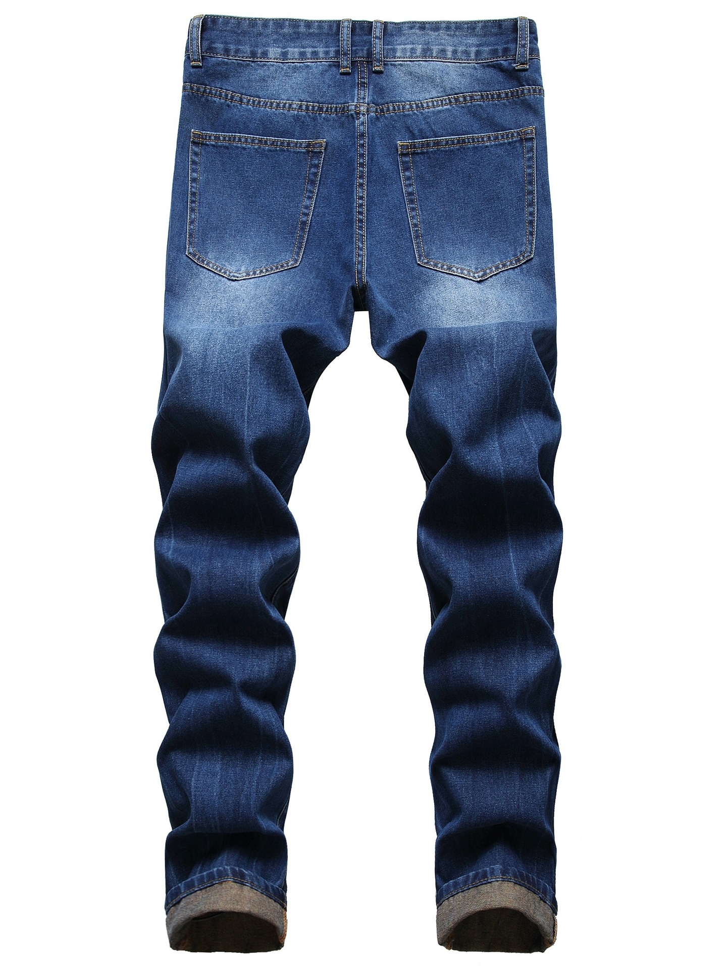 남성 슬림핏 디스트레스드 진 스트레이트 레그 찢어진 데님