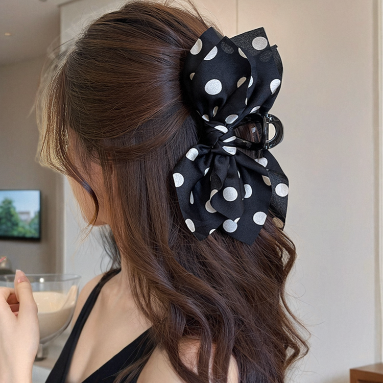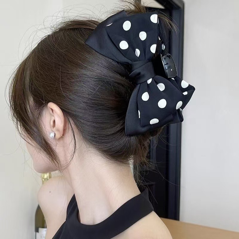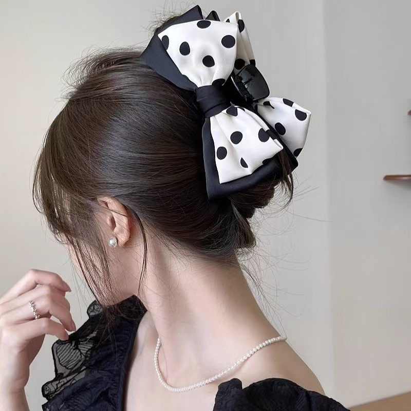 새틴 도트 활 머리핀 디스크 헤어 그랩 클립 고급 센스 2025 새로운 상어 클립 대형 헤어 멀티 볼륨 헤드웨어스토어 가기