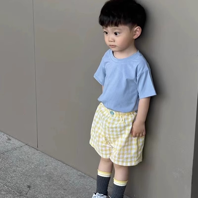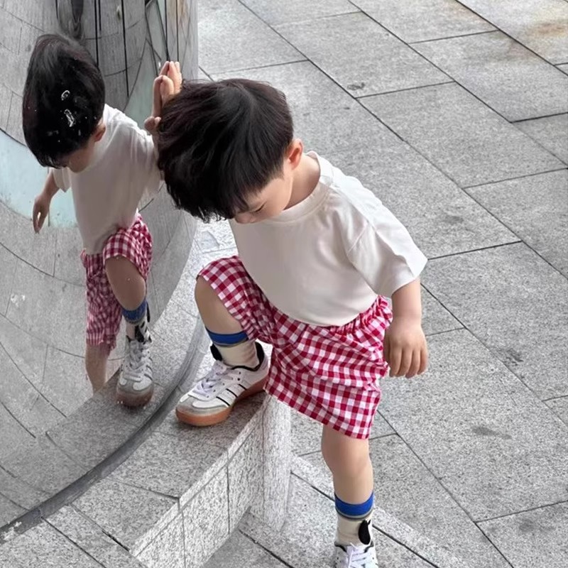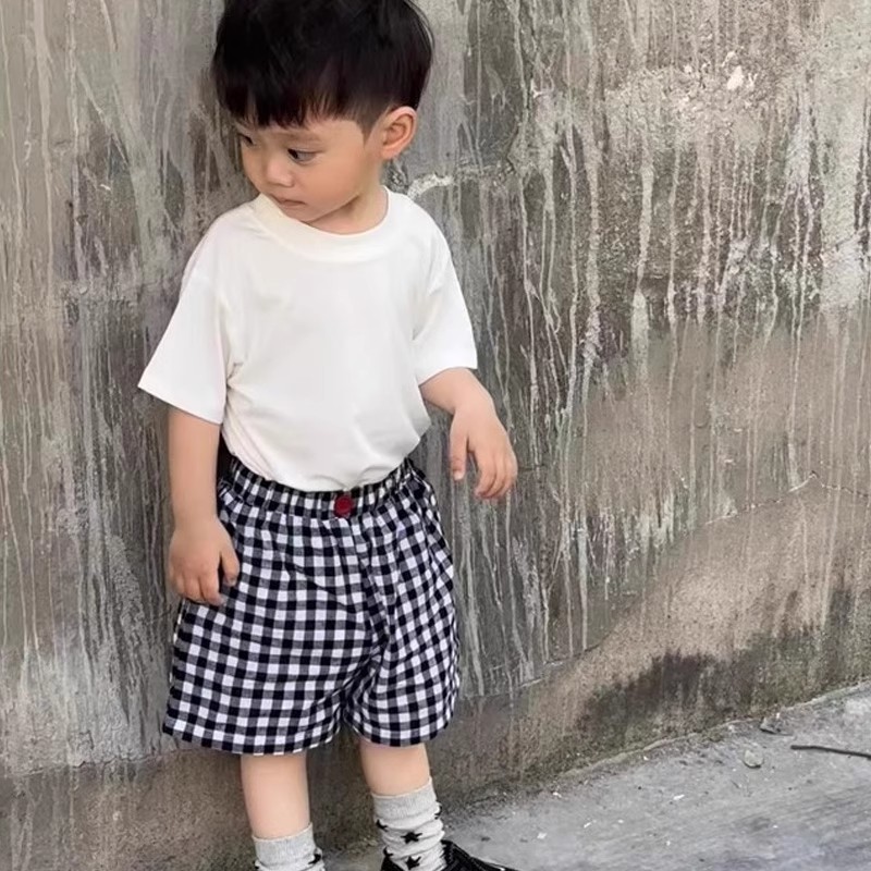 여름 새 소년 소녀 세련된 올 매치 격자 무늬 줄무늬 반바지 중소 어린이 얇은 느슨한 통기성 바지스토어 가기