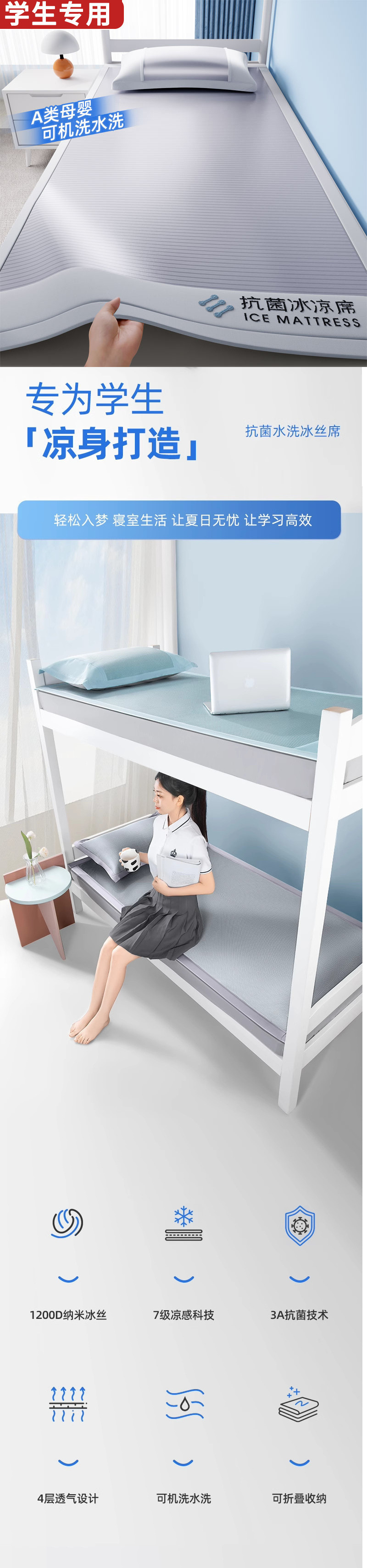아이스 실크 매트 여름 임대 주택 학생 기숙사 싱글 기계 세탁 가능 3피스 접이식 이층 침대 소프트 매트스토어 가기