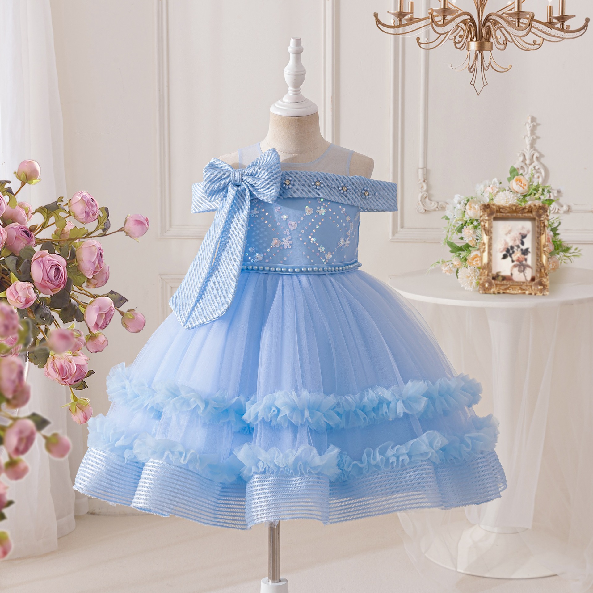 국경 간 어린이 투투 스커트 공연 의상 서스펜더 소녀 나비 거즈 스커트 스팽글 공주 스커트 댄스 공연 의상스토어 가기