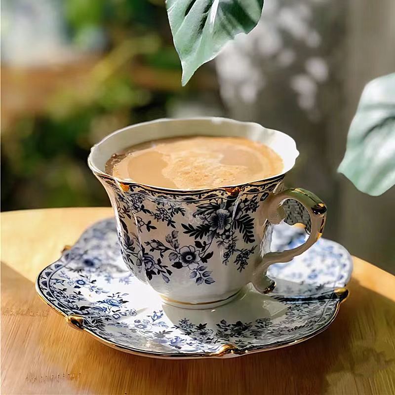 빈티지 블루와 화이트 도자기 커피 컵 틈새 중세 고대 고급 홈 애프터눈 티 컵 세트 도매