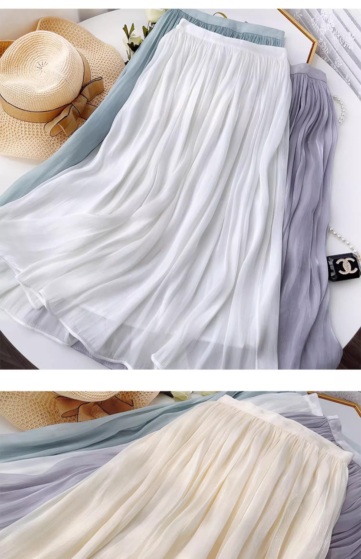 우아한 스트랜더 거즈 스커트 여자 여름 2025 하이 엔드 센스 슬리밍 해변 A 라인 스커트 작은 여성스토어 가기