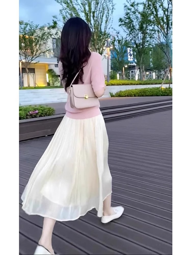 우아한 스트랜더 거즈 스커트 여자 여름 2025 하이 엔드 센스 슬리밍 해변 A 라인 스커트 작은 여성