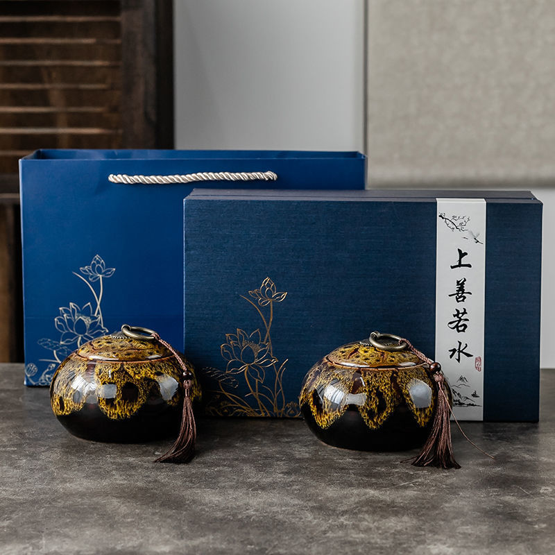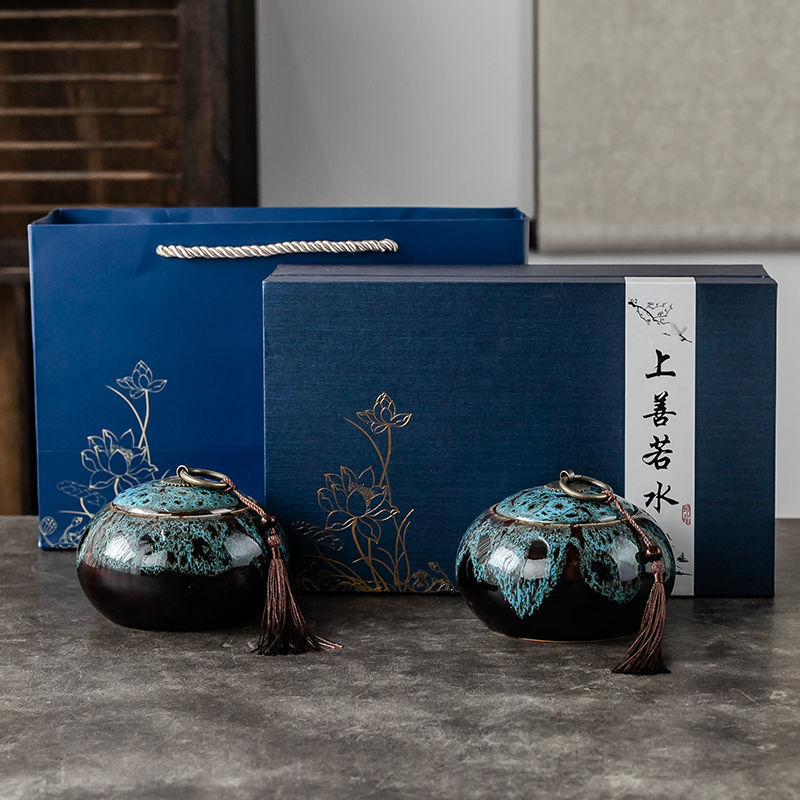 • Yuan Shuang Jar 선물 상자 세트--가마가 파란색으로 변합니다.