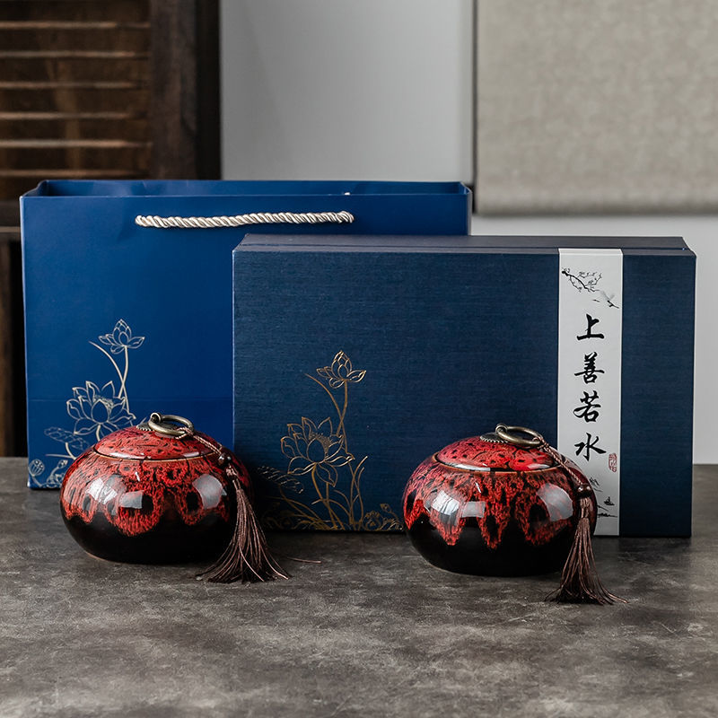 • 도교 선물 상자 단일 항아리 세트 - 가마가 빨간색으로 변합니다.