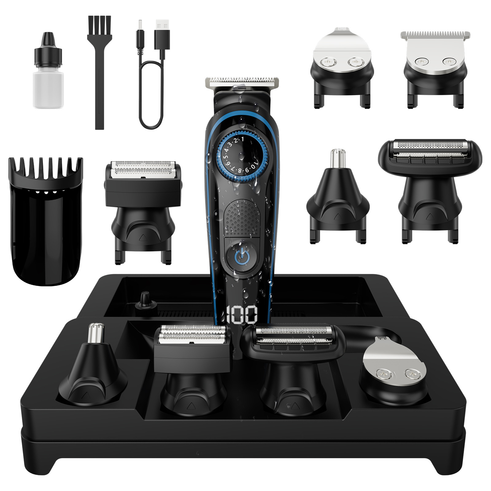 국경 간 5-in-1 다기능 전기 클리퍼 LCD 스크린 헤어 살롱 조각 충전식 전기 클리퍼 전기 머리 깎기 도매스토어 가기