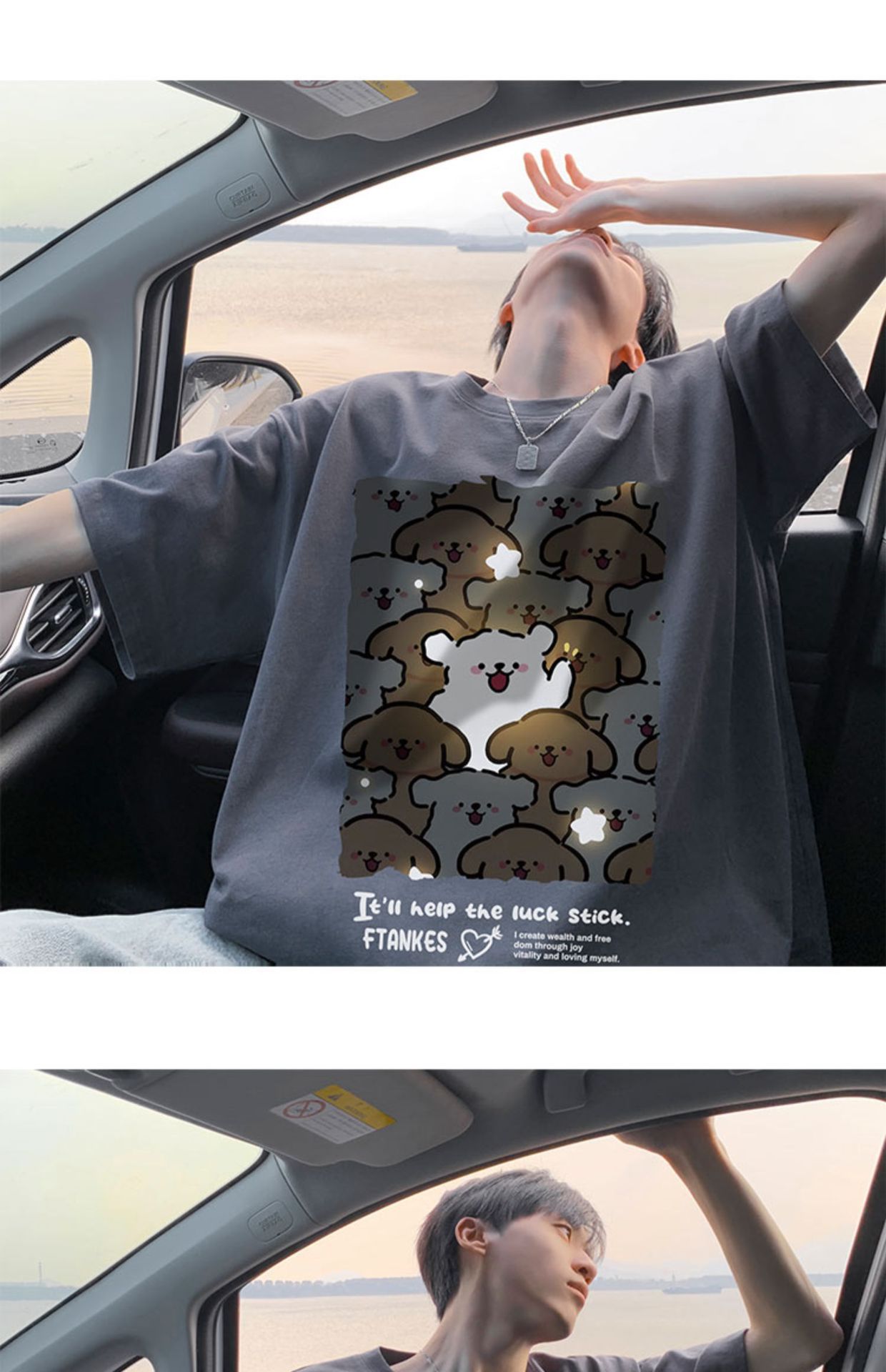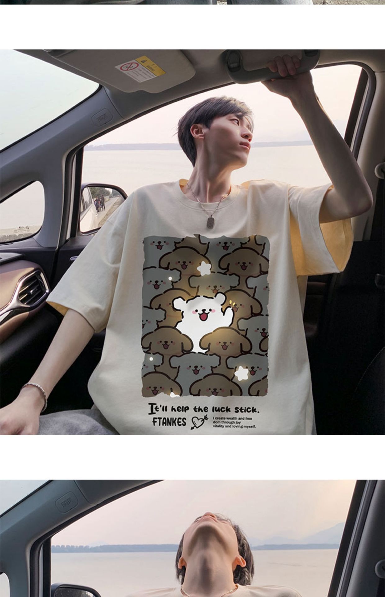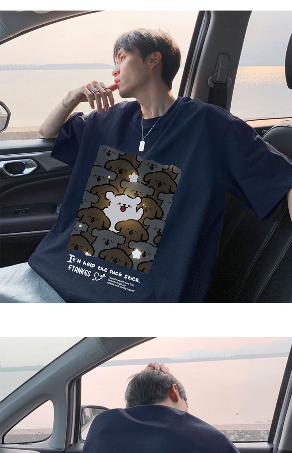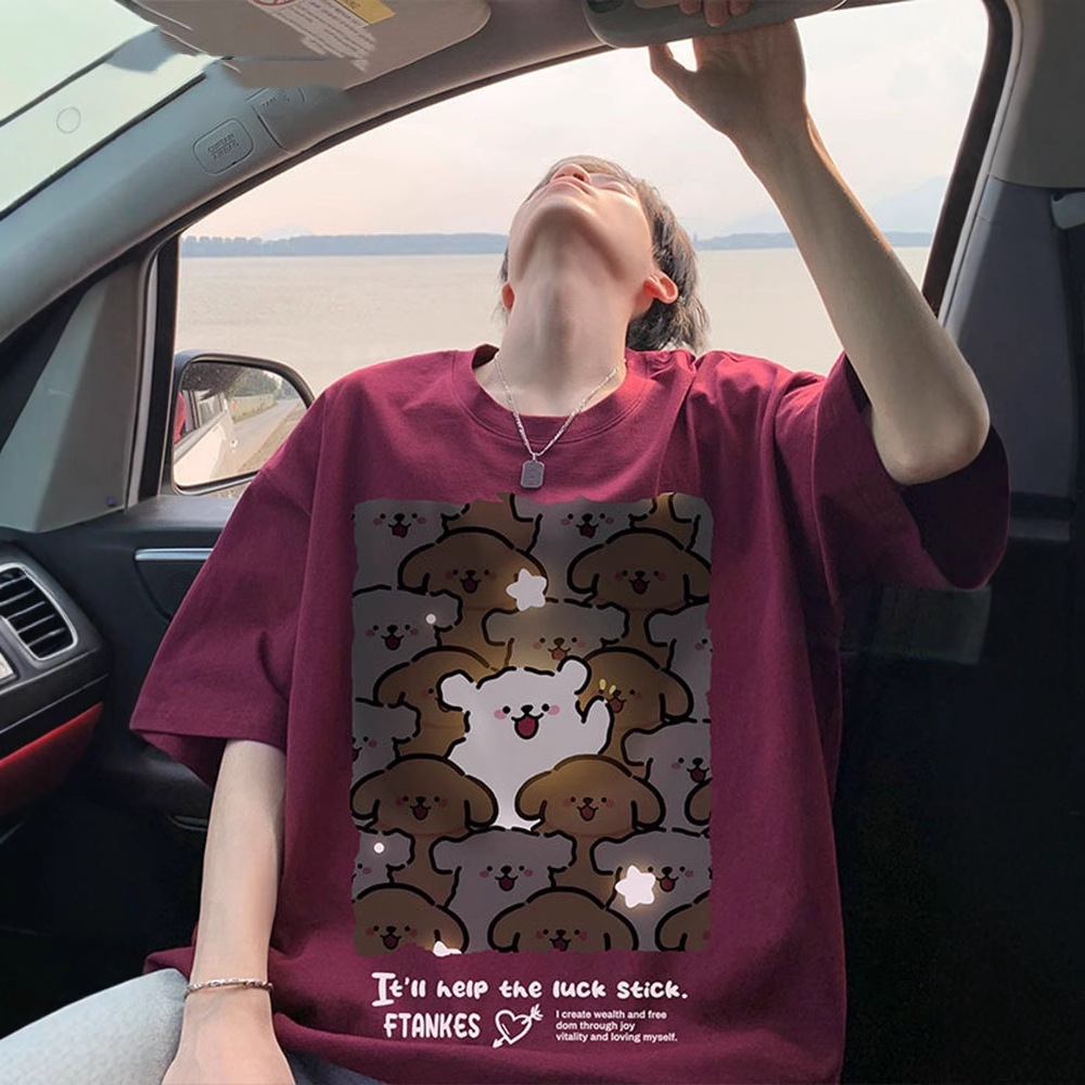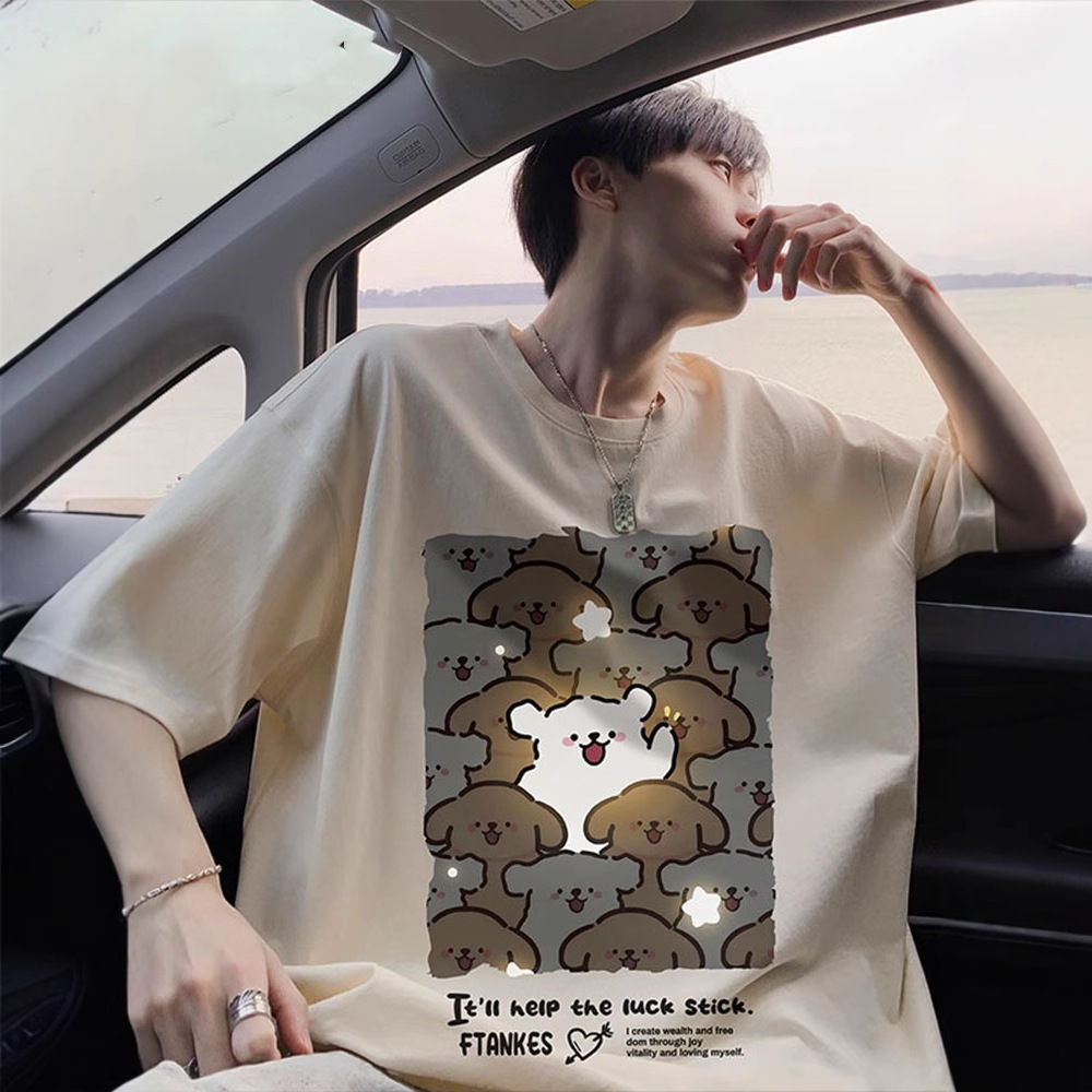 트렌디 한 브랜드 반팔 티셔츠 남성용 여름 퓨어 코튼 아메리칸 스타일 하이 스트리트 디자인 센스 만화 인쇄 플러스 사이즈 느슨한 반팔 반소매 티셔츠스토어 가기