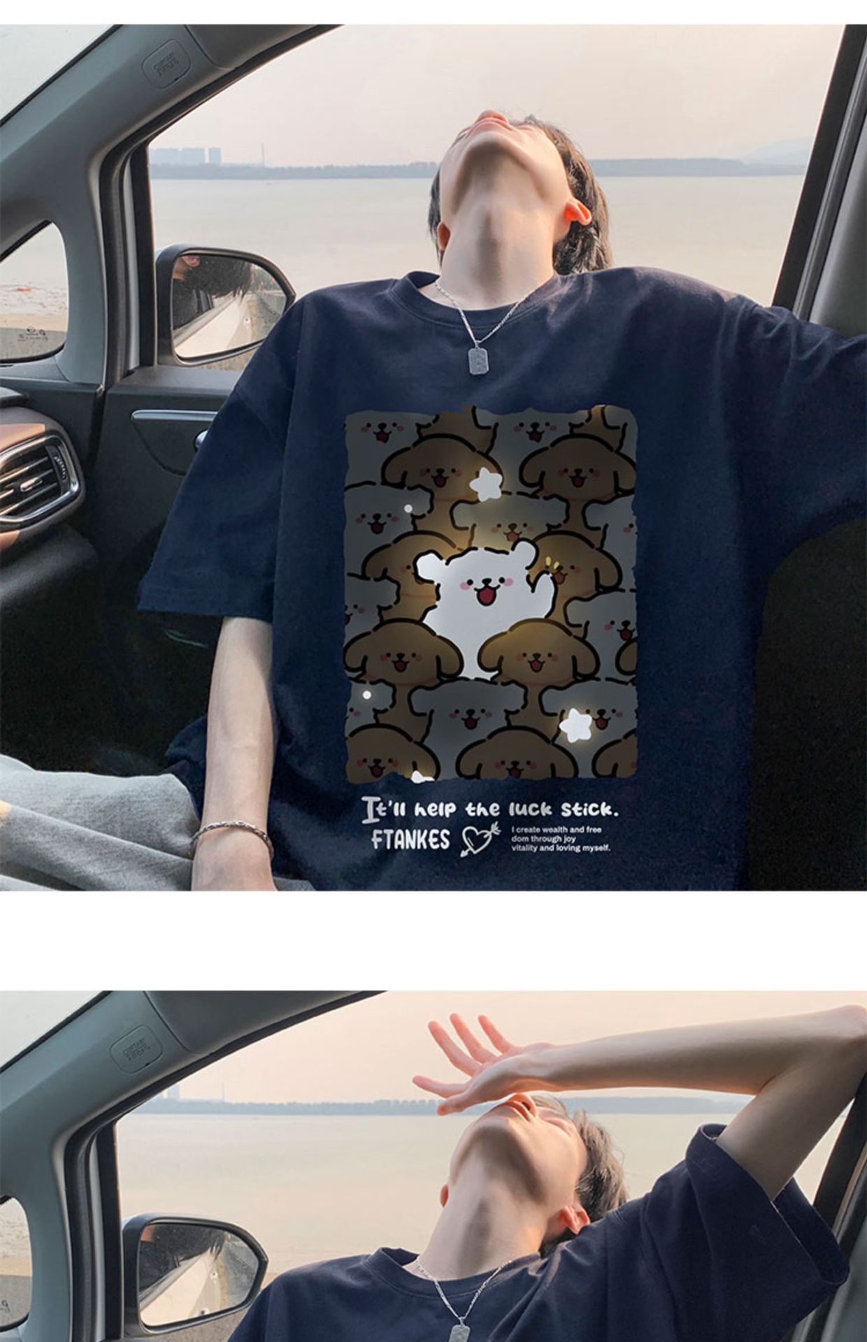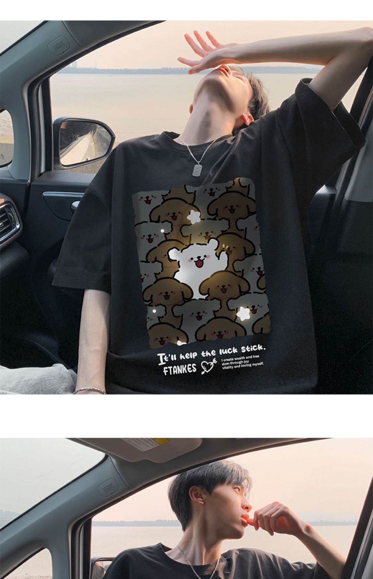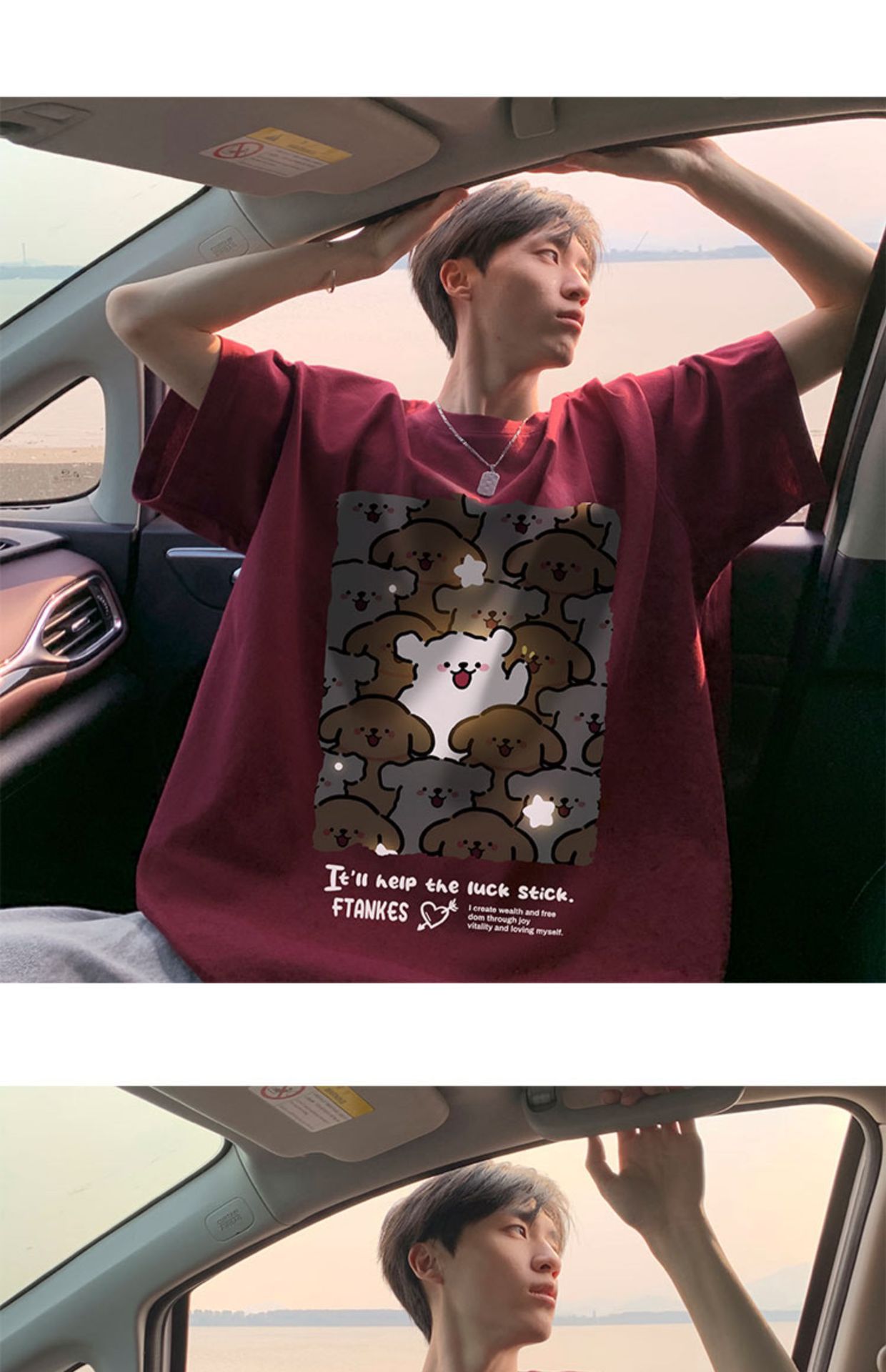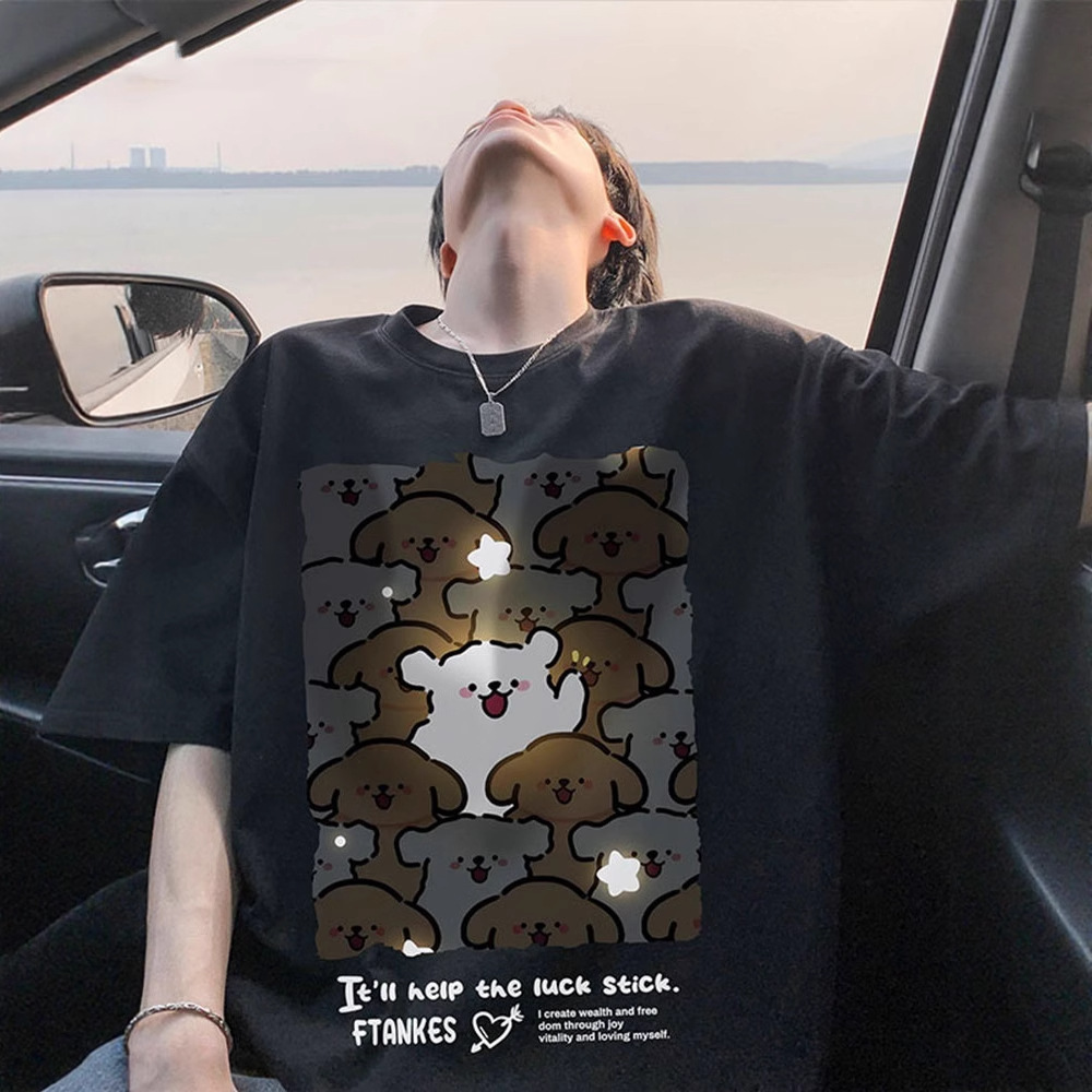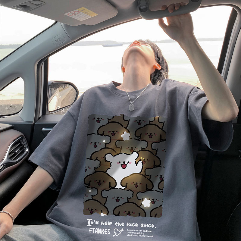 트렌디 한 브랜드 반팔 티셔츠 남성용 여름 퓨어 코튼 아메리칸 스타일 하이 스트리트 디자인 센스 만화 인쇄 플러스 사이즈 느슨한 반팔 반소매 티셔츠스토어 가기