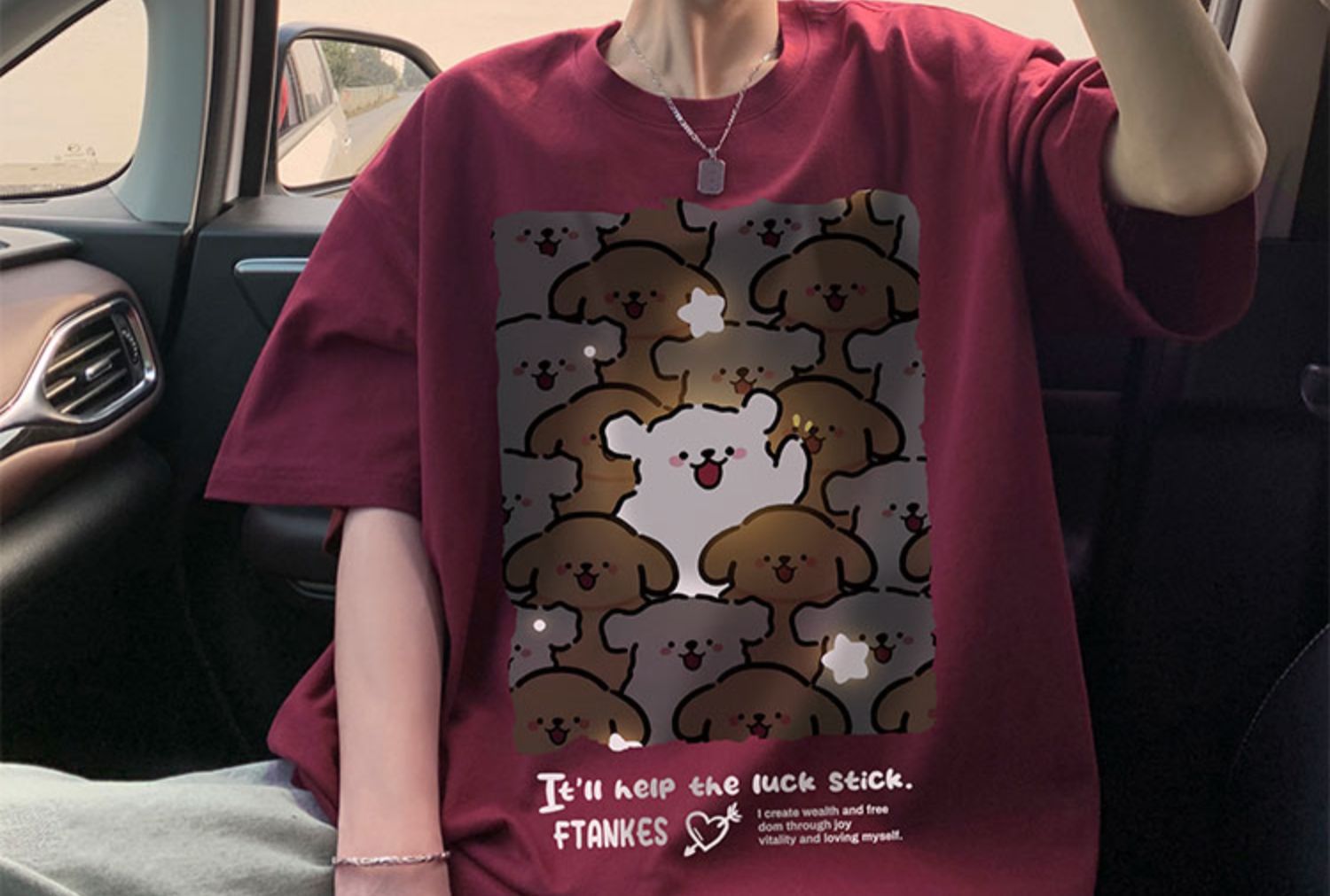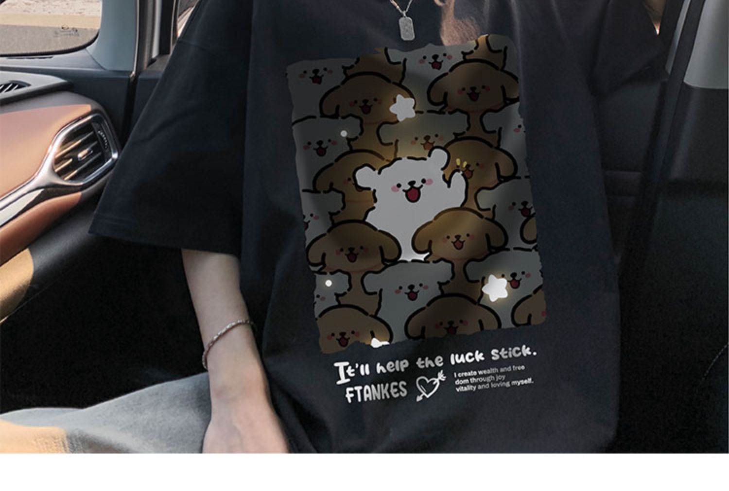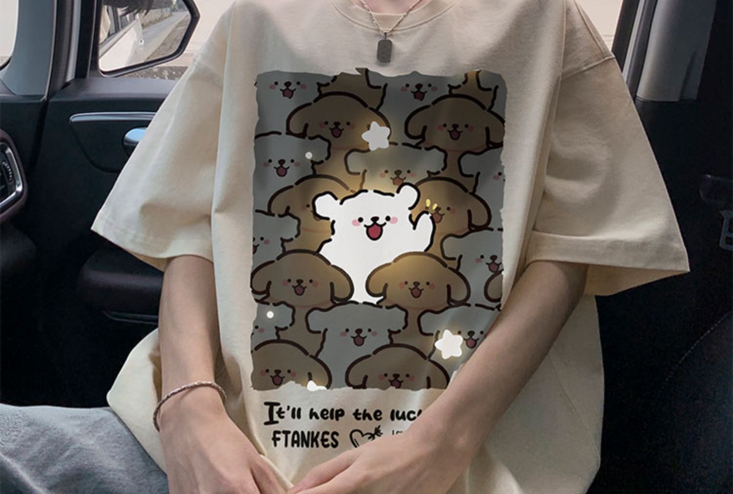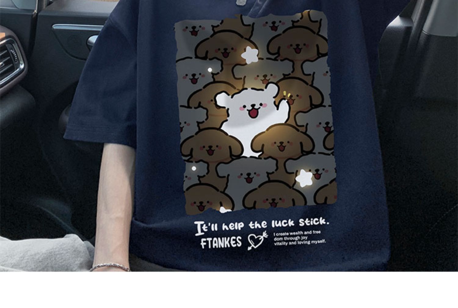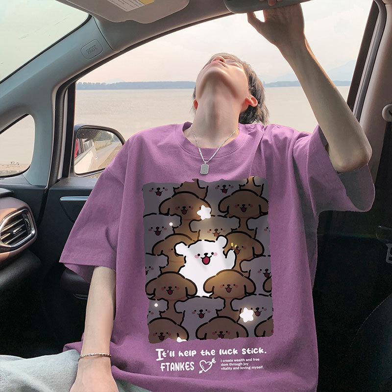 트렌디 한 브랜드 반팔 티셔츠 남성용 여름 퓨어 코튼 아메리칸 스타일 하이 스트리트 디자인 센스 만화 인쇄 플러스 사이즈 느슨한 반팔 반소매 티셔츠스토어 가기