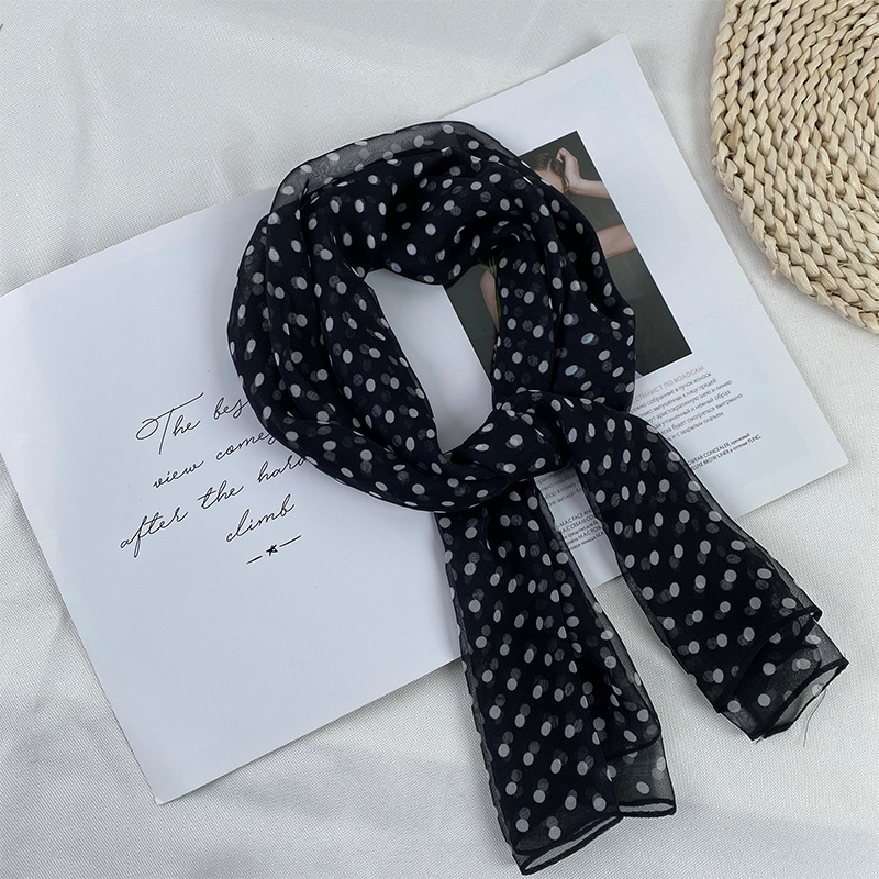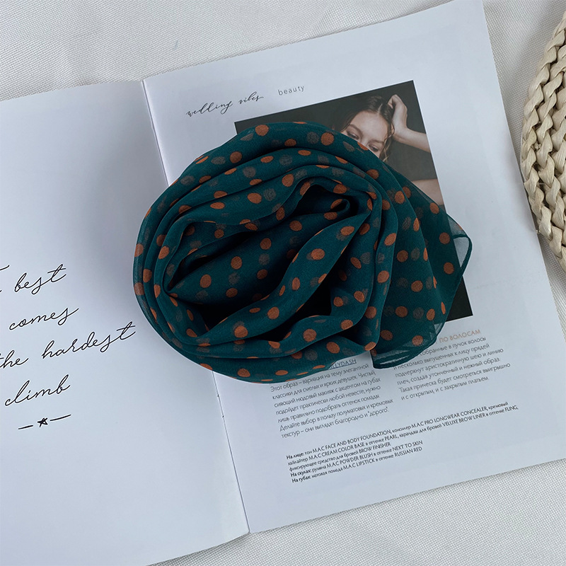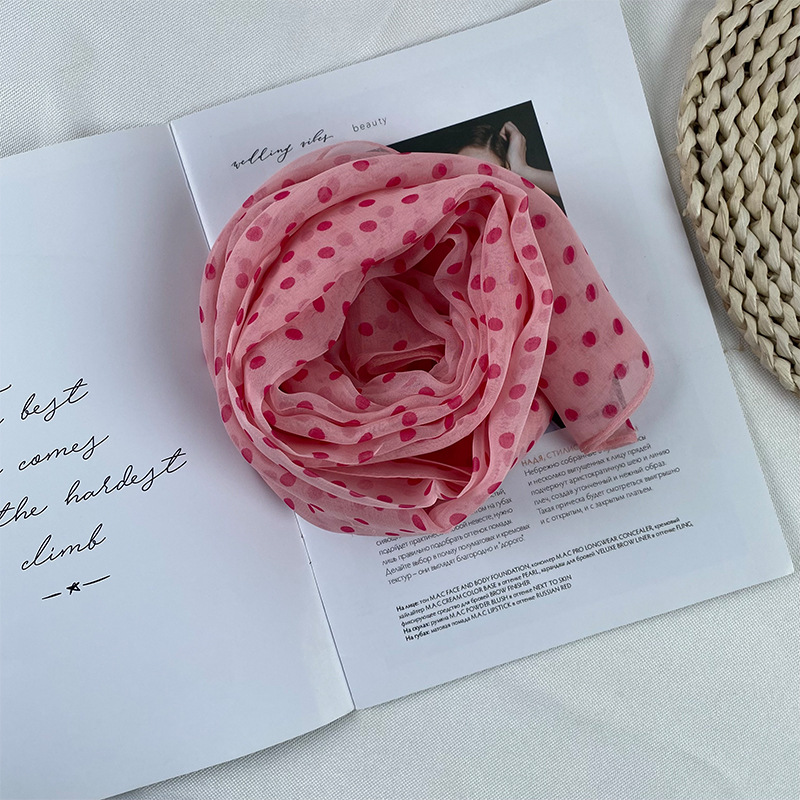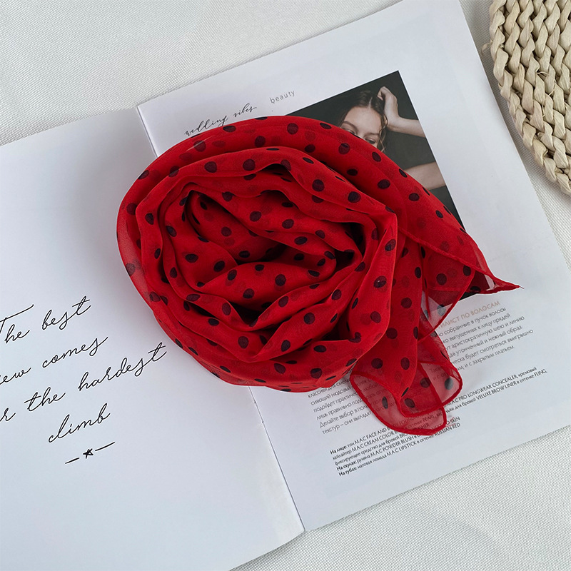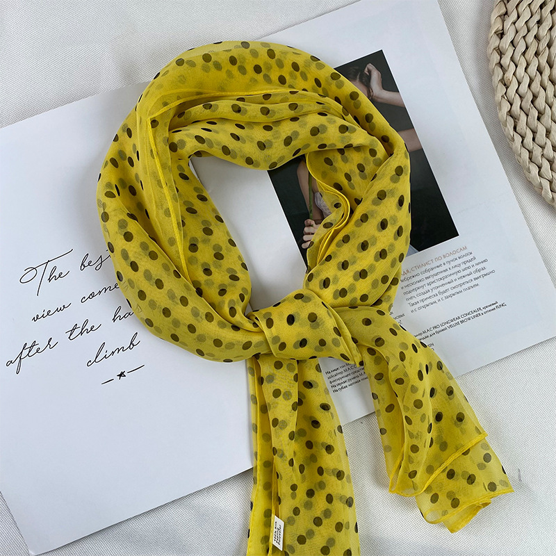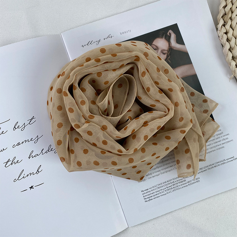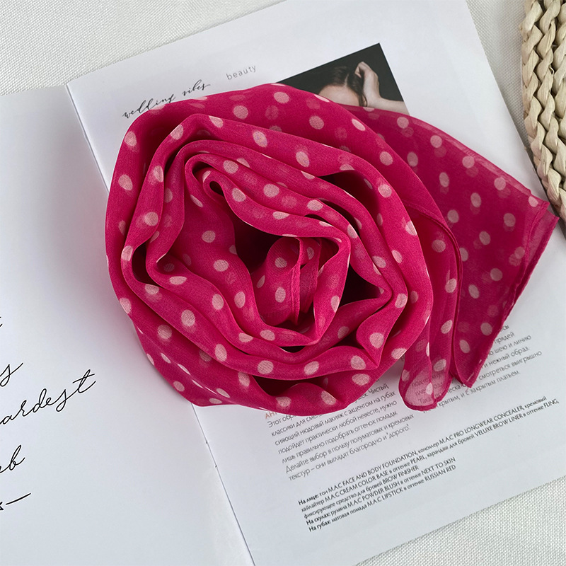 봄, 가을, 여름 실크 스카프, 패셔너블한 물방울 무늬 조젯, 우아한 프린트 물방울 무늬, 고급 여행용 자외선 차단제, 서양식 스카프스토어 가기