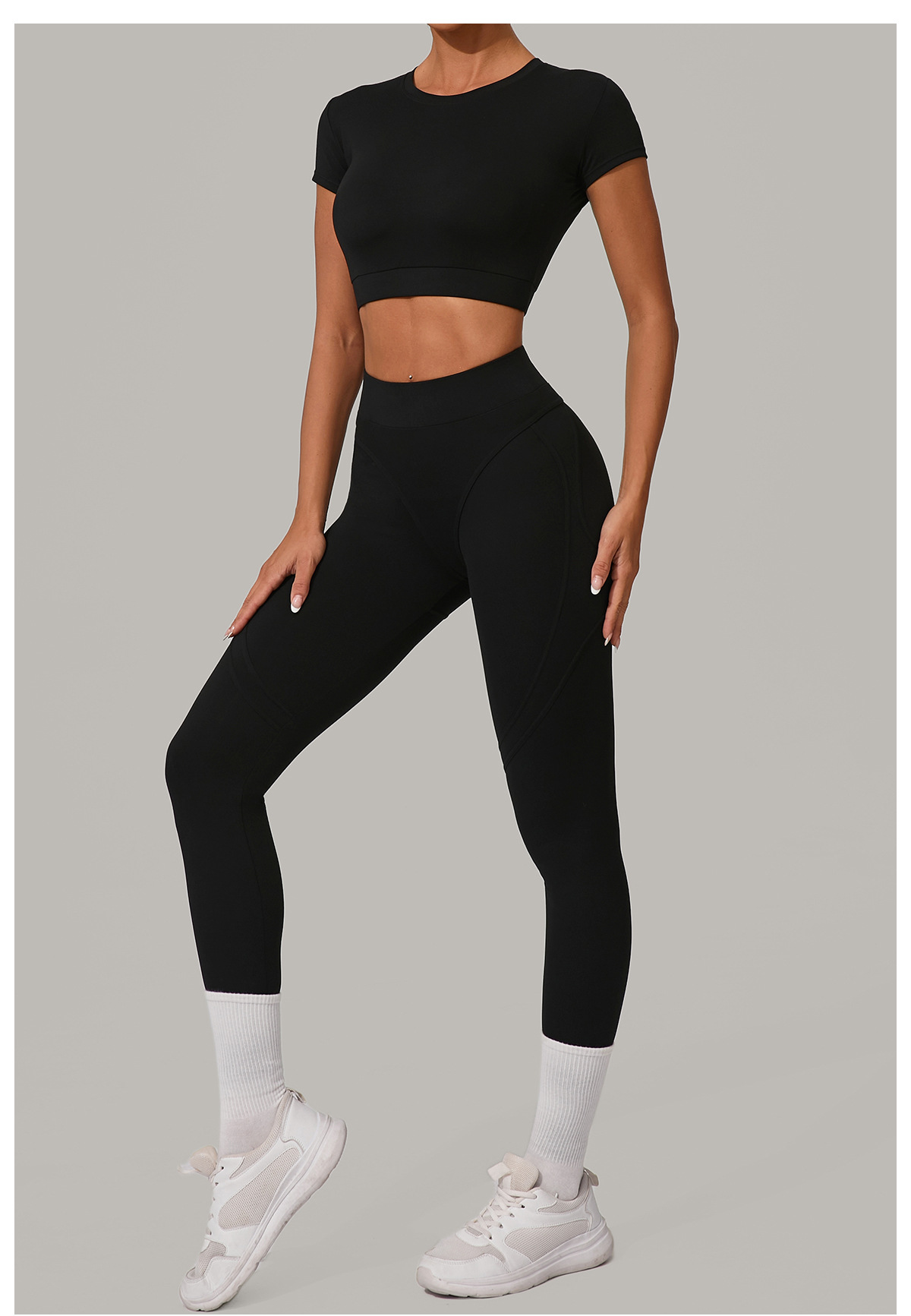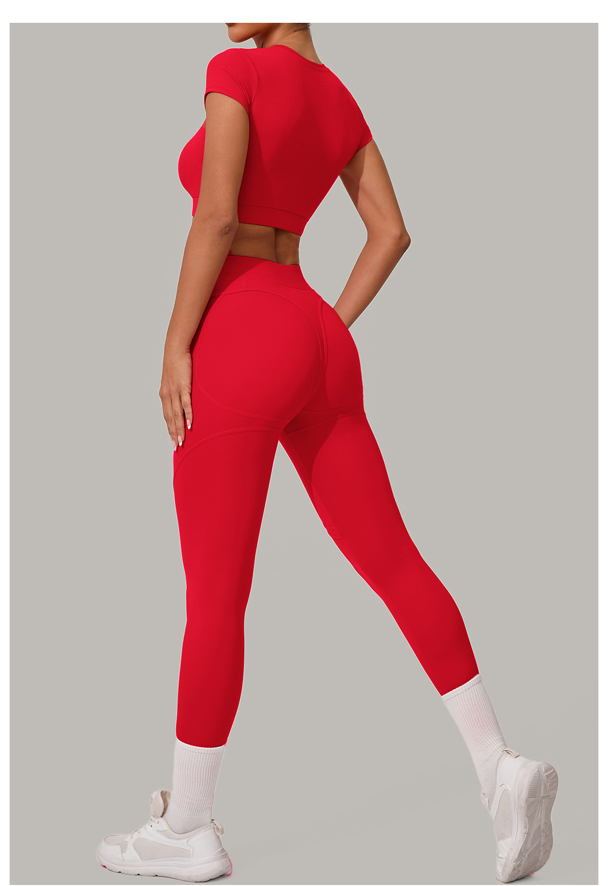 Qiusha 높은 허리 엉덩이 리프팅 및 샌딩 요가 바지 달리기 빠른 건조 피트니스 바지 타이트 허리 엉덩이 타이트 스포츠 바지 08101