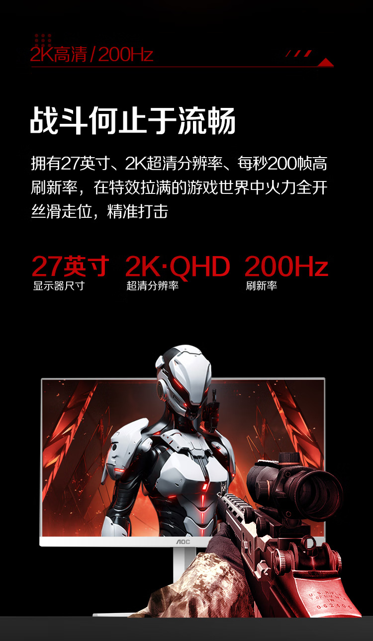 AOC Q27G4/WS 27인치 2K200hz1ms IPS 소형 다이아몬드 리프팅 및 회전 LCD 모니터 화면스토어 가기