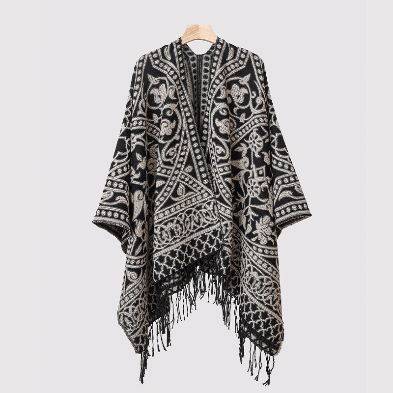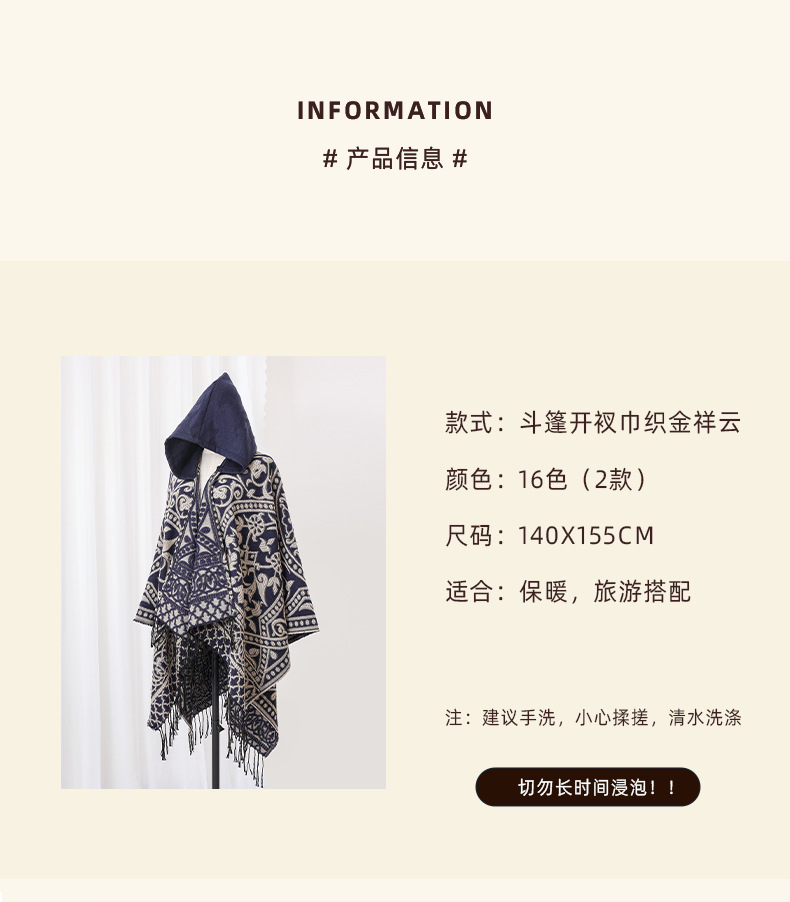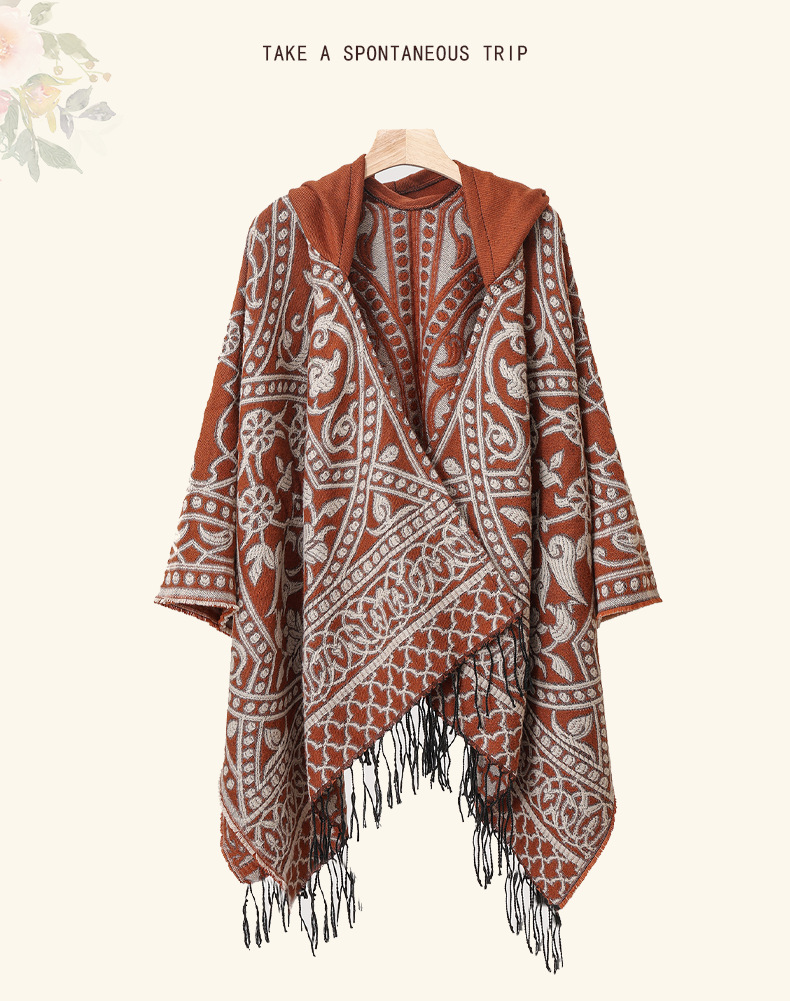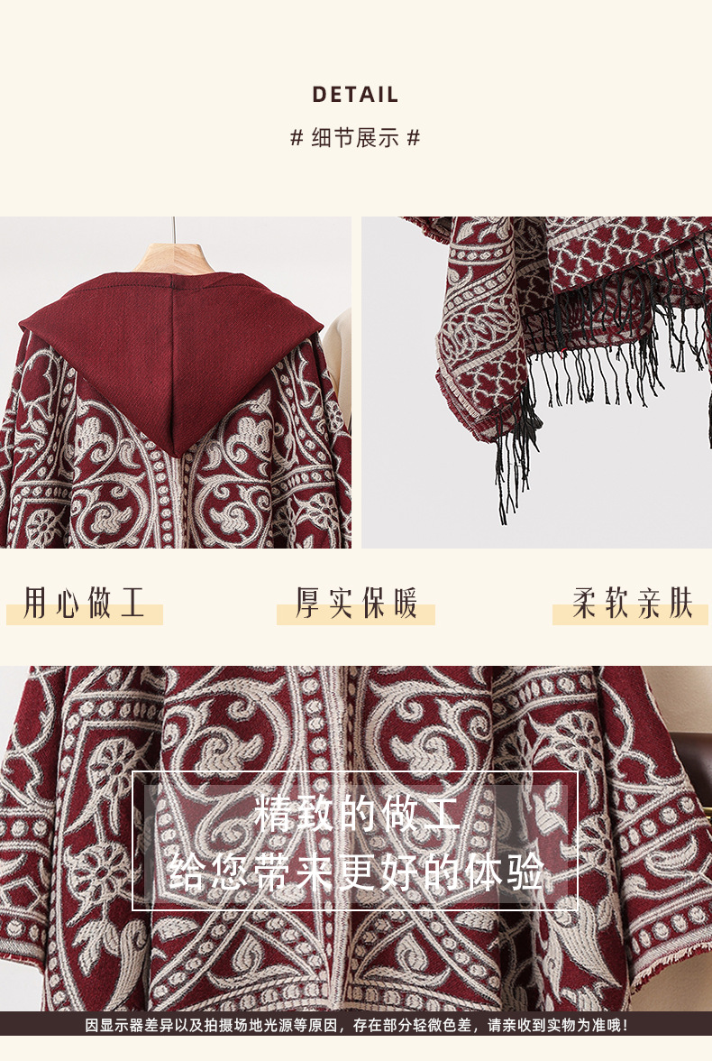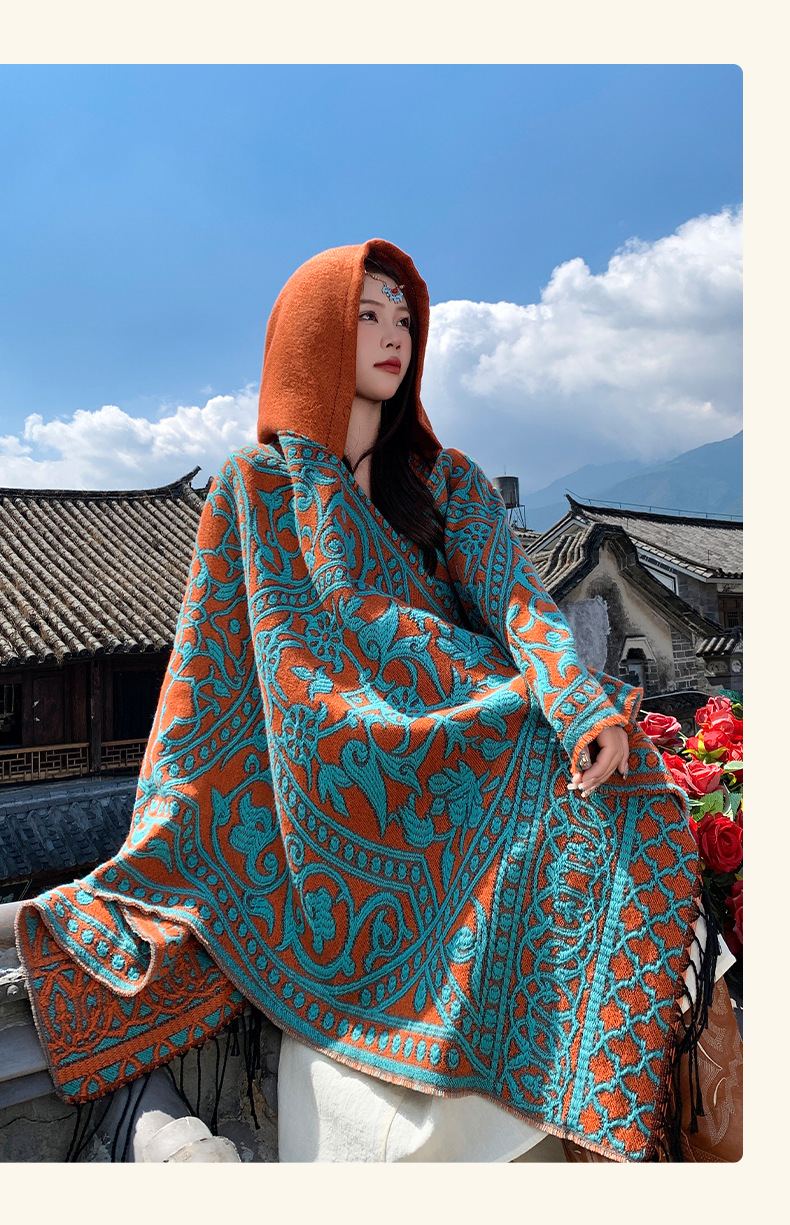 사진 촬영을 위한 에스닉 스타일 여행복, 모조 캐시미어 스카프, 가을 겨울 두꺼운 따뜻한 슬릿 스카프, 후드 망토스토어 가기