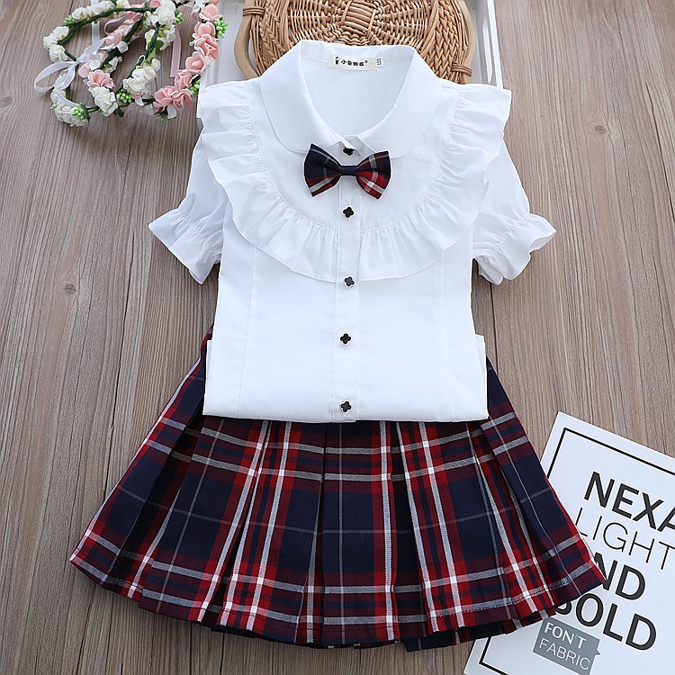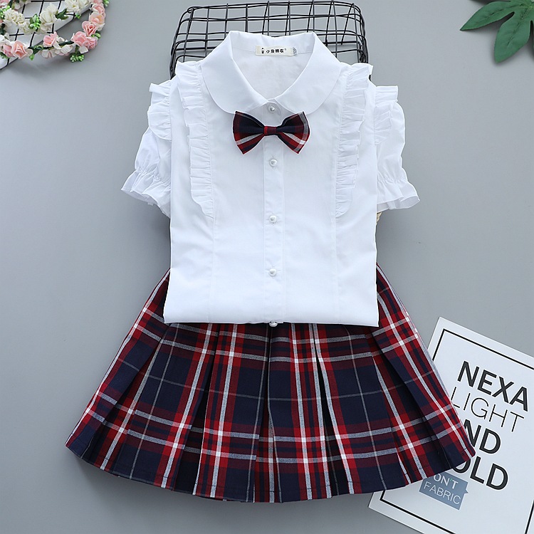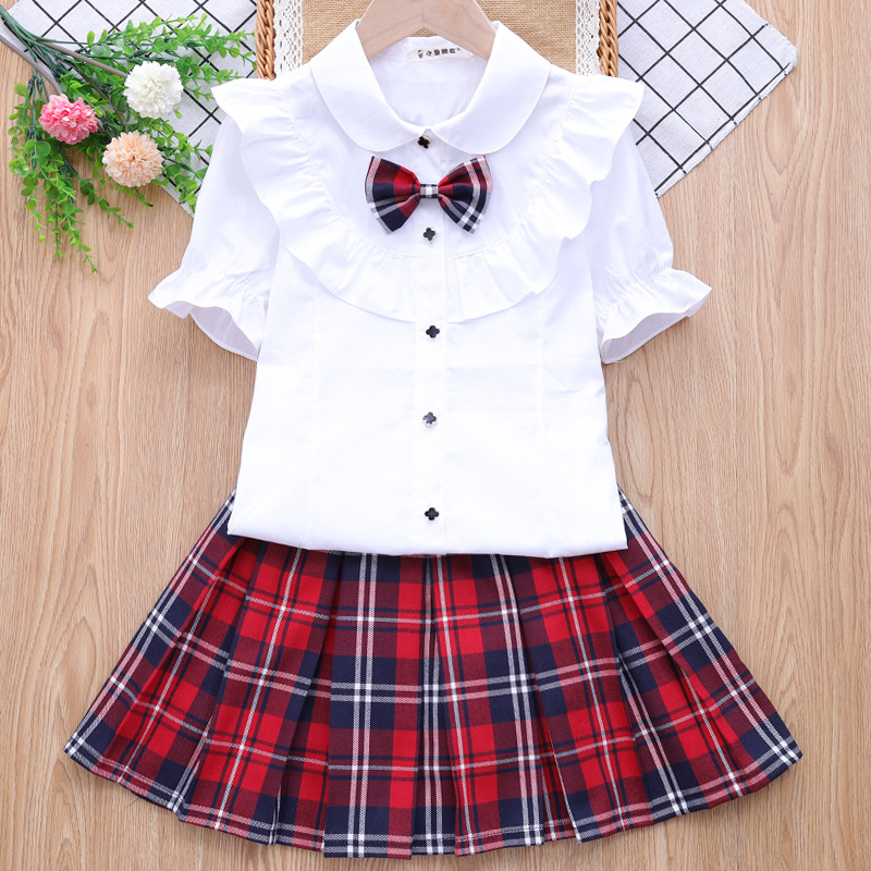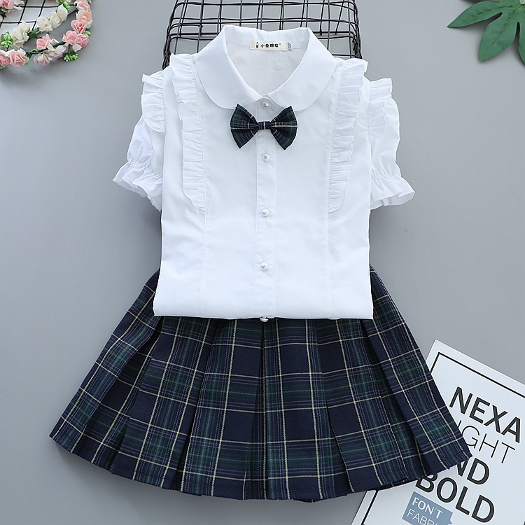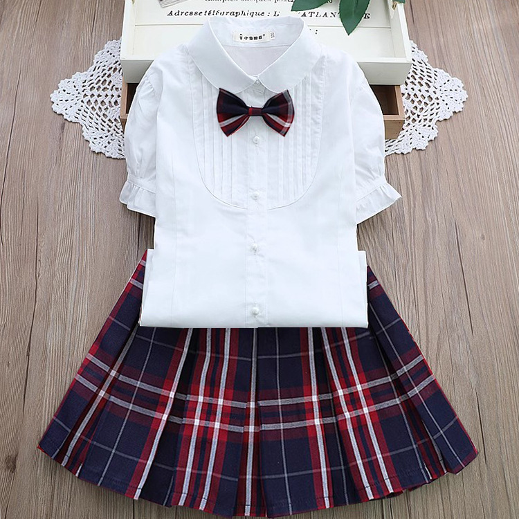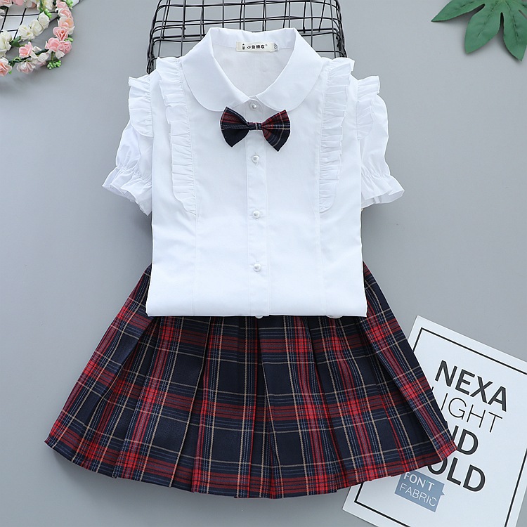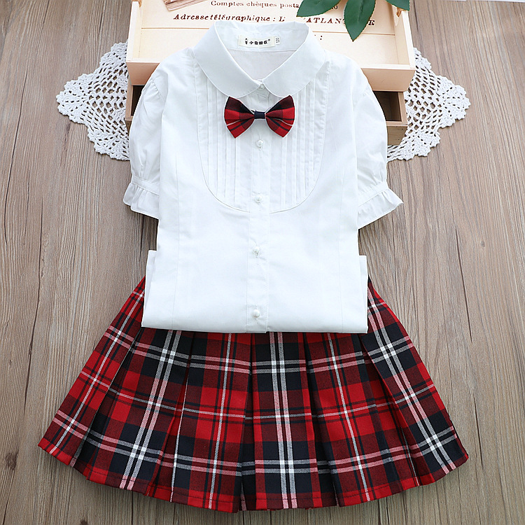 여아 체크무늬 스커트, 아동용 반팔 긴팔 셔츠 정장, 학교 교복, 중대형 아동용 플리츠 스커트 S04