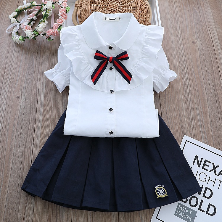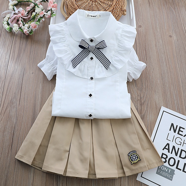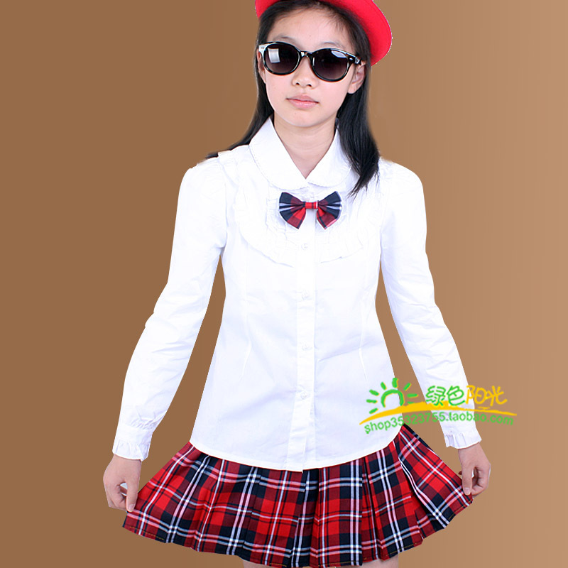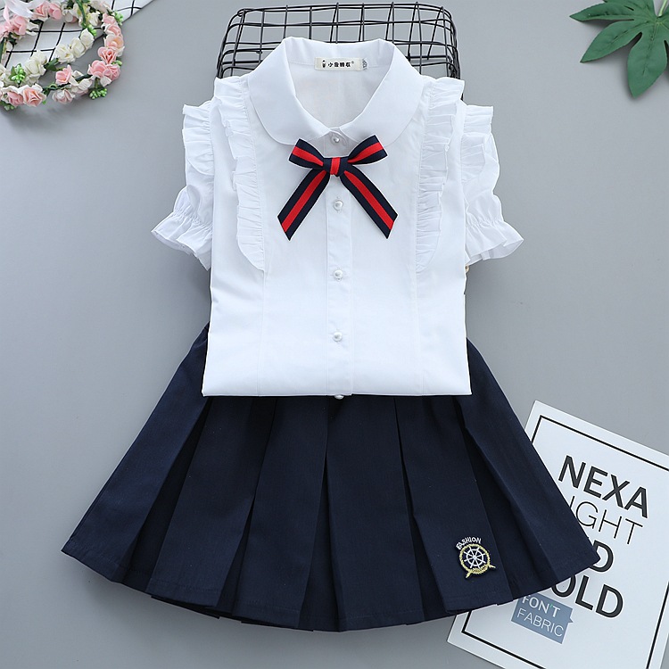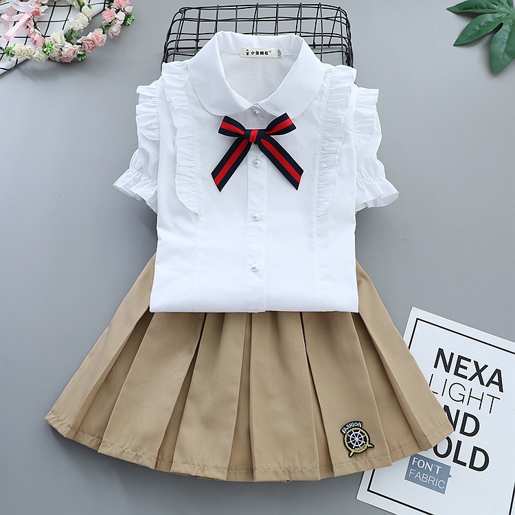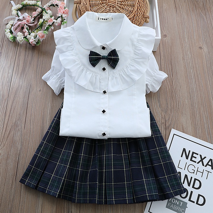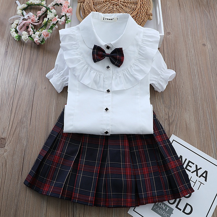여아 체크무늬 스커트, 아동용 반팔 긴팔 셔츠 정장, 학교 교복, 중대형 아동용 플리츠 스커트 S04