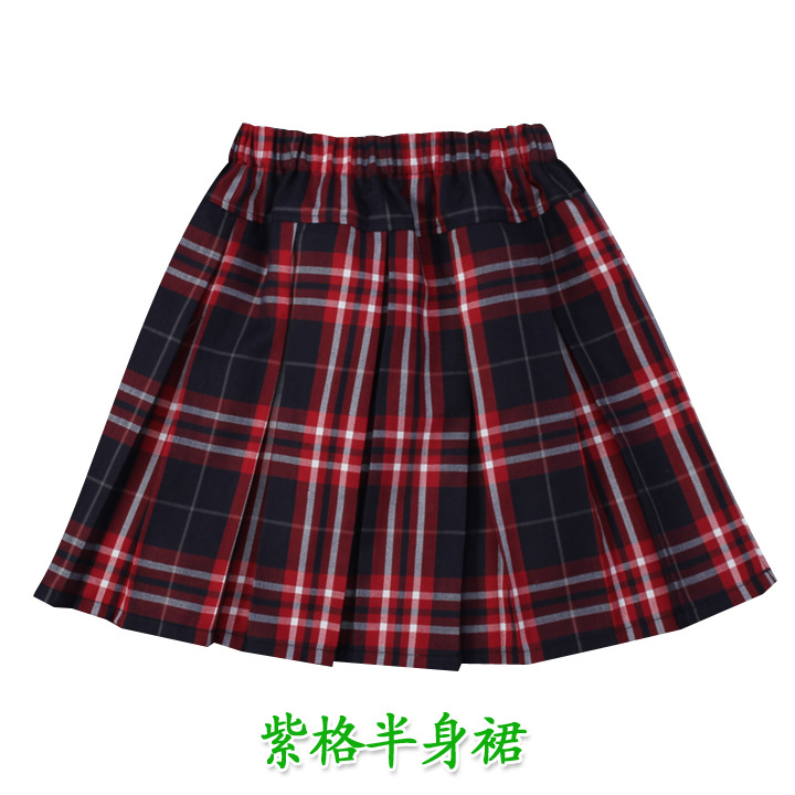 • 영국식 반팔 + 보라색 체크무늬 스커트 + 보라색 체크무늬 나비넥타이 슈트