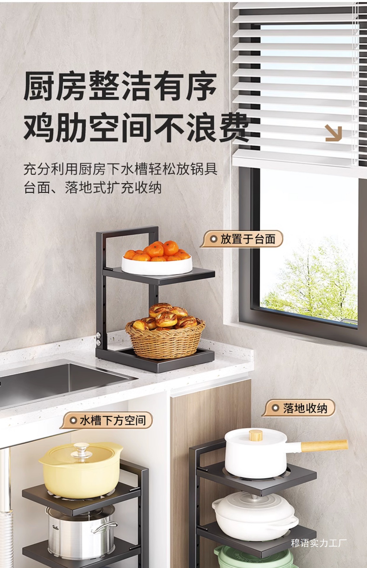 주방 보관 랙 가정용 용품 Daquan 다층 냄비 저장 랙 싱크 캐비닛 레이어드 팟 랙스토어 가기