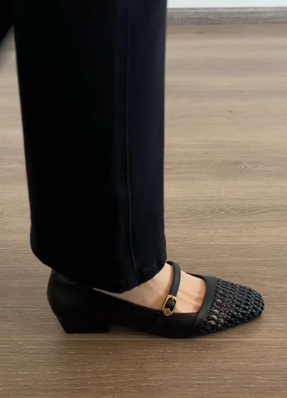 짠 두꺼운 힐 블랙 올 매치 틈새 싱글 레이어 신발 여성용 부드러운 밑창 통근 우아한 수제 메리 제인 신발스토어 가기