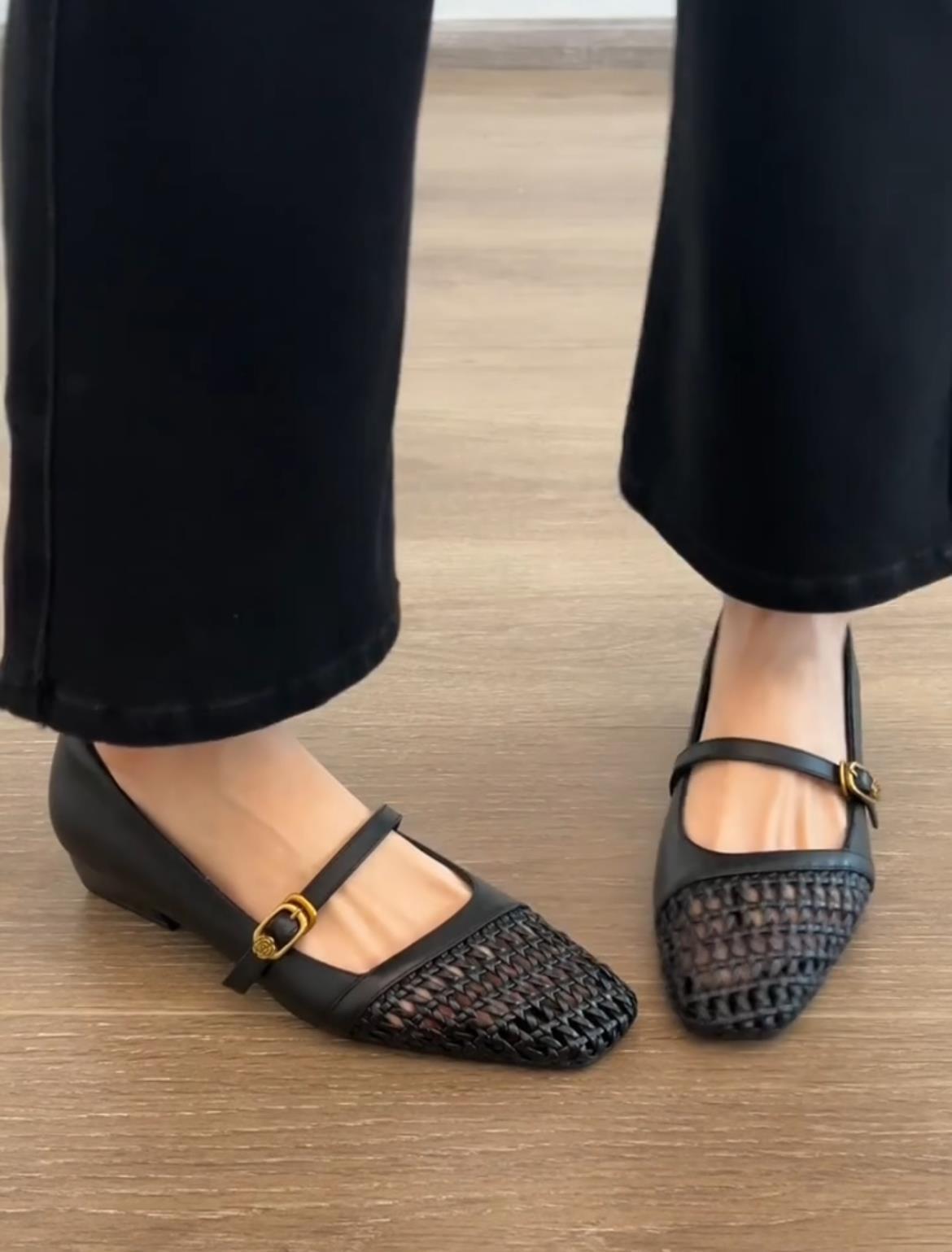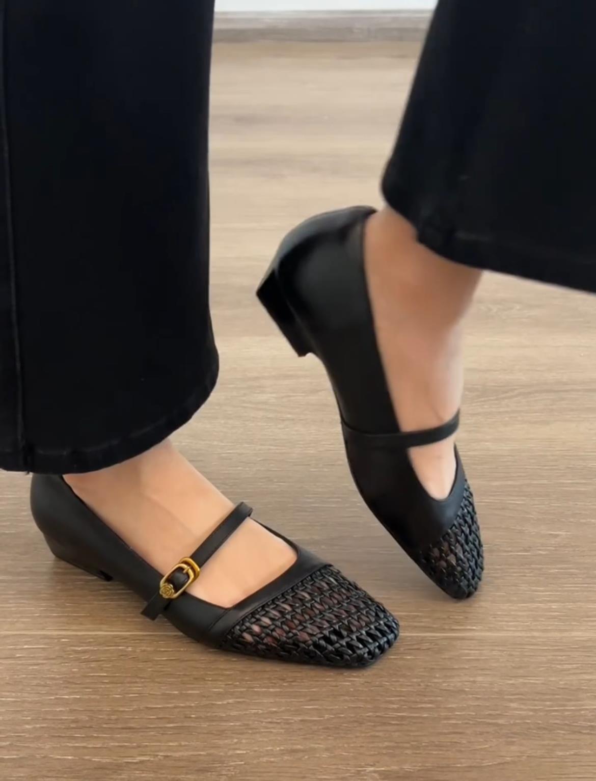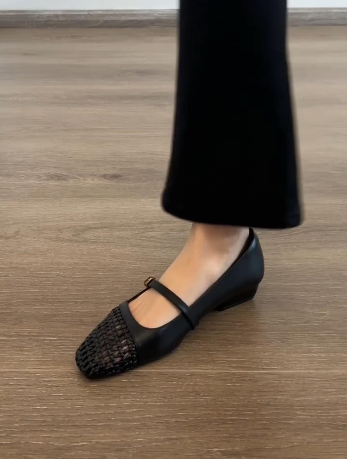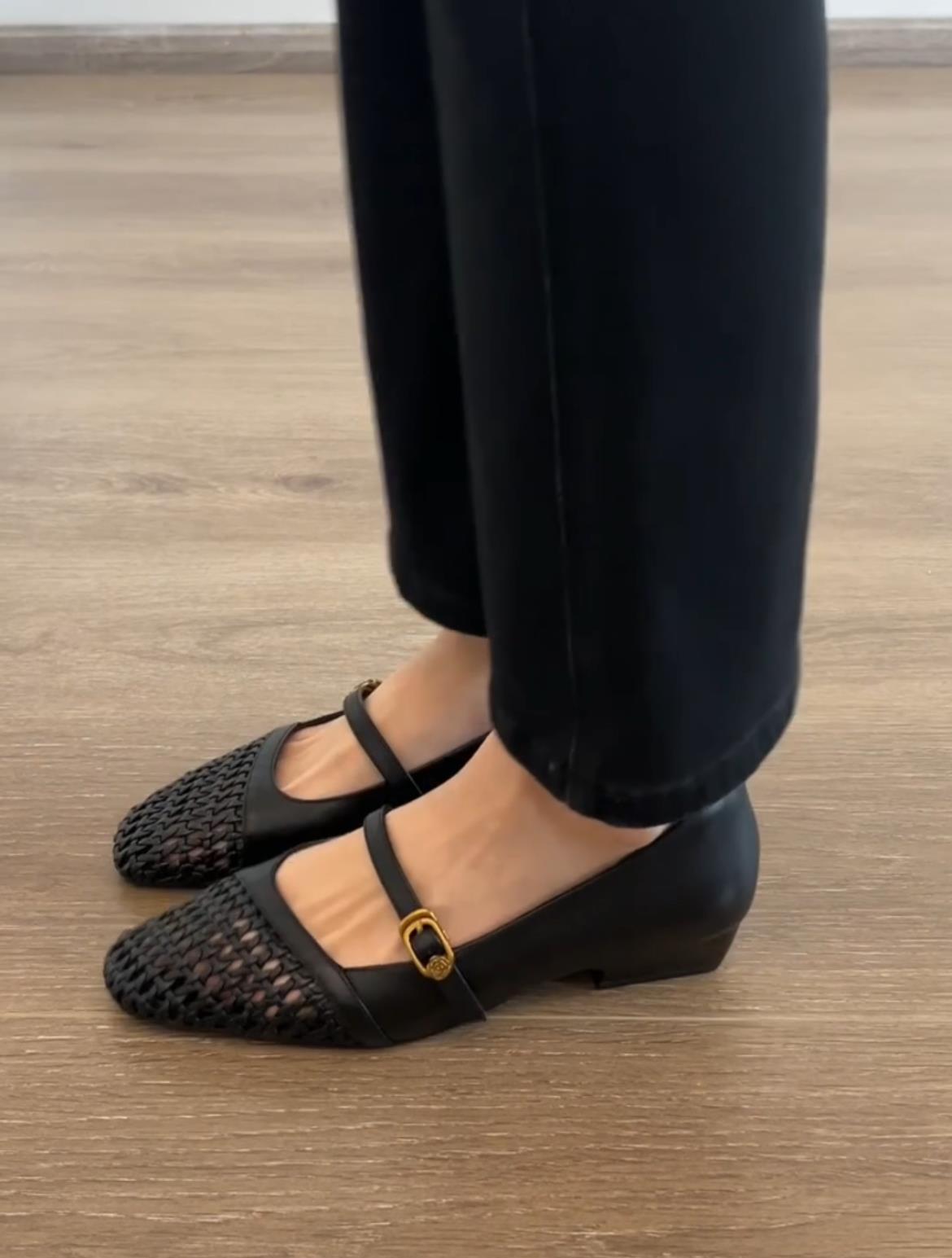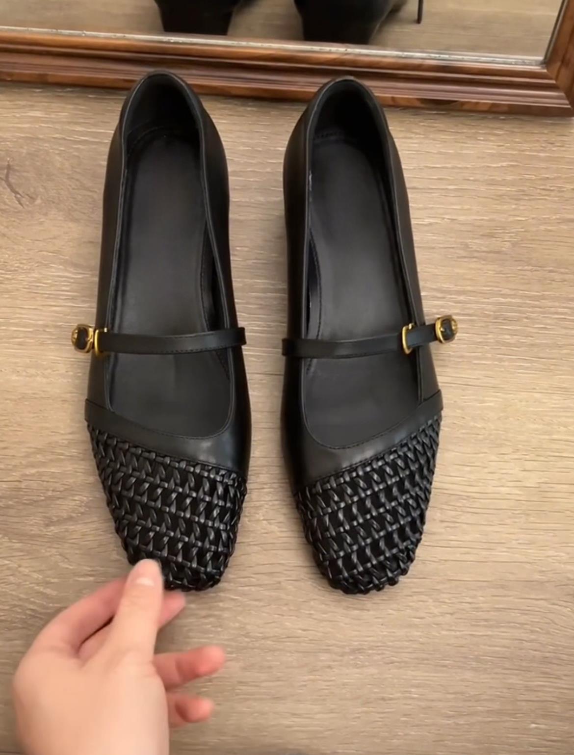 짠 두꺼운 힐 블랙 올 매치 틈새 싱글 레이어 신발 여성용 부드러운 밑창 통근 우아한 수제 메리 제인 신발