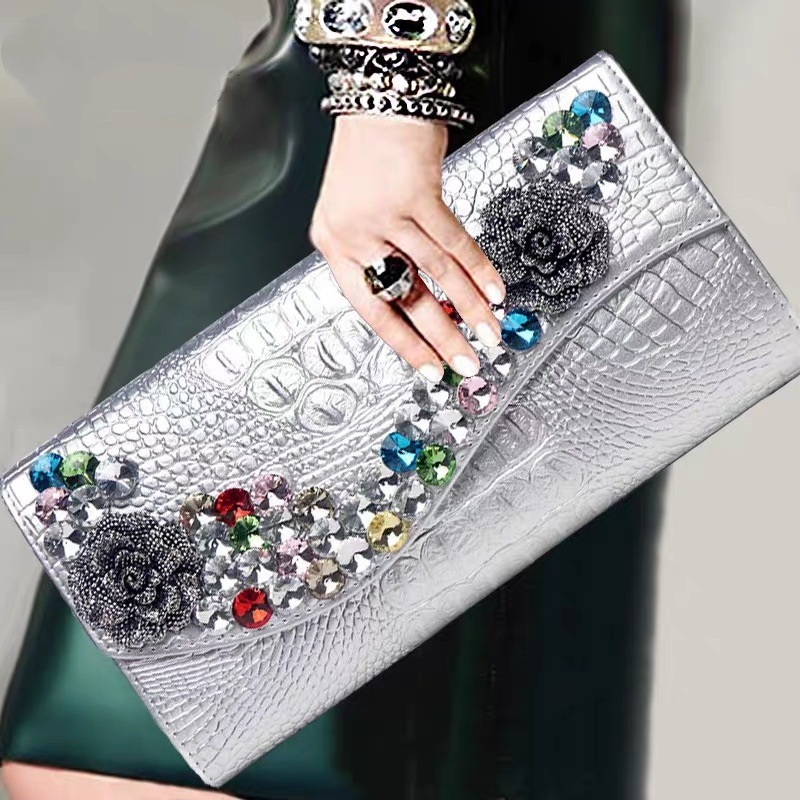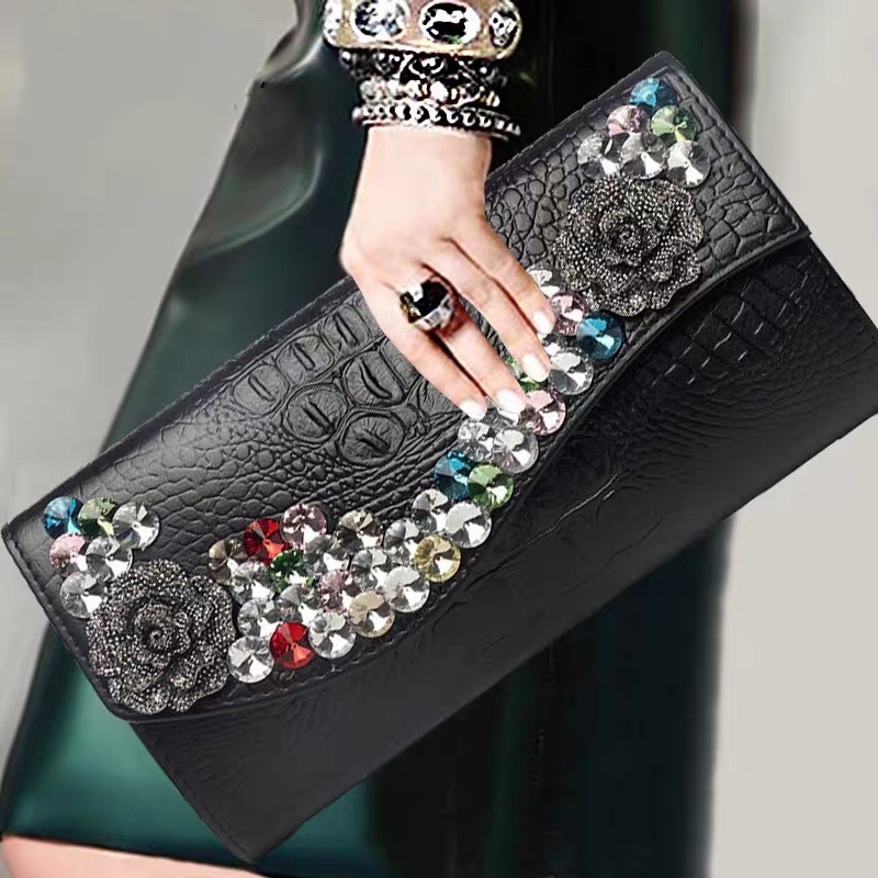 정품 가죽 여성용 클러치 고급 라인스톤 백 풀 다이아몬드 크로스 바디 백 대용량 클러치 백 여성용 지갑 여성용 어머니