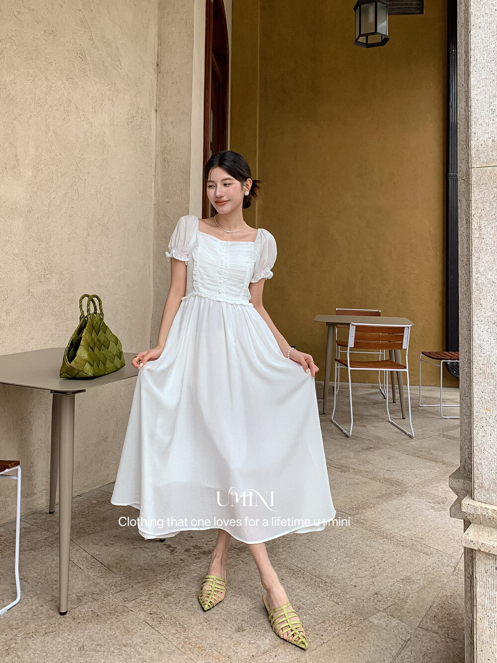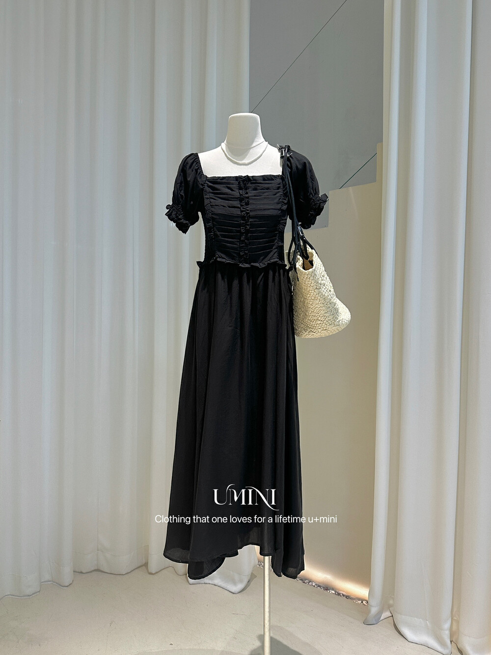 U + MINI 13 라인 3105 새로운 프랑스 100% 텐셀 중공업 목재-귀 가장자리 단단한 허리 소매 원피스