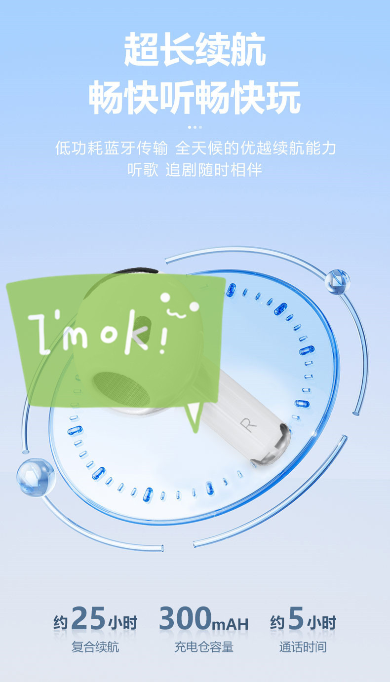 12.耳机工作时间:实测100%音量连续播放约6小时