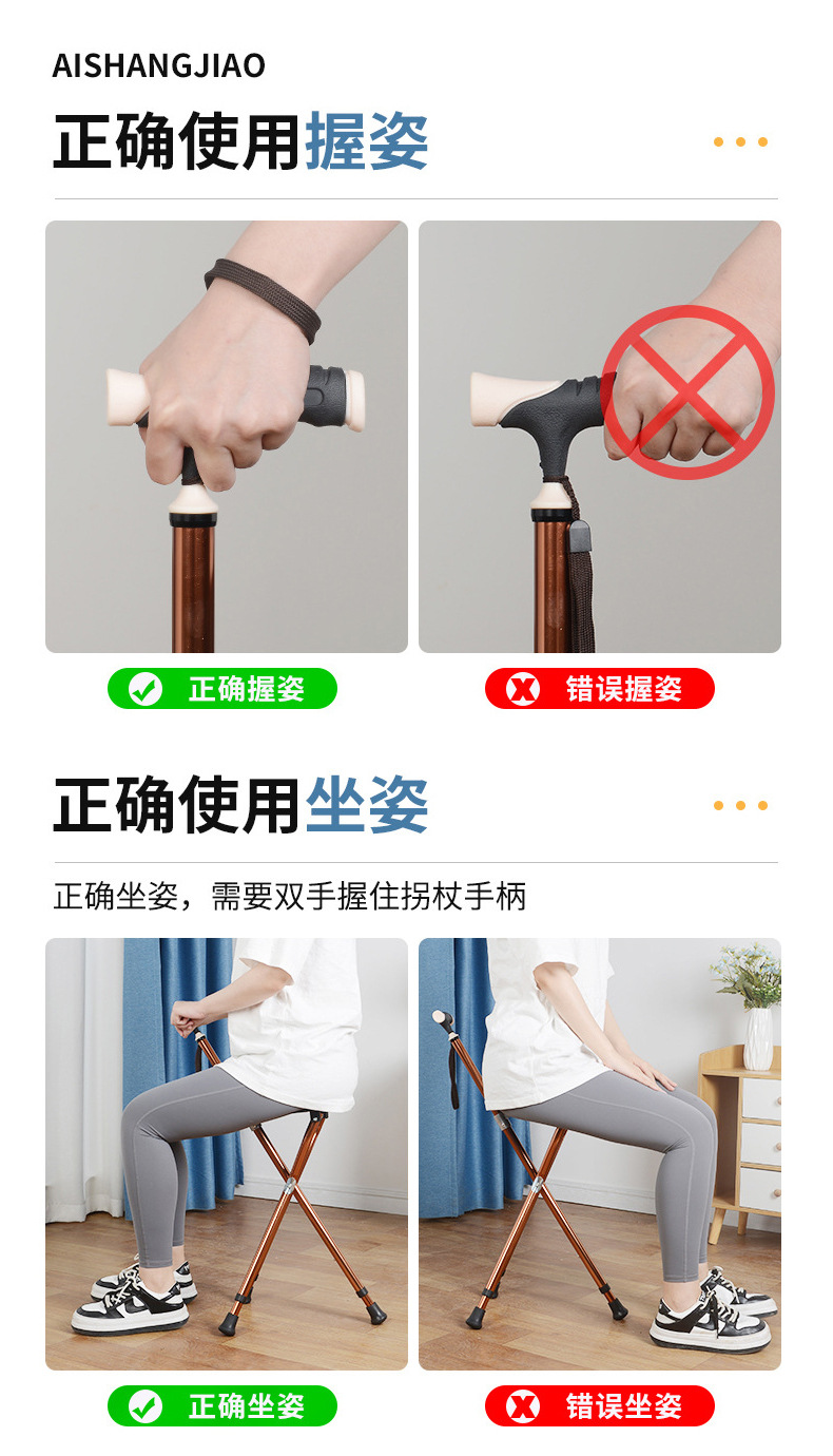 노인용 지팡이 의자, 다기능 조명 접이식 지팡이 의자, 휴대용 보행 보조 지팡이, 미끄럼 방지 지팡이 의자스토어 가기