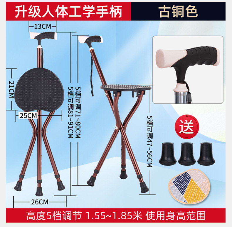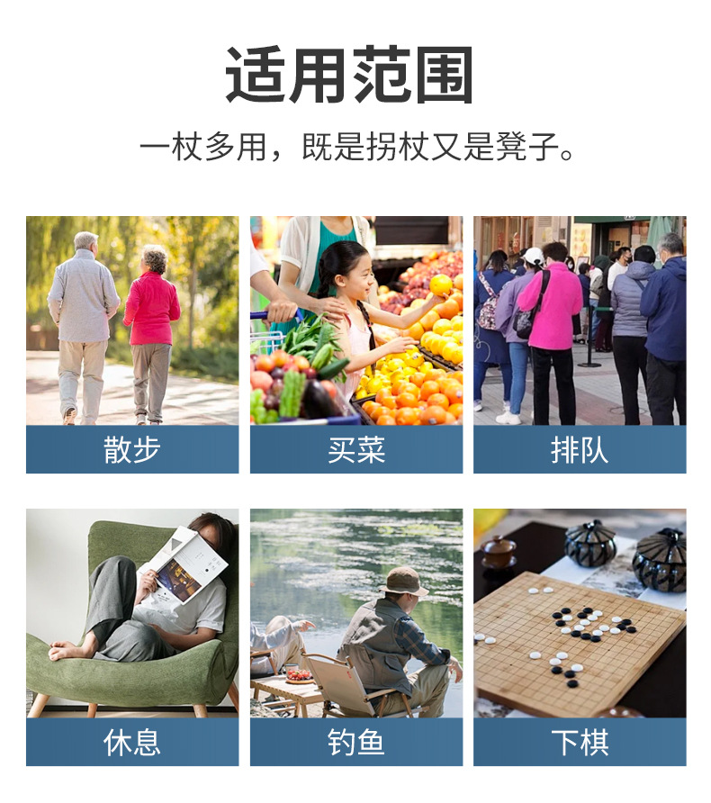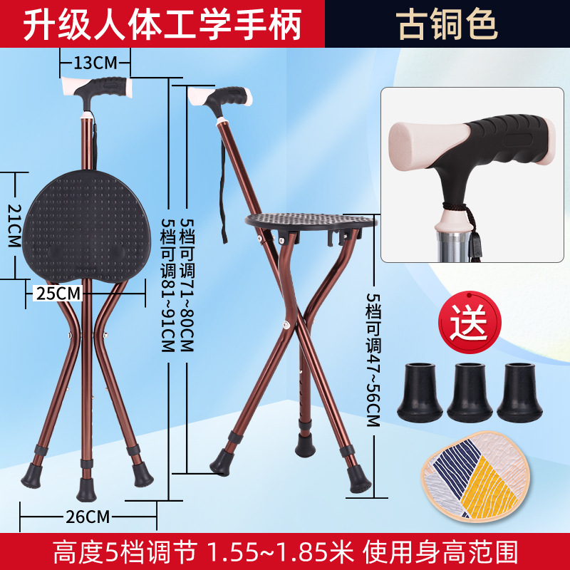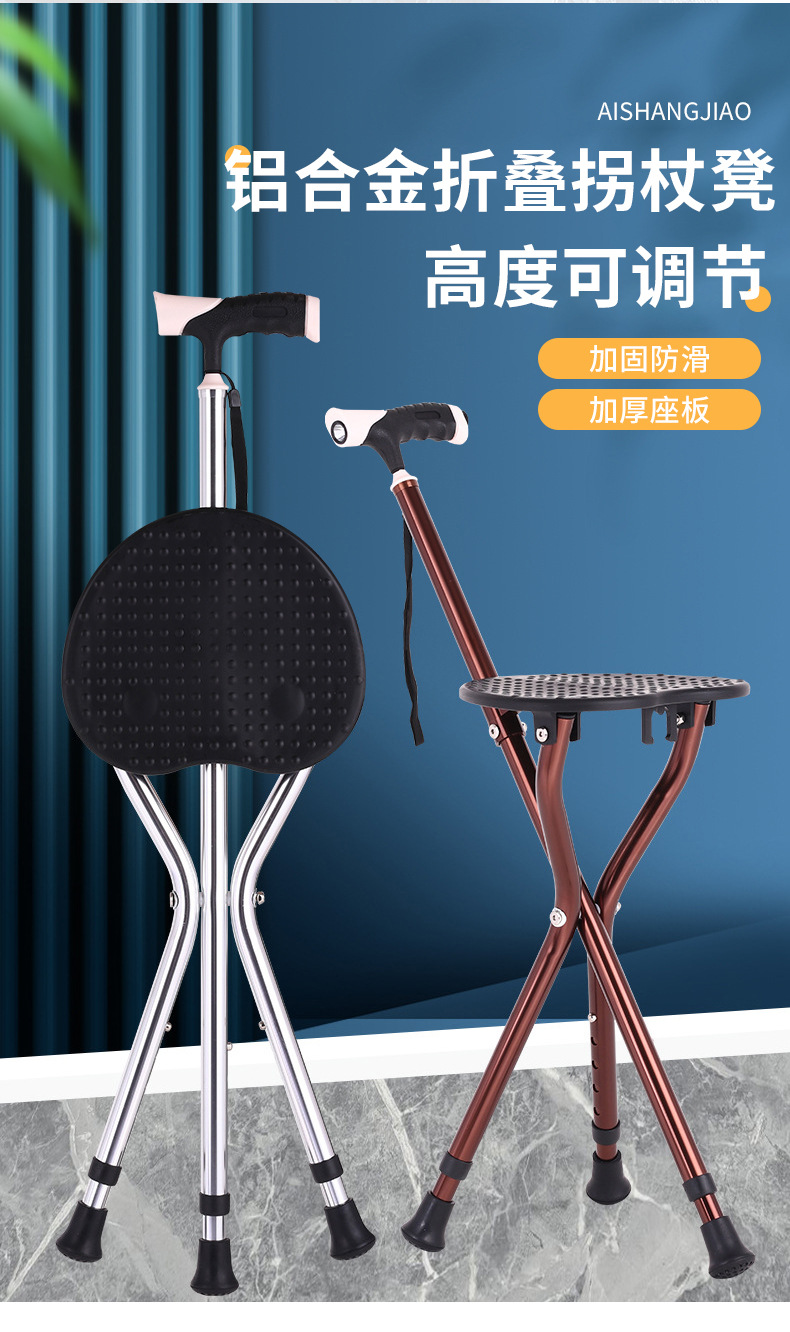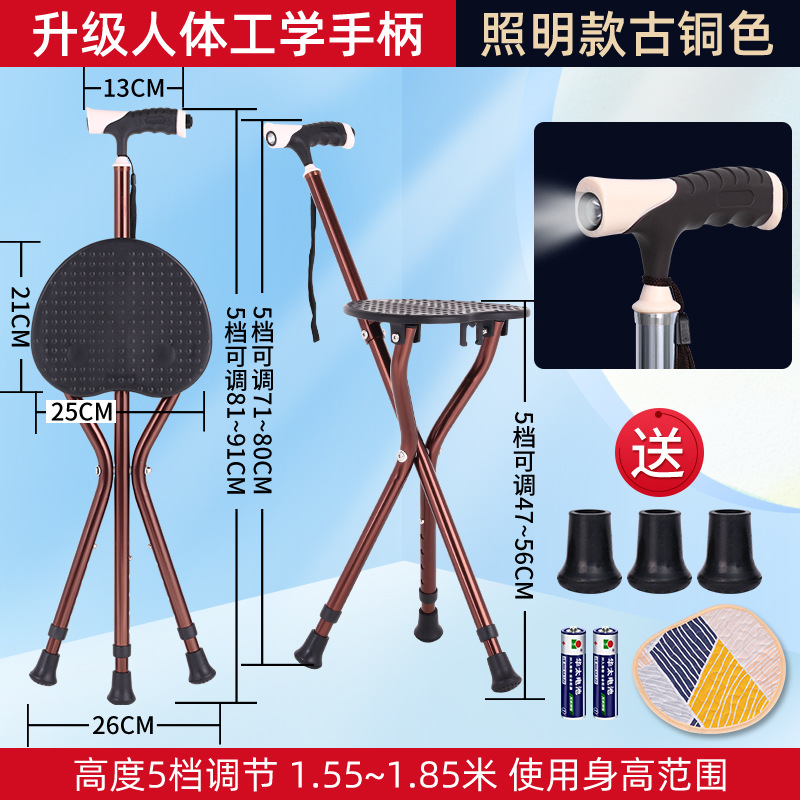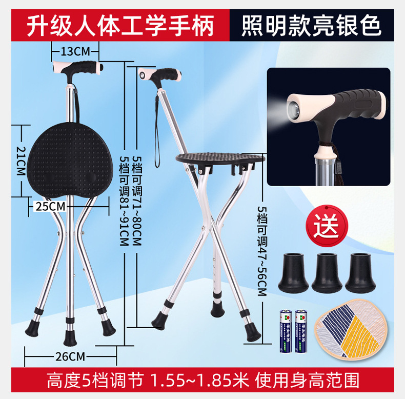 노인용 지팡이 의자, 다기능 조명 접이식 지팡이 의자, 휴대용 보행 보조 지팡이, 미끄럼 방지 지팡이 의자