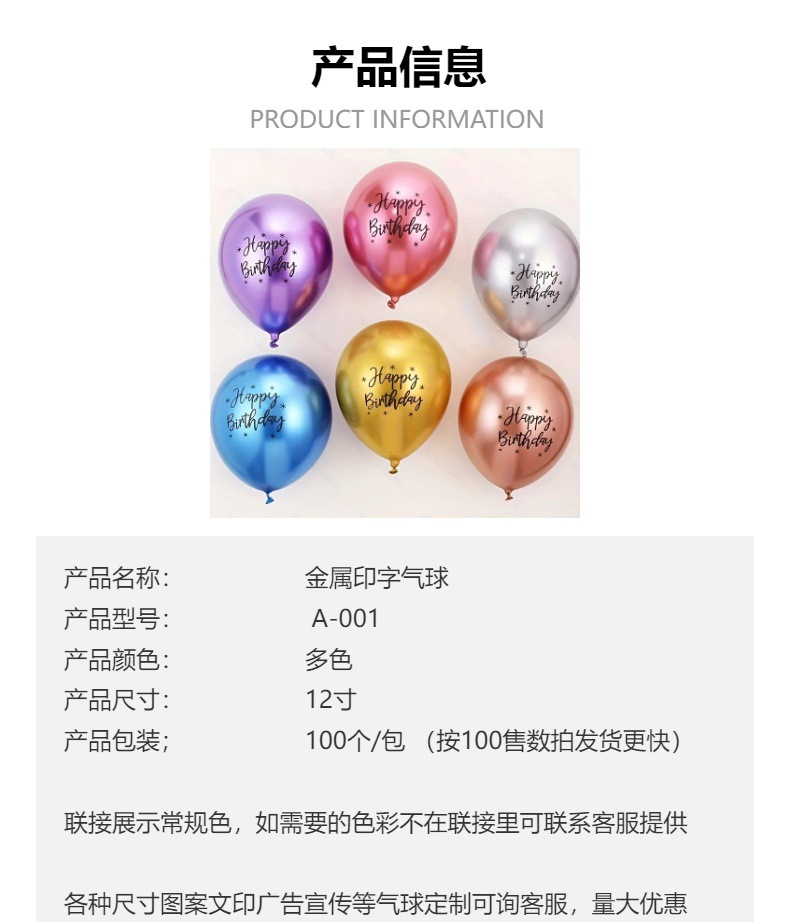크로스보더 12inch 라텍스 풍선 배치 생일 파티 장소 레이아웃 크롬 메탈릭 인쇄 생일 축하합니다스토어 가기
