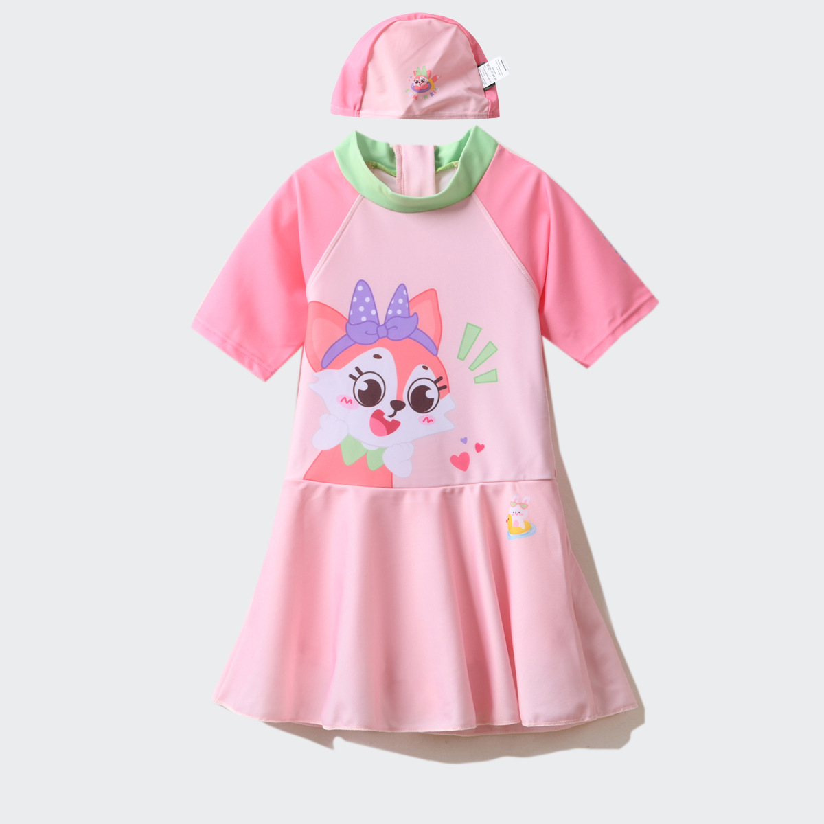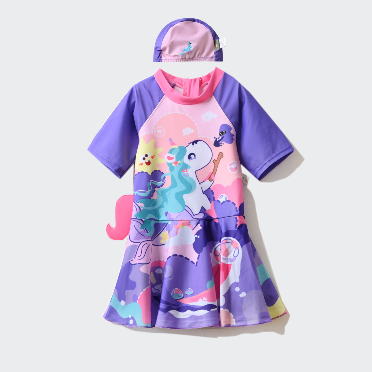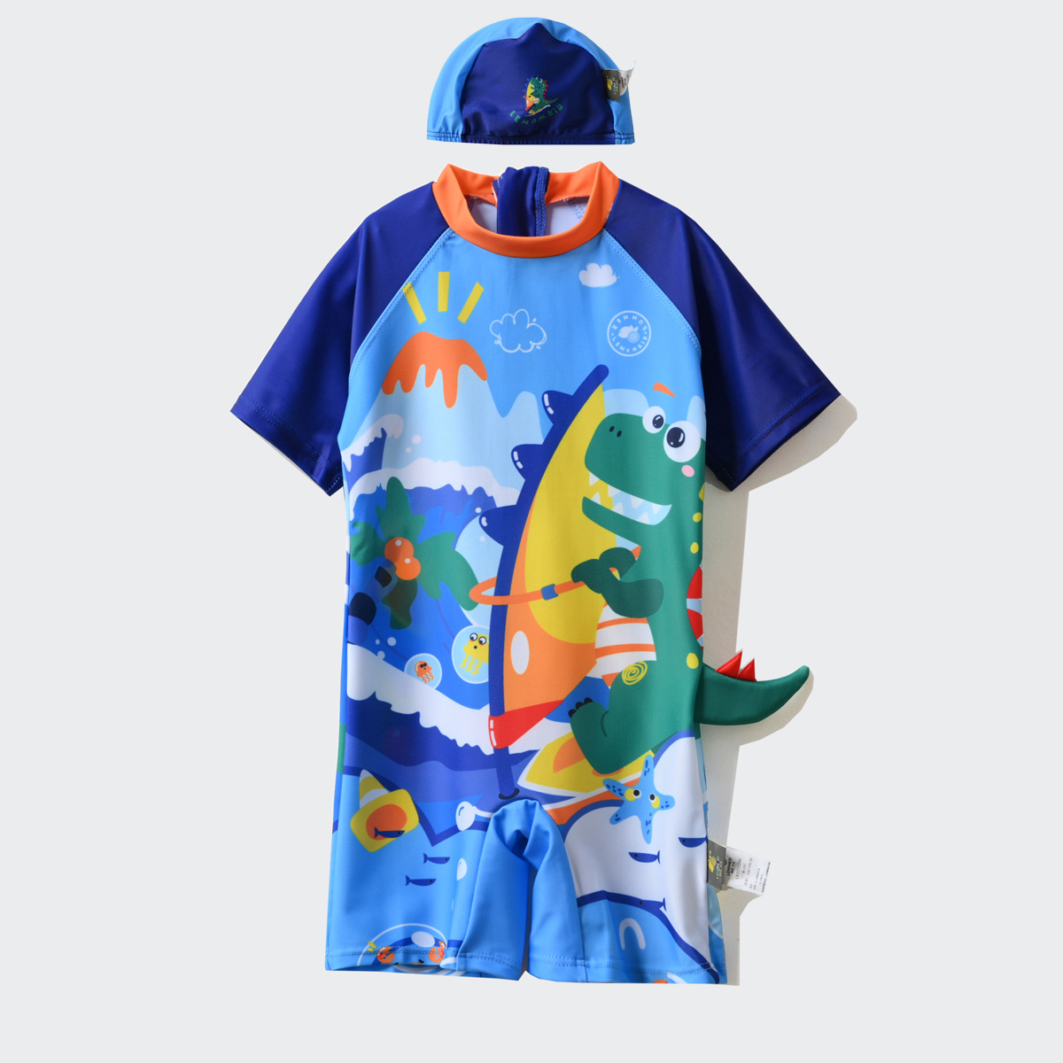 UPF50+ 클래스 A 어린이 만화 원피스 수영복 및 수영 모자 세트 소년 소녀 수영복 대형 어린이 재고 있음