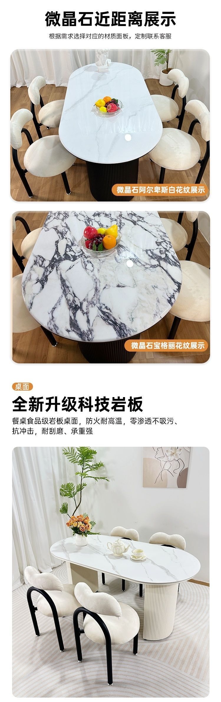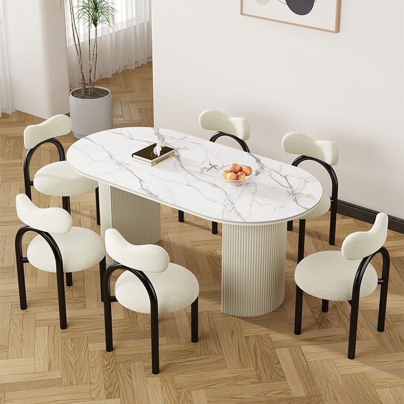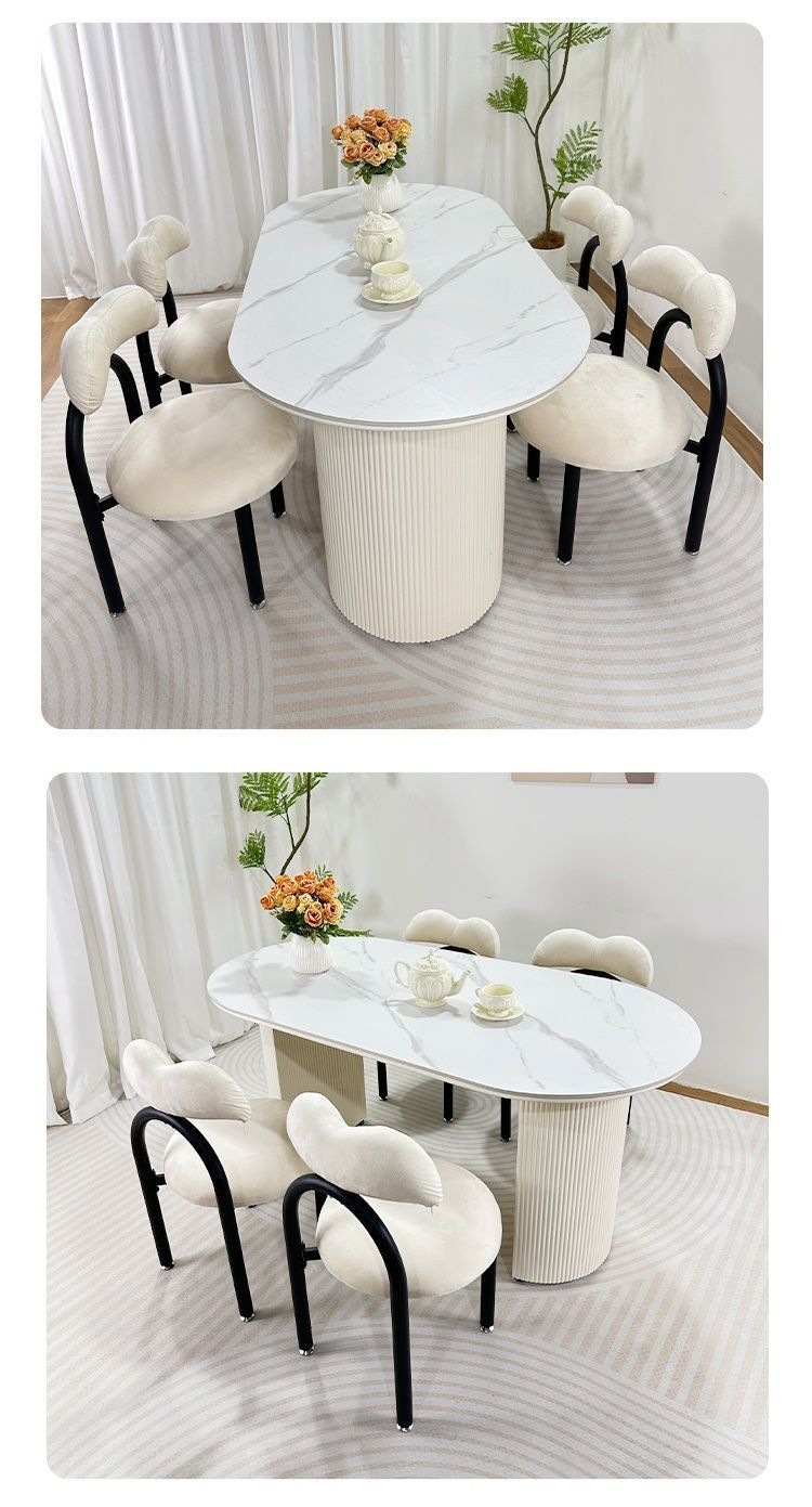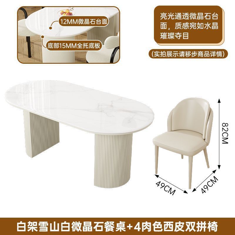 북유럽 크림 스타일 식탁 슬레이트 현대 작은 아파트 타원형 간단한 가정용 조명 럭셔리 식탁과 의자 이탈리아 스타일 조합스토어 가기