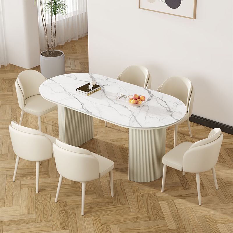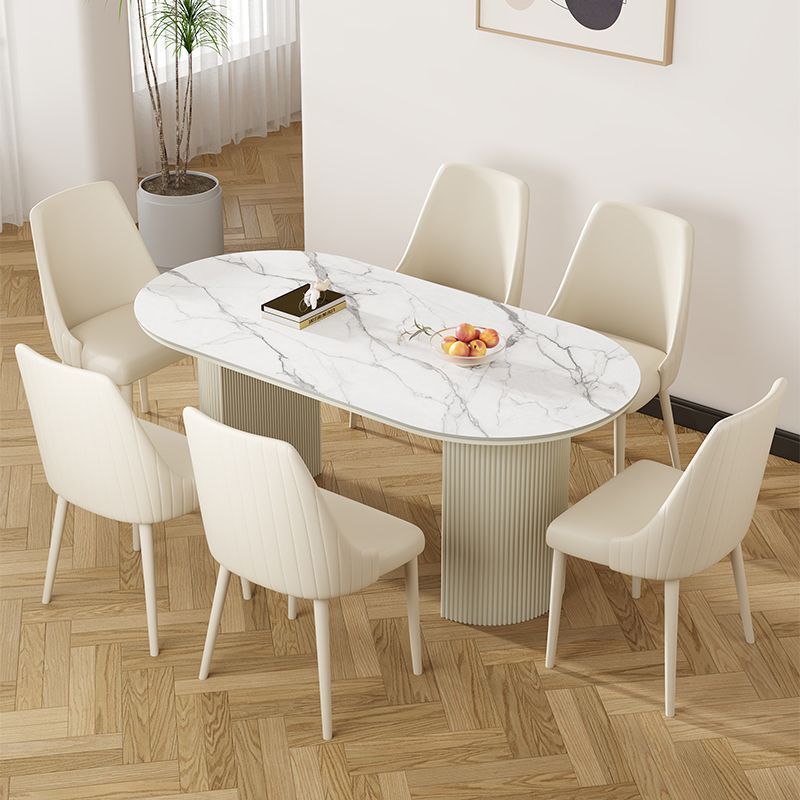 북유럽 크림 스타일 식탁 슬레이트 현대 작은 아파트 타원형 간단한 가정용 조명 럭셔리 식탁과 의자 이탈리아 스타일 조합