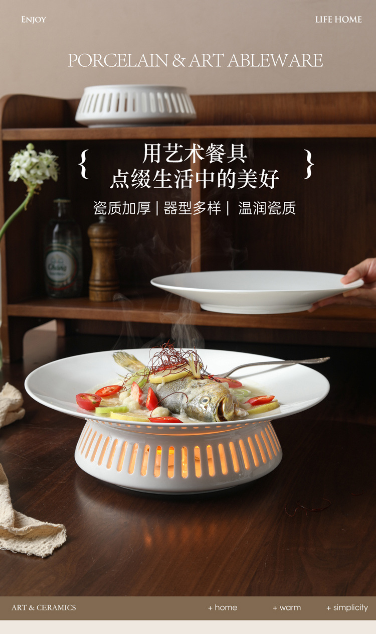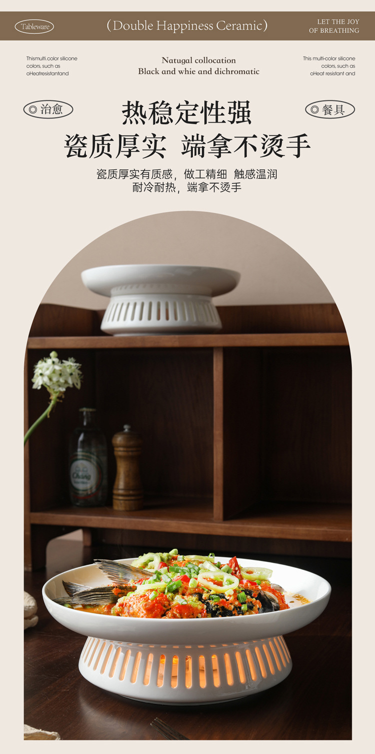 호텔 오픈 스토브 식기 대형 접시 접시 가정용 크리 에이 티브 세라믹 단열 가열 건조 냄비 특수 접시 상업용 원형 접시스토어 가기