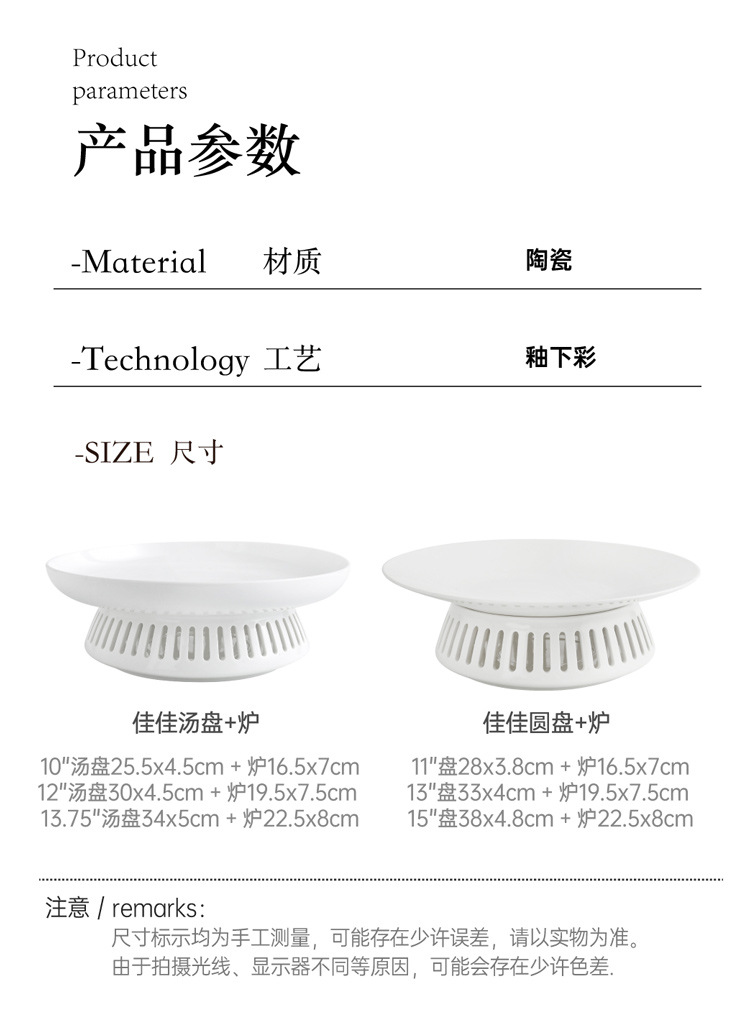 • 13.75인치 Jiajia 수프 접시(15인치 Jiajia 스토브 포함)