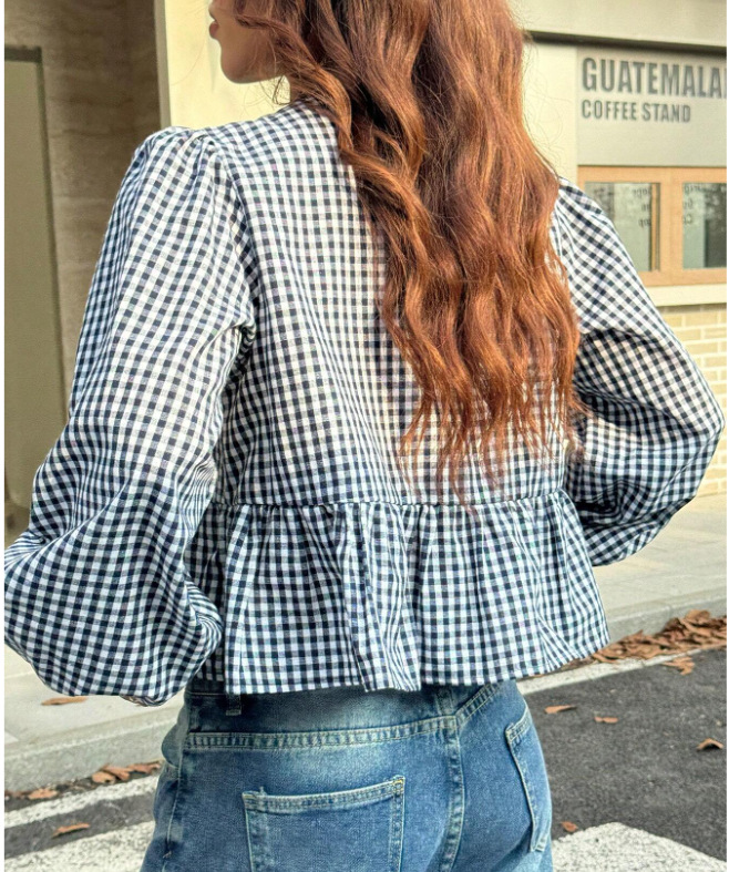 2025 크로스보더 여성용 격자 무늬 느슨한 보우 긴팔 셔츠스토어 가기