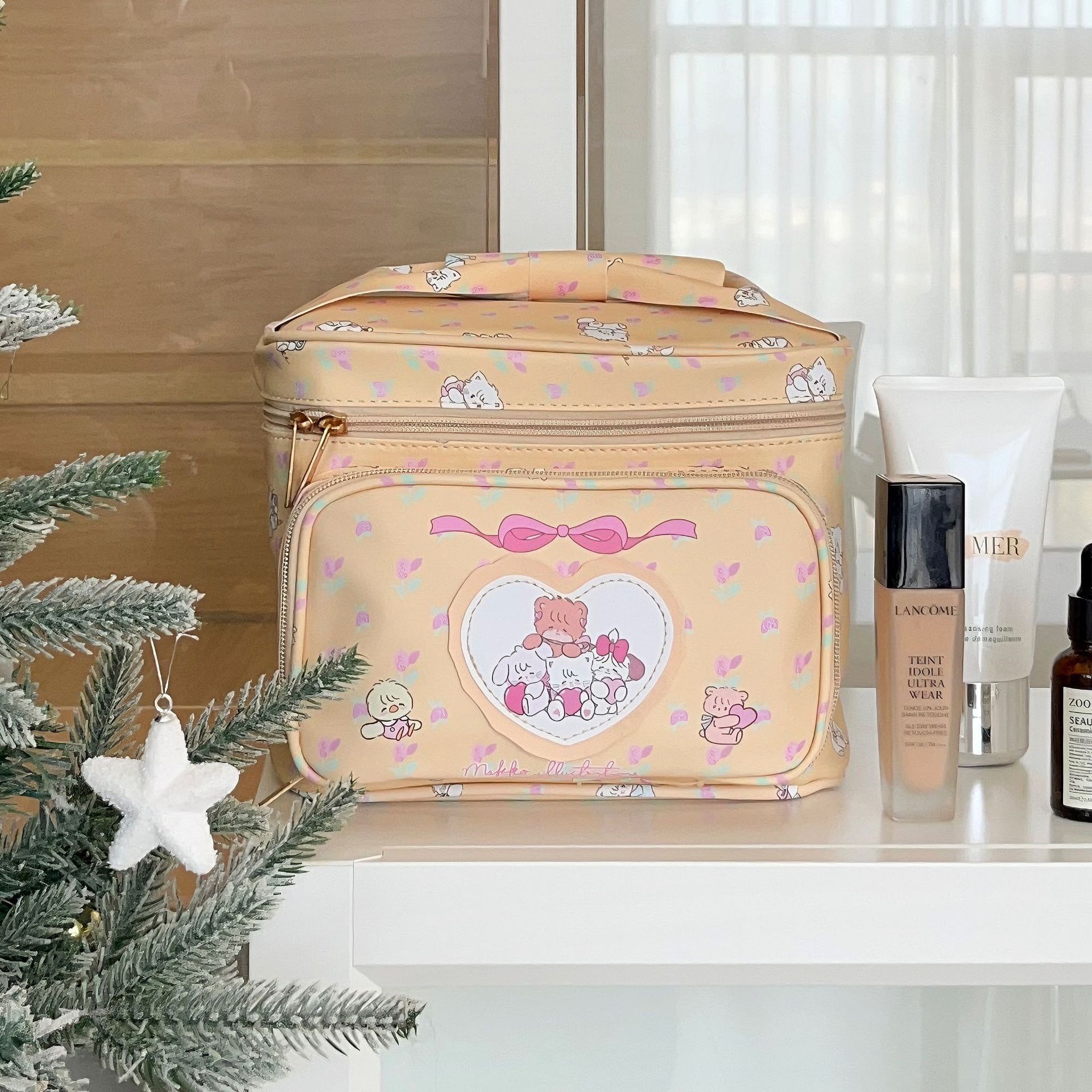 2025 새로운 귀여운 공주 화장품 가방 휴대용 저장 가방 대용량 출장 사각형 핸드백