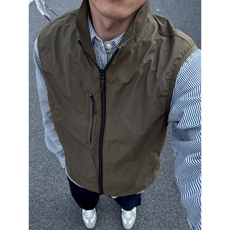 여름 새로운 야외 기능성 방풍 조끼 남자 마운틴 올리브 그린 스탠드 칼라 스포츠 등산 조끼 재킷 조끼스토어 가기