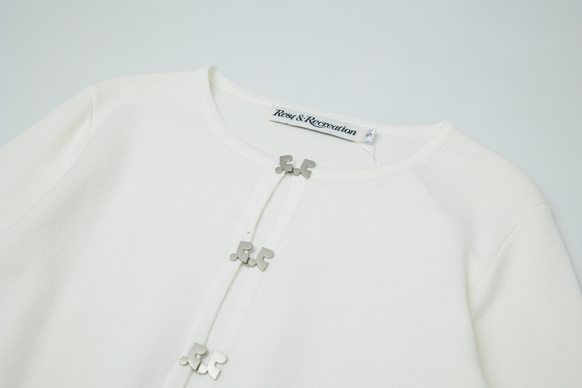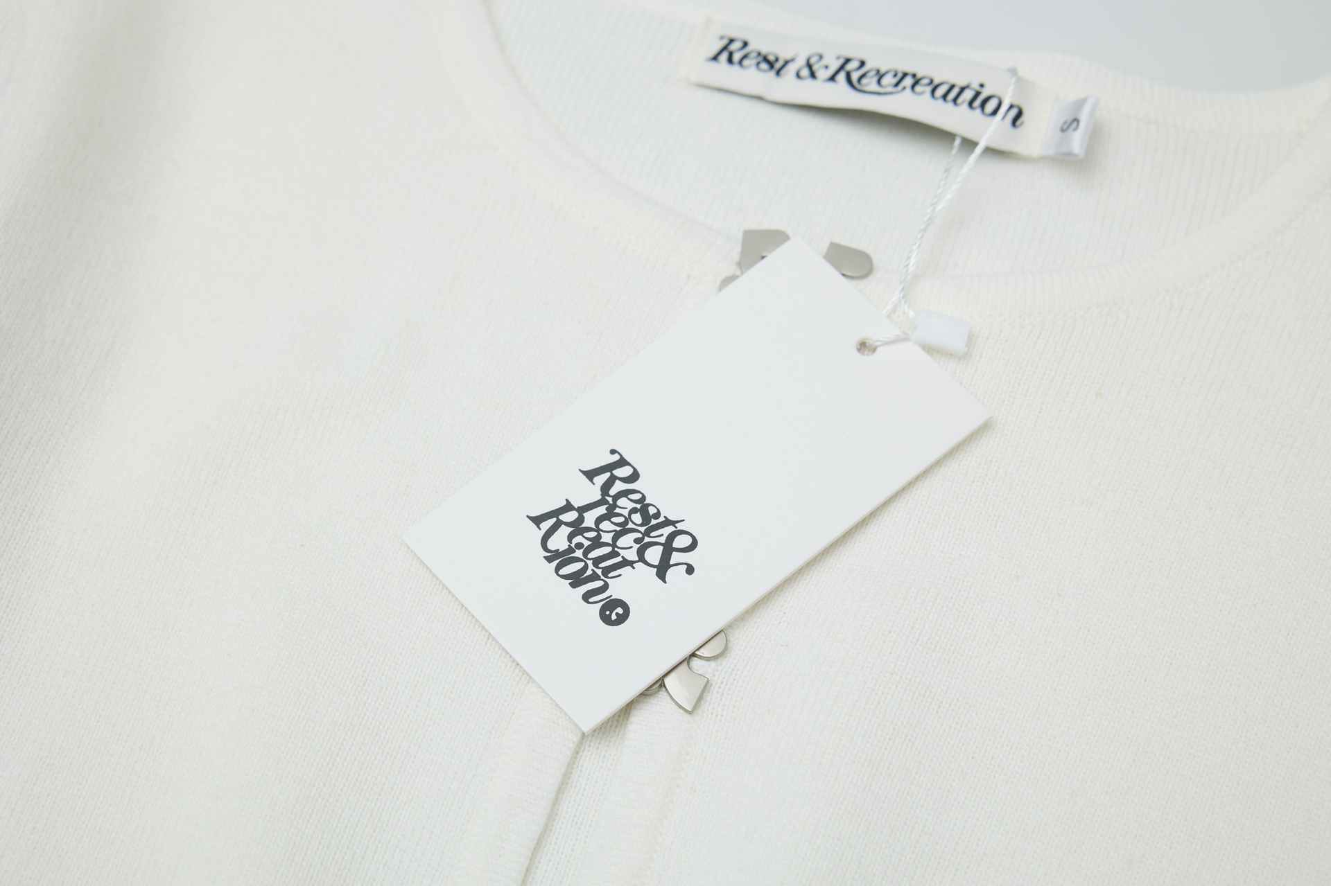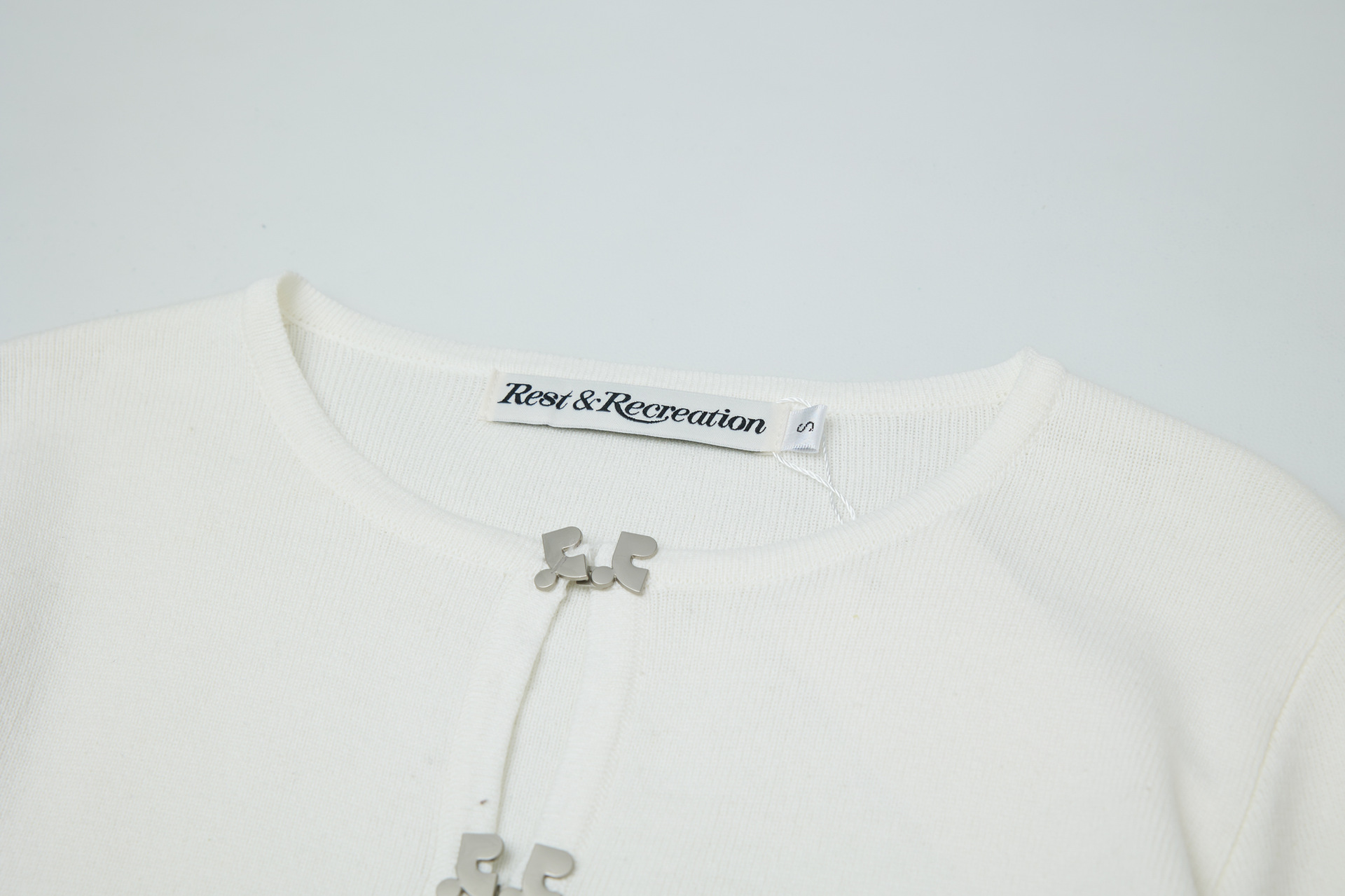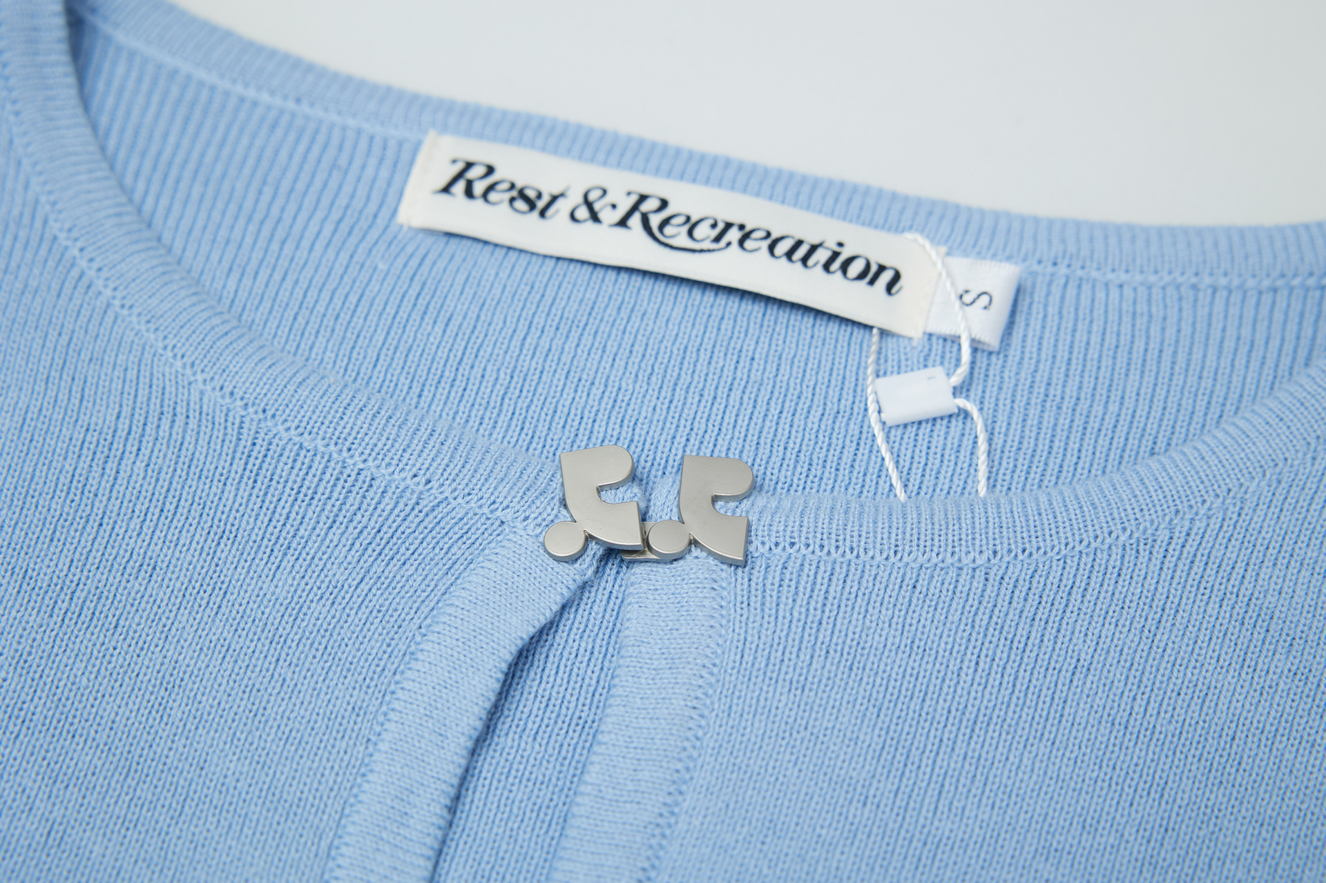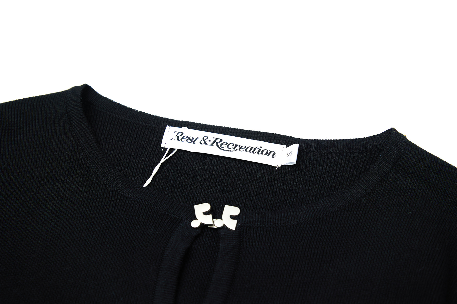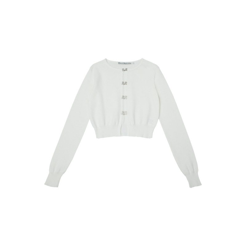한국 restandrecreation 더블 R 버튼 니트 카디건 재킷 여성 RR 슬림핏 크롭 탑
