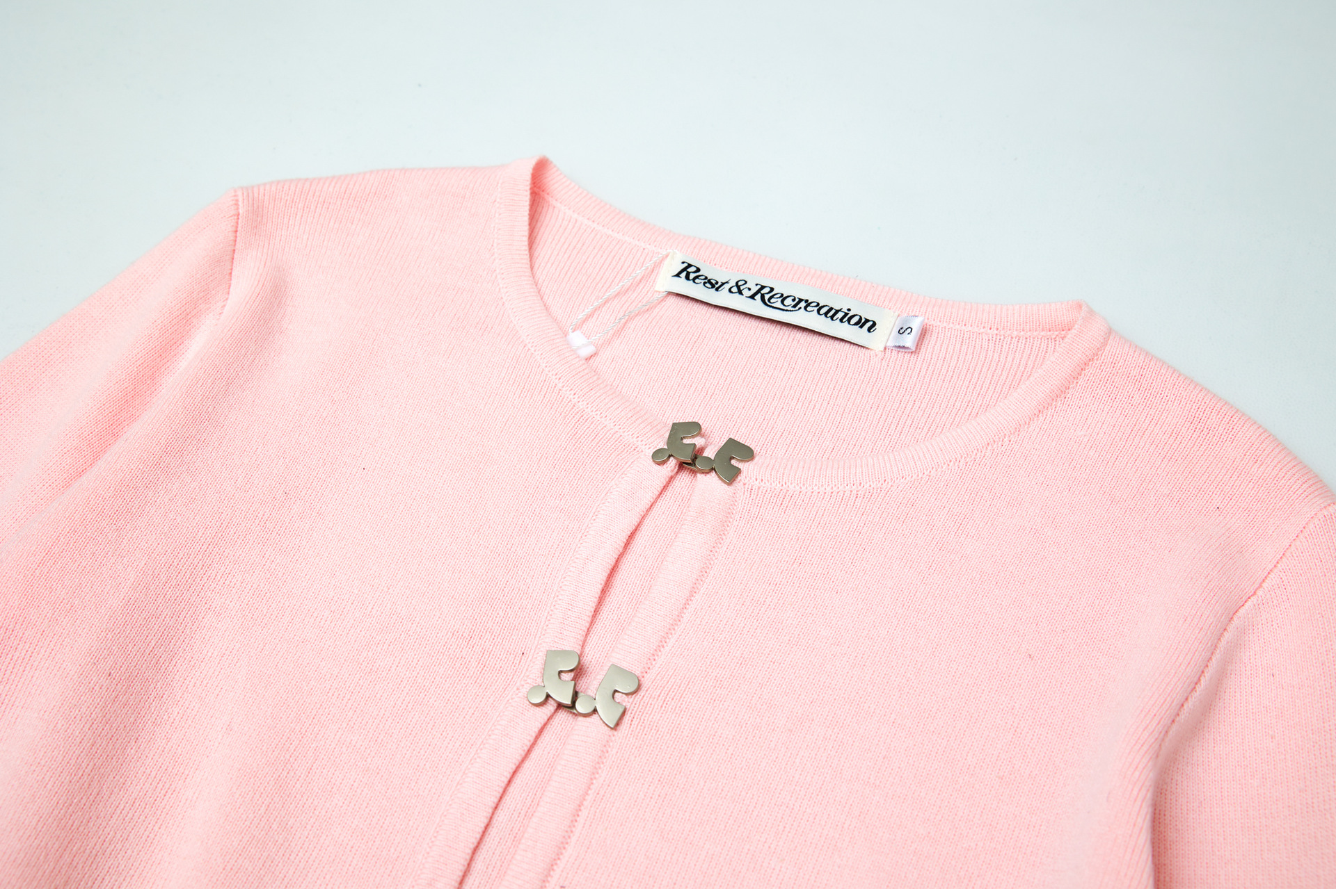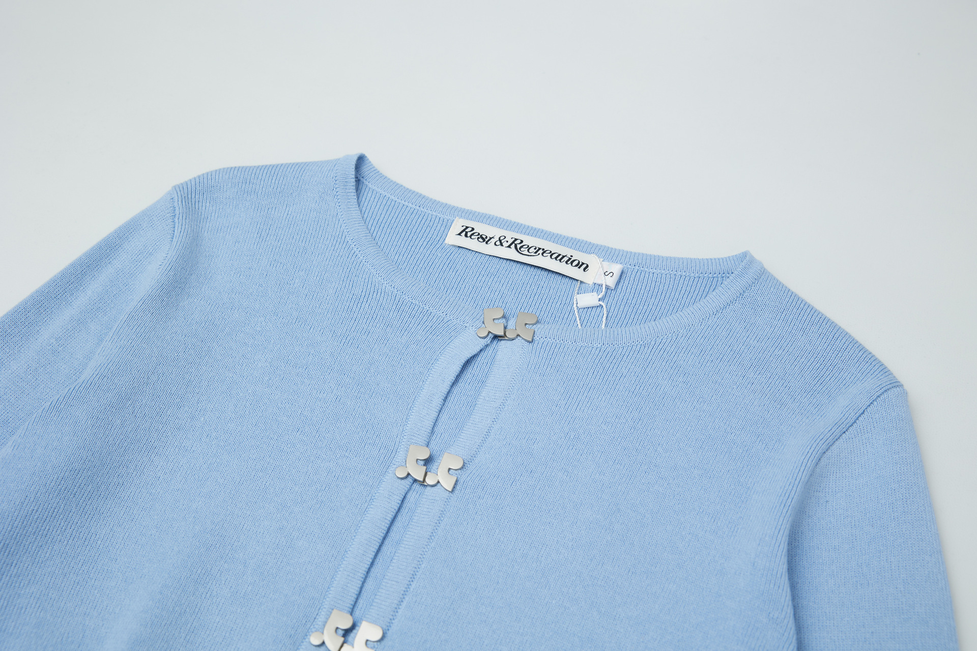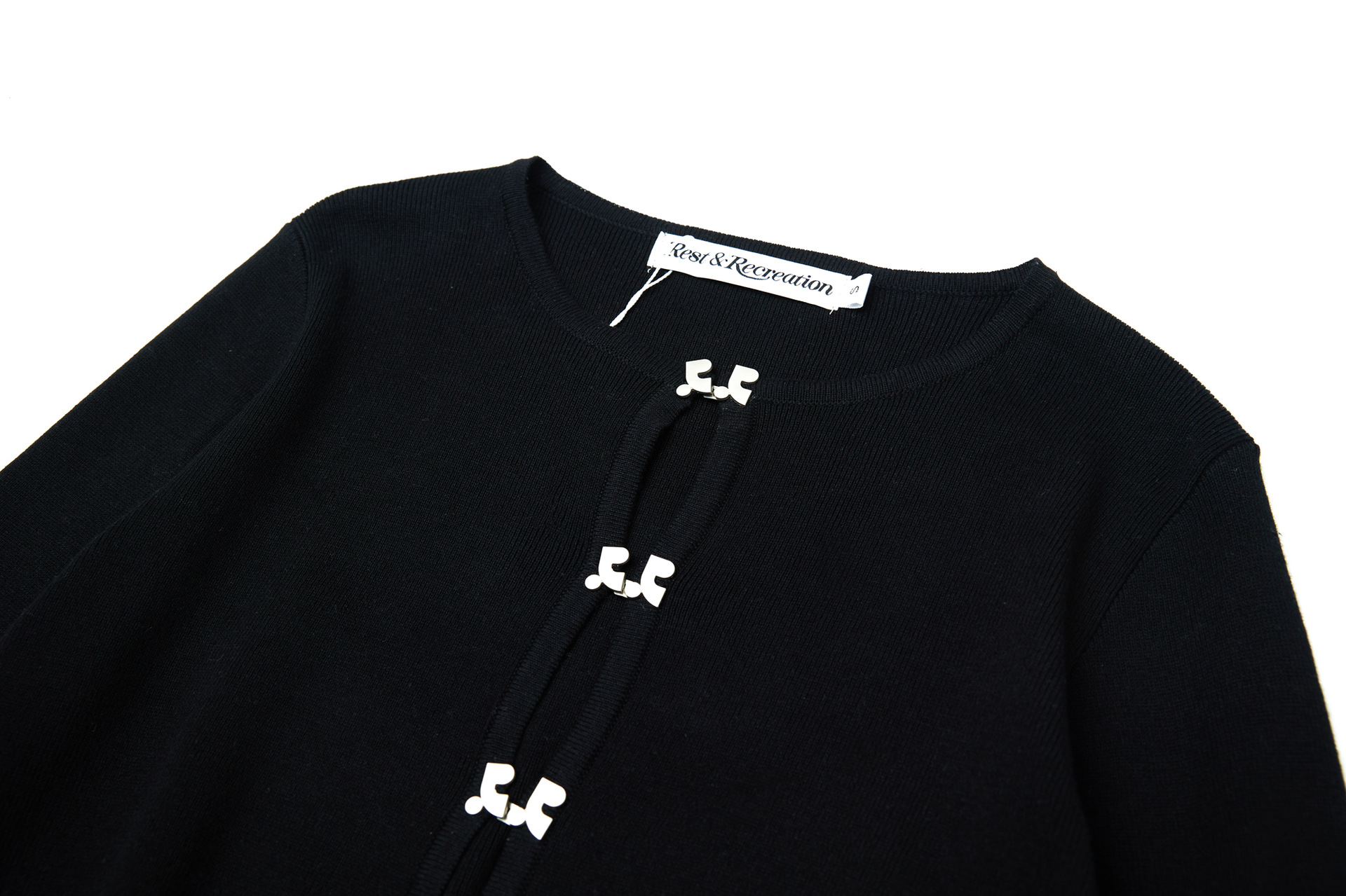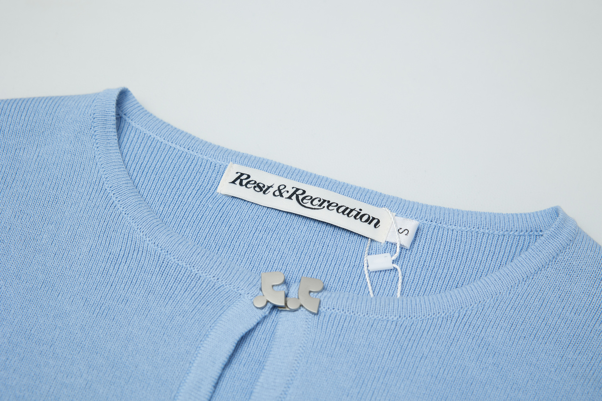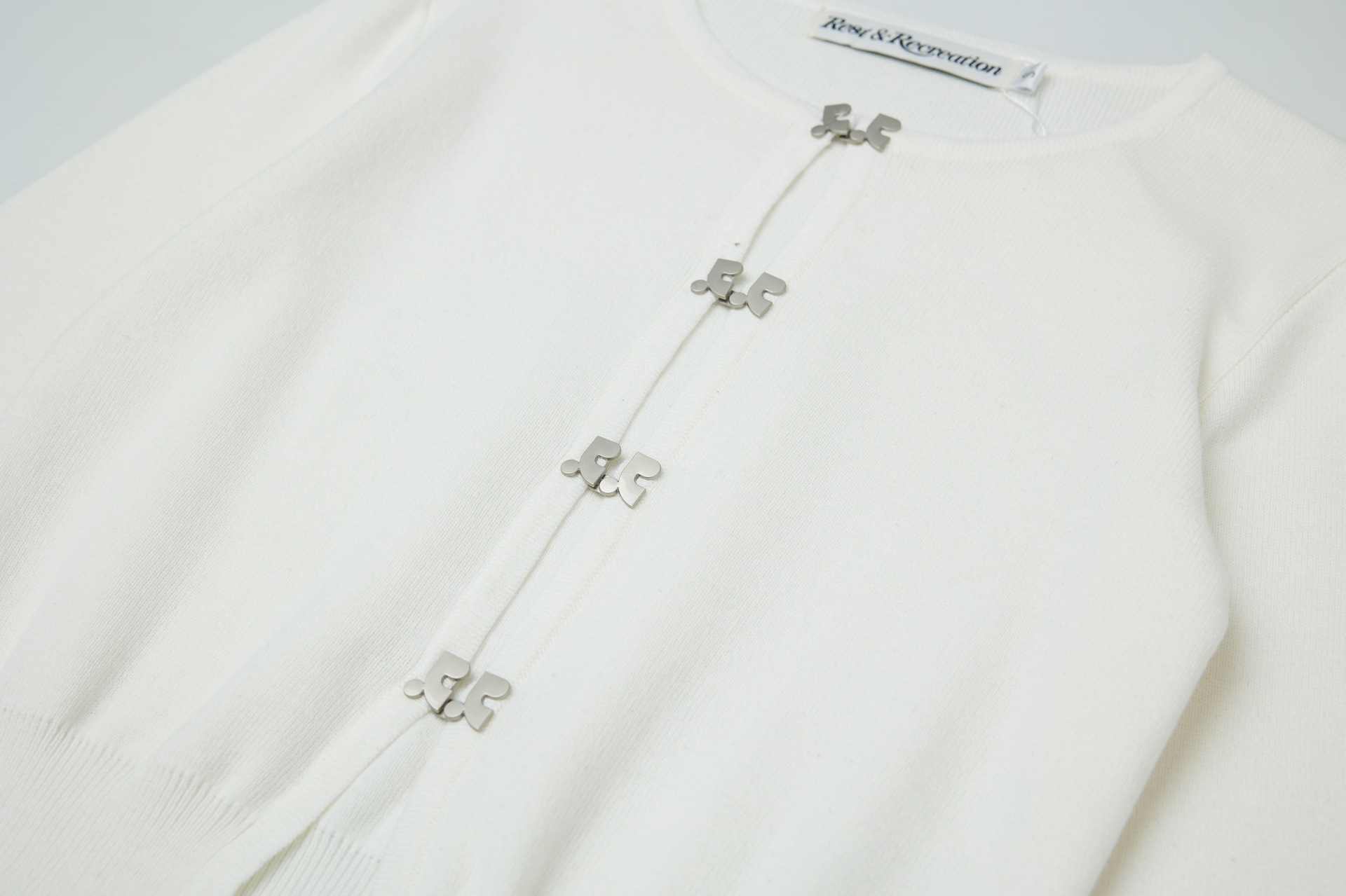 한국 restandrecreation 더블 R 버튼 니트 카디건 재킷 여성 RR 슬림핏 크롭 탑