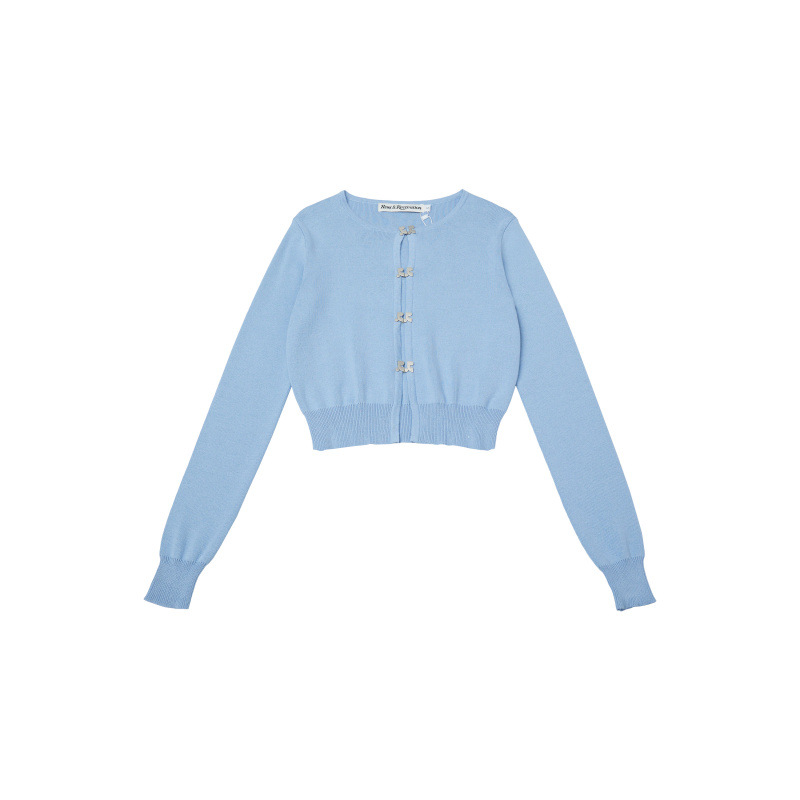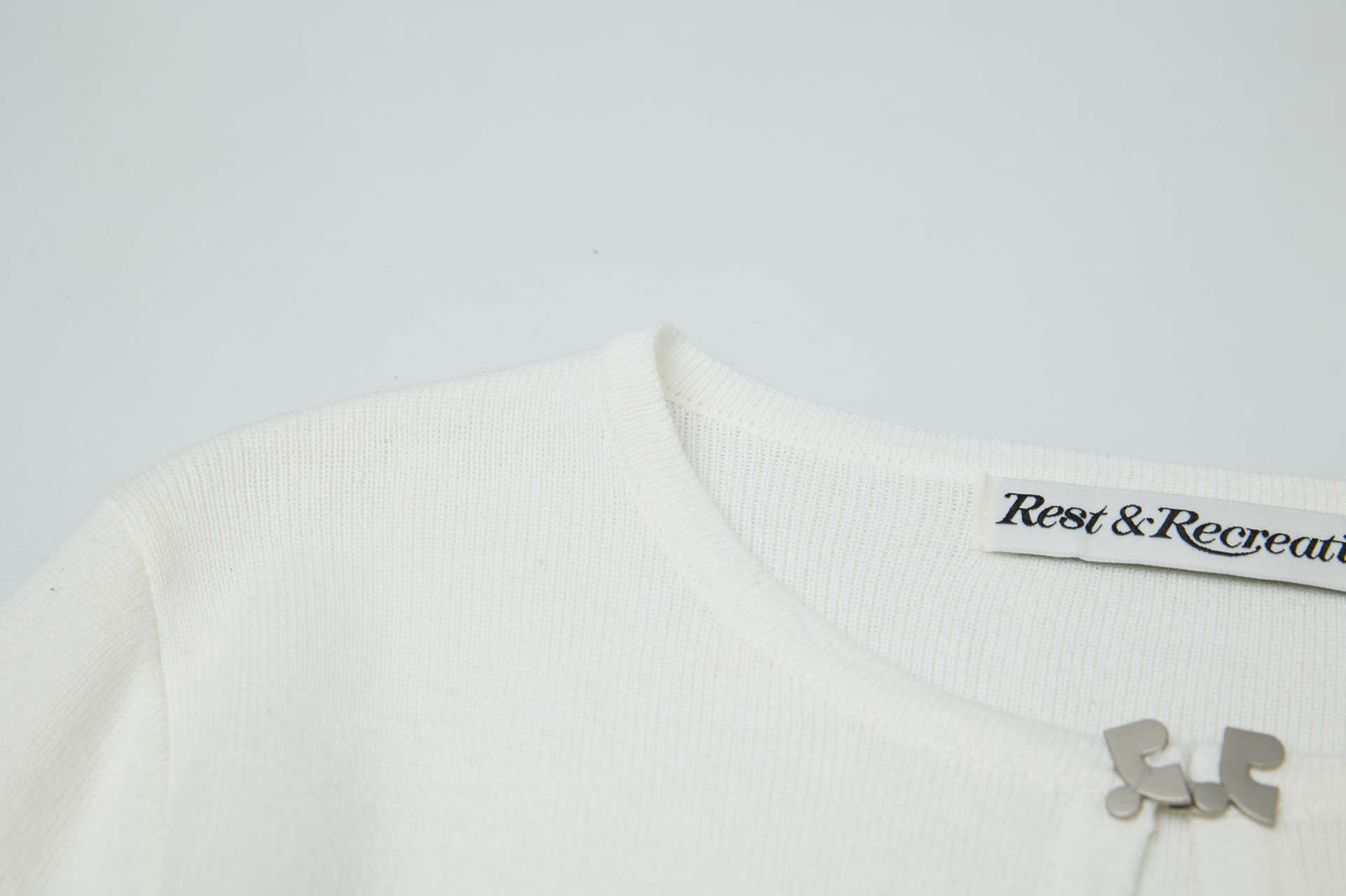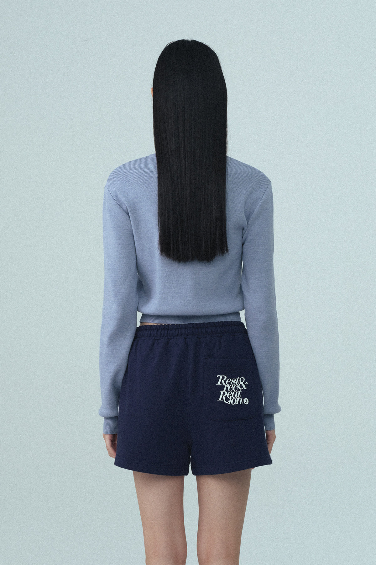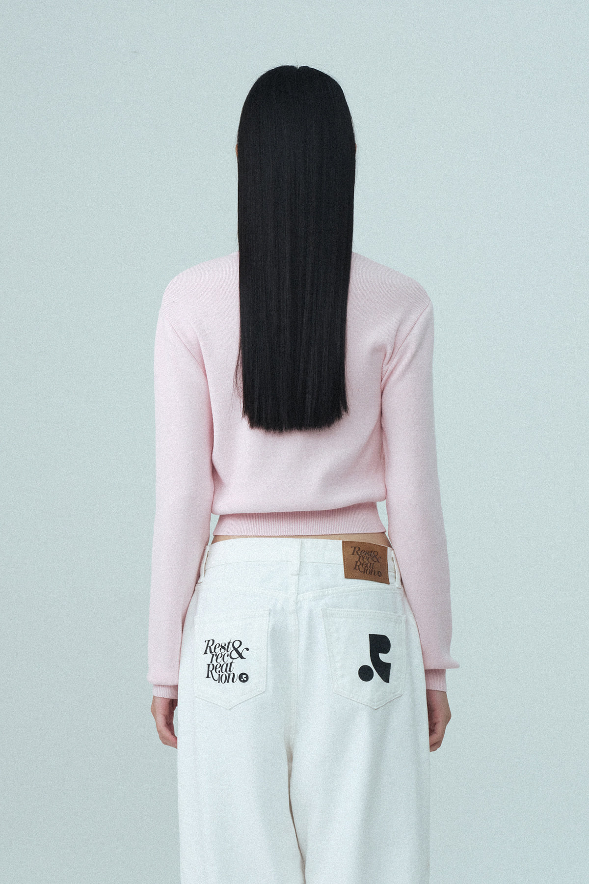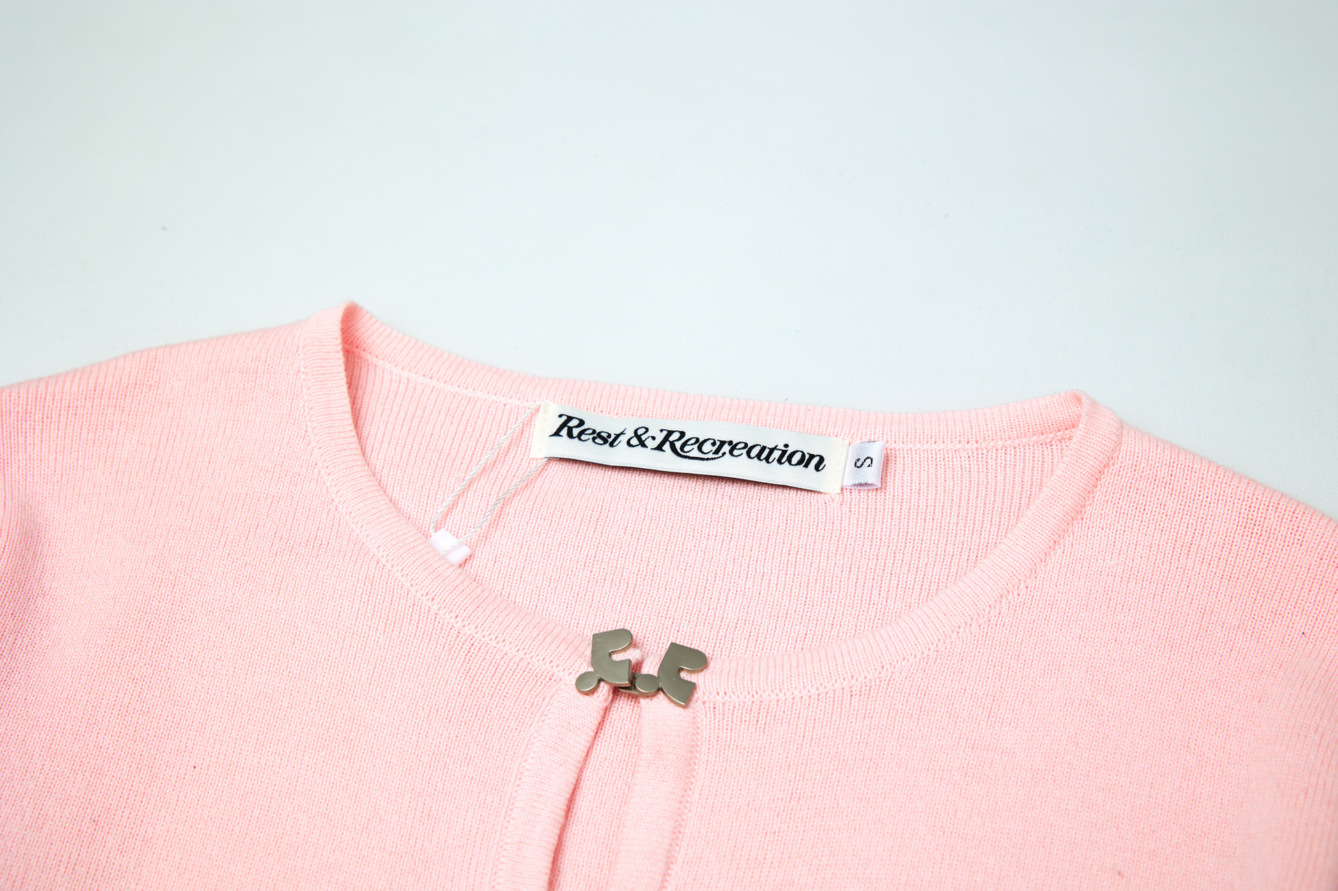한국 restandrecreation 더블 R 버튼 니트 카디건 재킷 여성 RR 슬림핏 크롭 탑